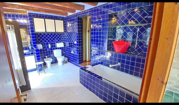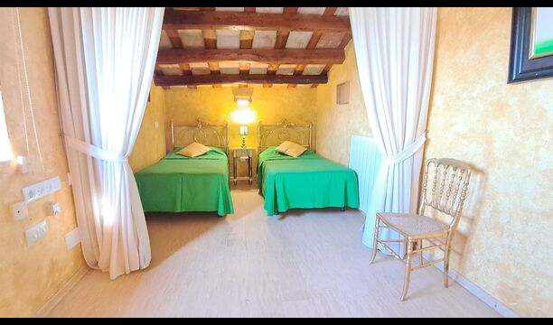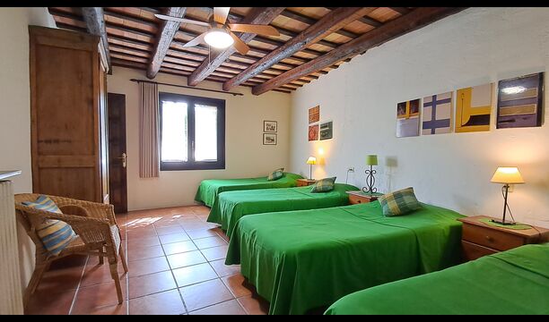 Apartament Cal Secretari: Ideal per a 5 persones. Disposa de 2 dormitoris: Un amb llit de matrimoni i el seu propi baño amb bañera i dutxa. L'altre dormitori amb tres llits individuals i el seu propi baño amb bañera (amb accés exterior o passant per l'habitació principal).