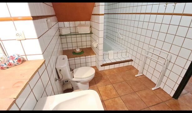A més, hi ha una sala de jocs perquè els nens es diverteixin a – que inclou, entre altres coses, una configuració de futbol de taula. Un altre equipament comunitari és una rentadora i una taula de planxar per a la roba, i hi ha pinces per a la roba i un estenedor. inclòs també. Parlant de teixits, el jardí també té una hamaca per relaxar-se, gaudint del càlid clima d'estiu d'una manera suaument balancejant.