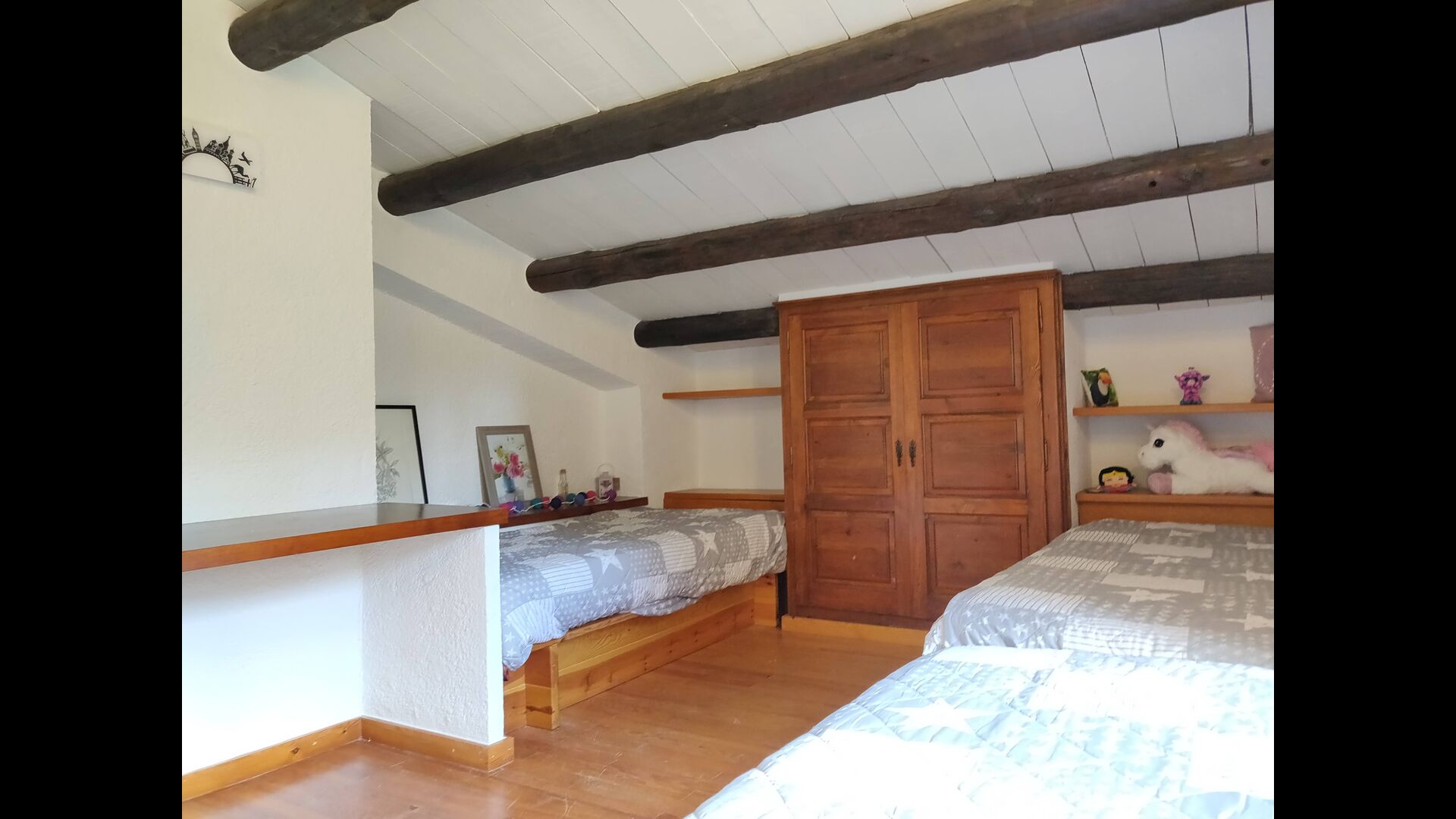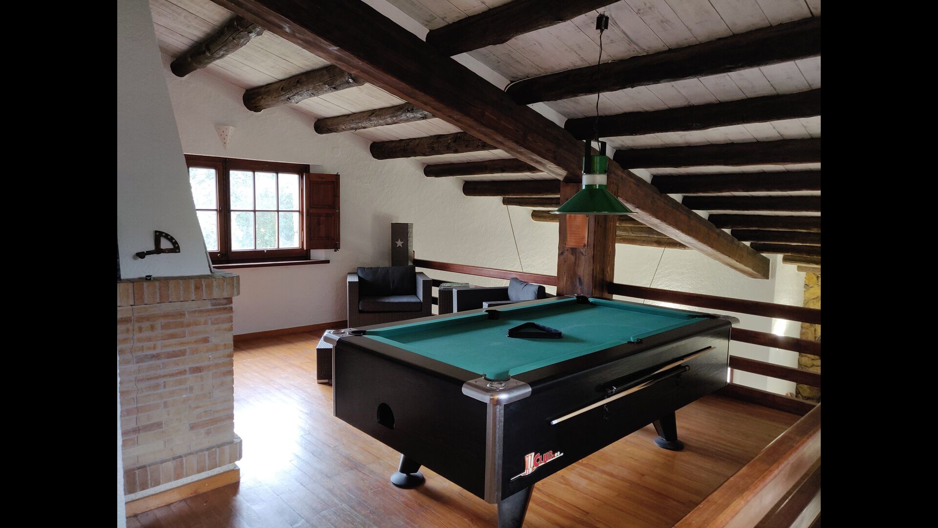 A la planta superior, a la primera planta, hi ha 4 habitacions, un bany, un bany amb dutxa i una sala de lectura amb taula de billar. Finalment, una petita escala de fusta us conduirà a l’altell amb l’últim dormitori i el bany privat amb dutxa.