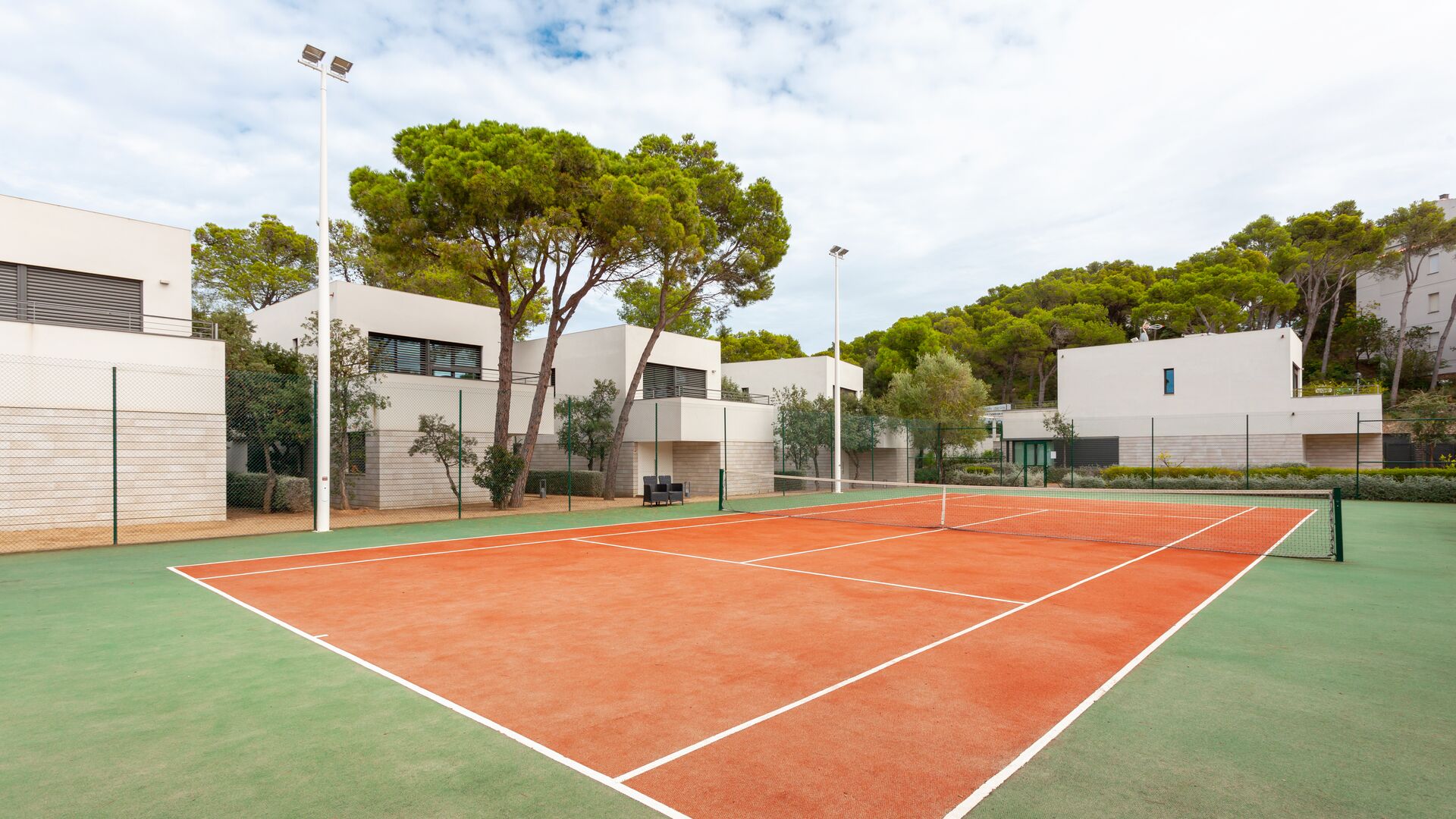 The house is in a contemporary style and is located within a wonderful community of houses that share a tennis court, swimming pool and gardens.