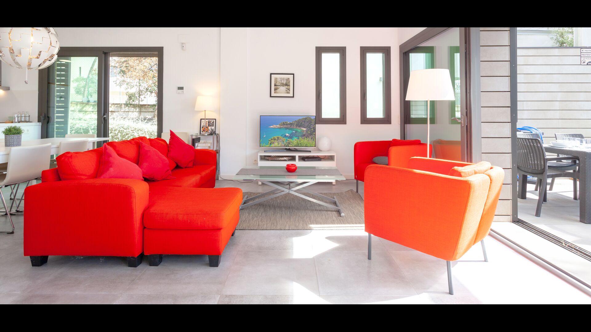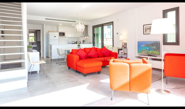 The house is distributed on three levels. We enter through the main hall from where there is a direct access to a bright american style fully equipped kitchen, beautiful dining room and large living room with a nice and sunny terrace where you can enjoy the sun and the tranquility of the Costa Brava. On this same floor we also have a bathroom and laundry area.