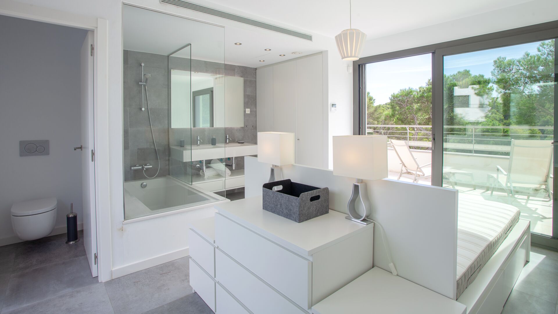 The upper floor is occupied by a fabulous double bedroom en suite (with its own bathroom) and access to two terraces.