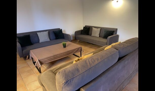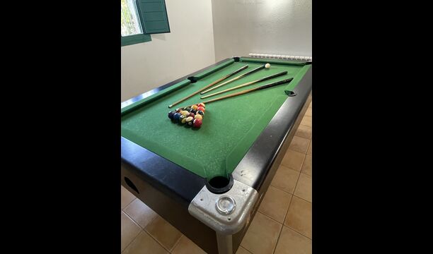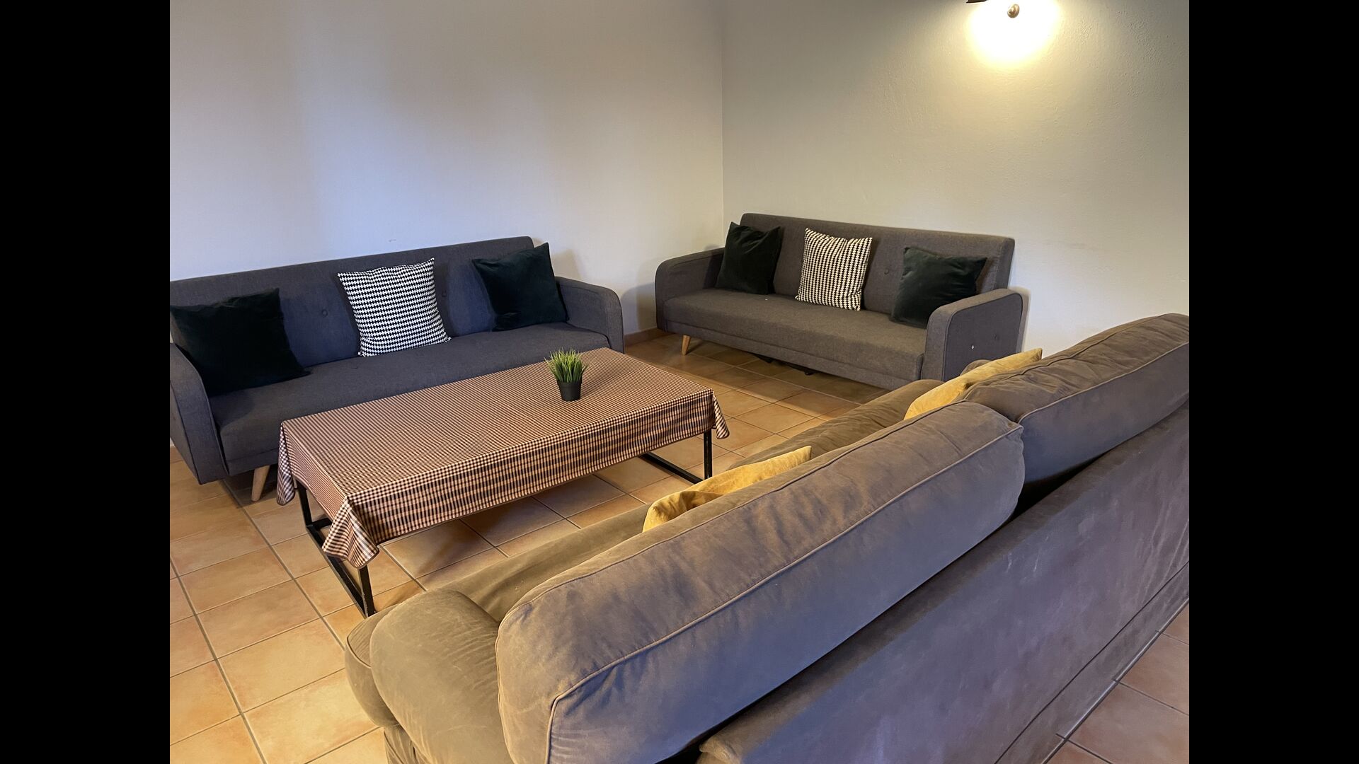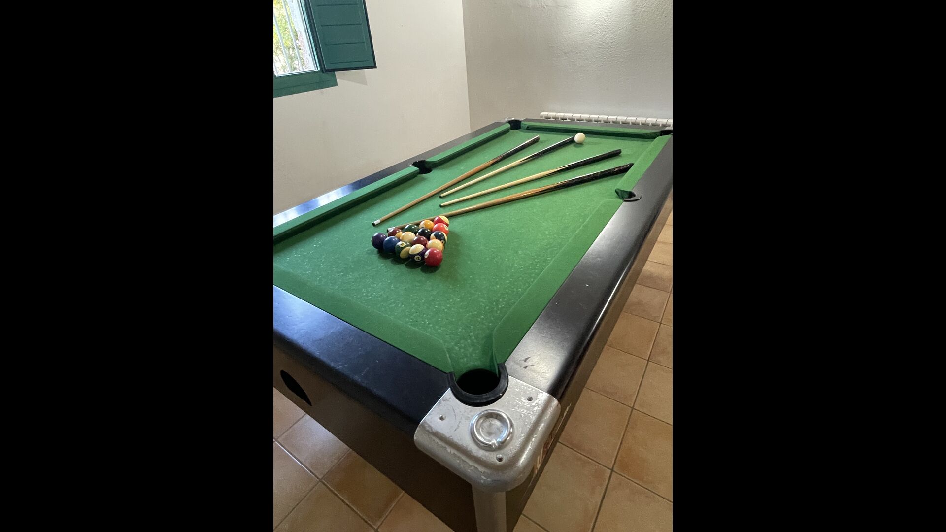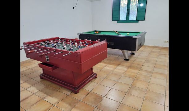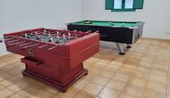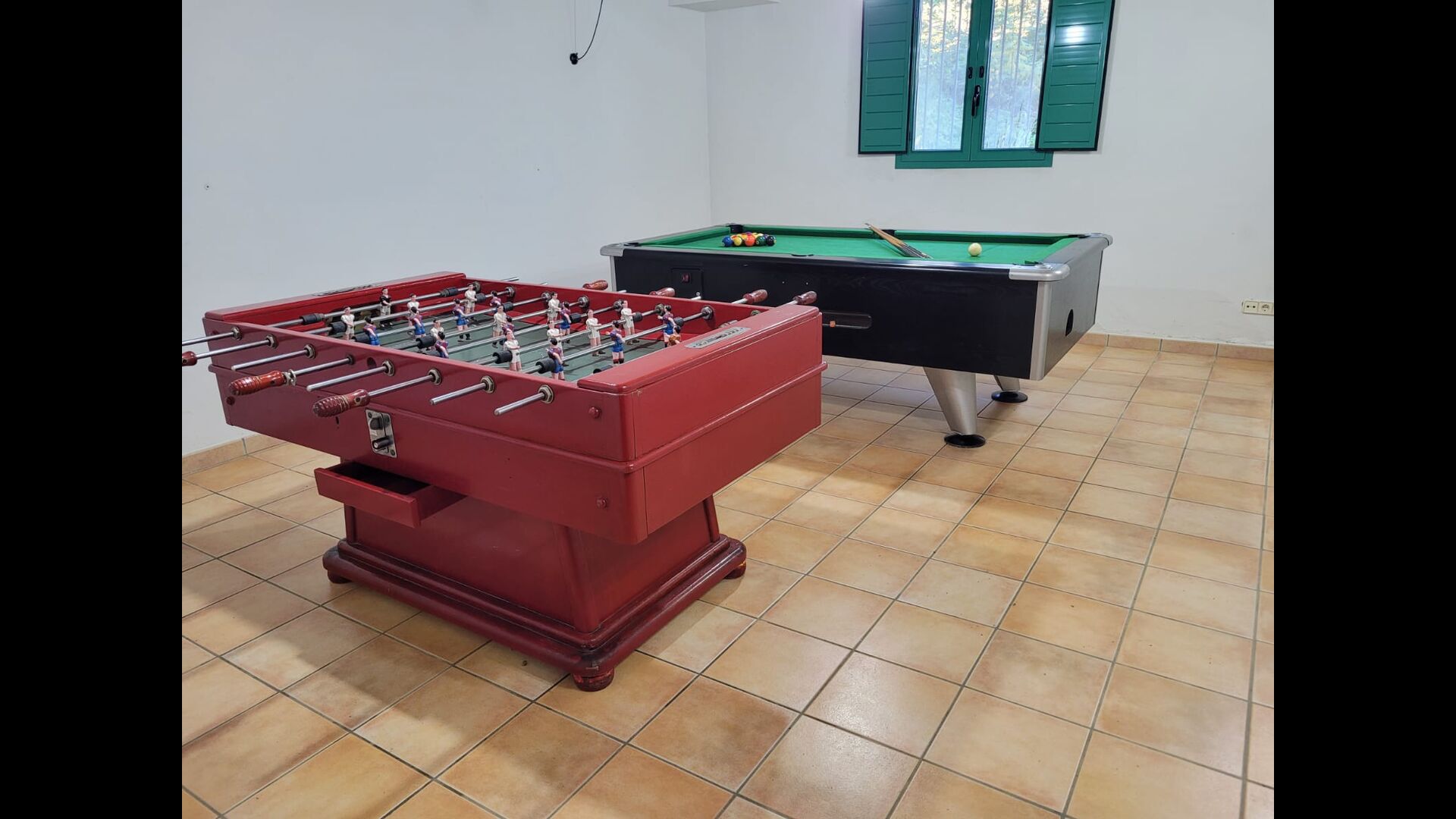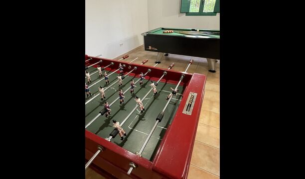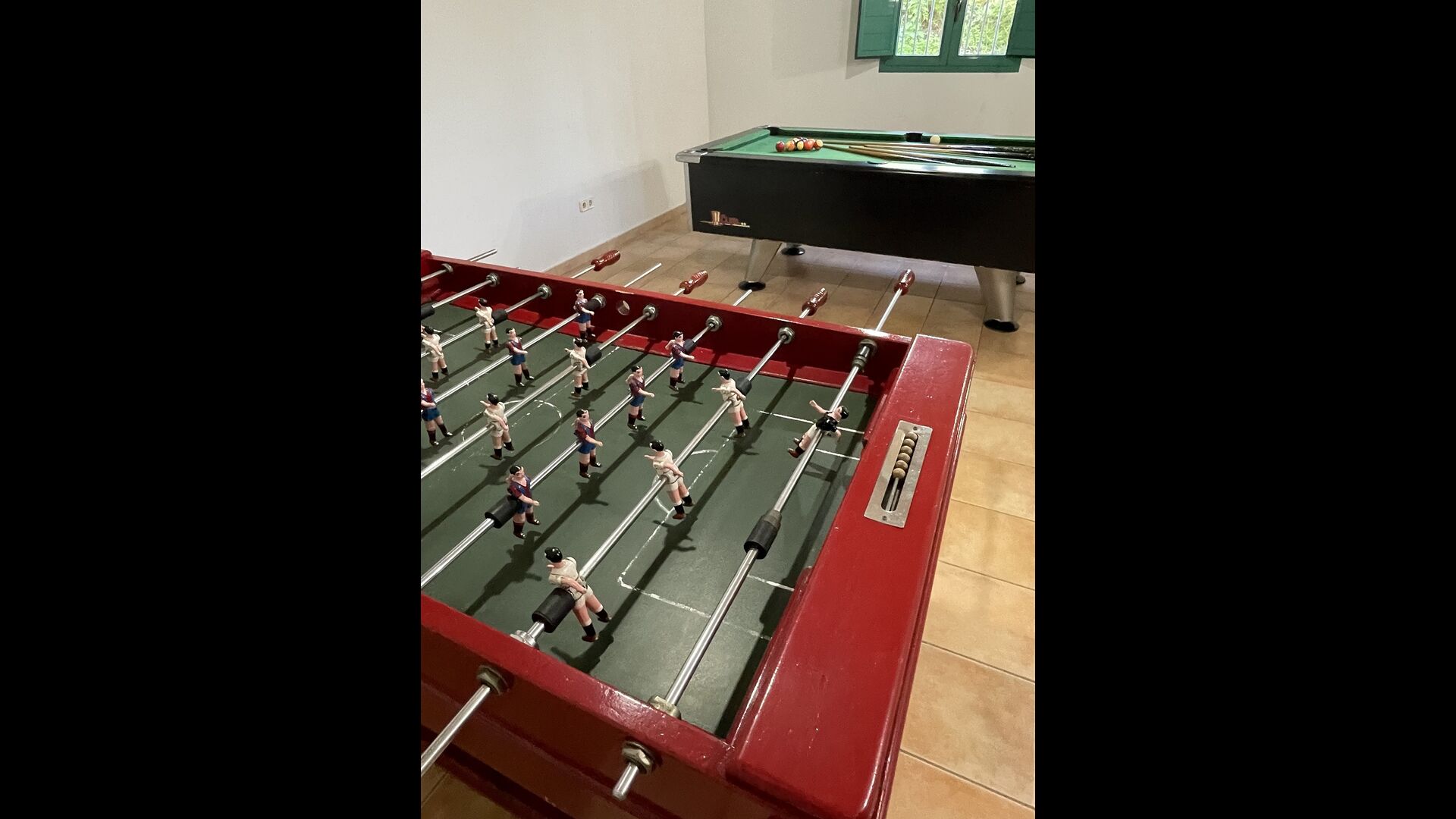 La sala d'estar gran inclou una taula de menjador i 3 sofàs. També hi ha un televisor. També hi ha la sala de jocs, on hi ha futbol de taula, dards de llançament i billar, i al jardí també hi trobareu un muntatge de tennis taula. Un munt de coses per mantenir els nens – i adults - entretinguts! També al primer pis hi trobareu 2 dormitoris - tots dos són dormitoris dobles