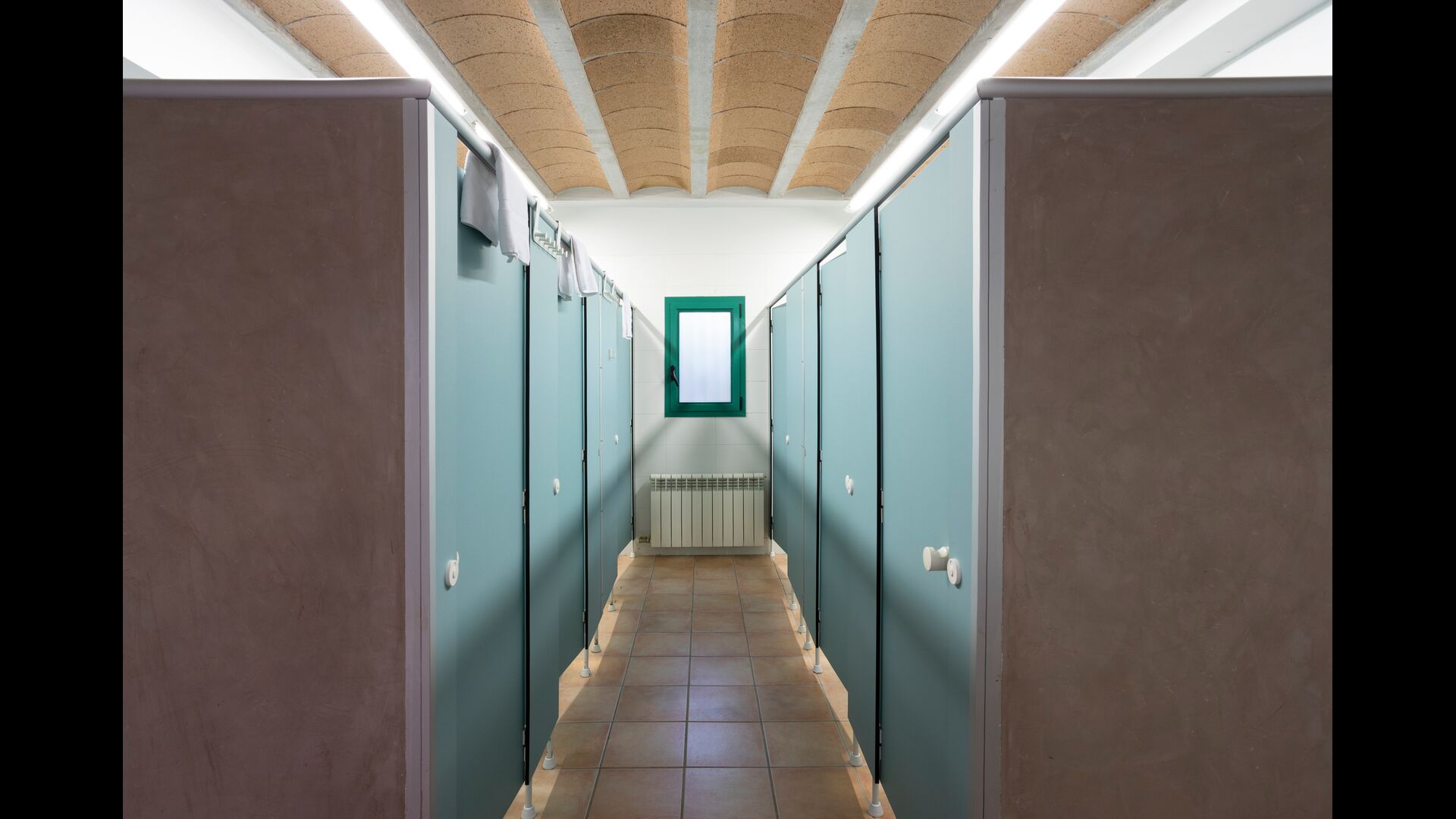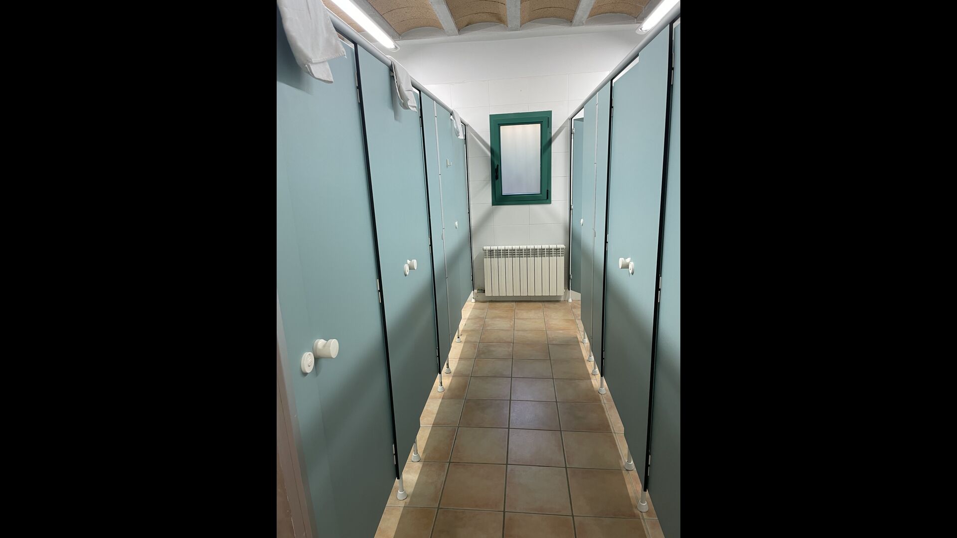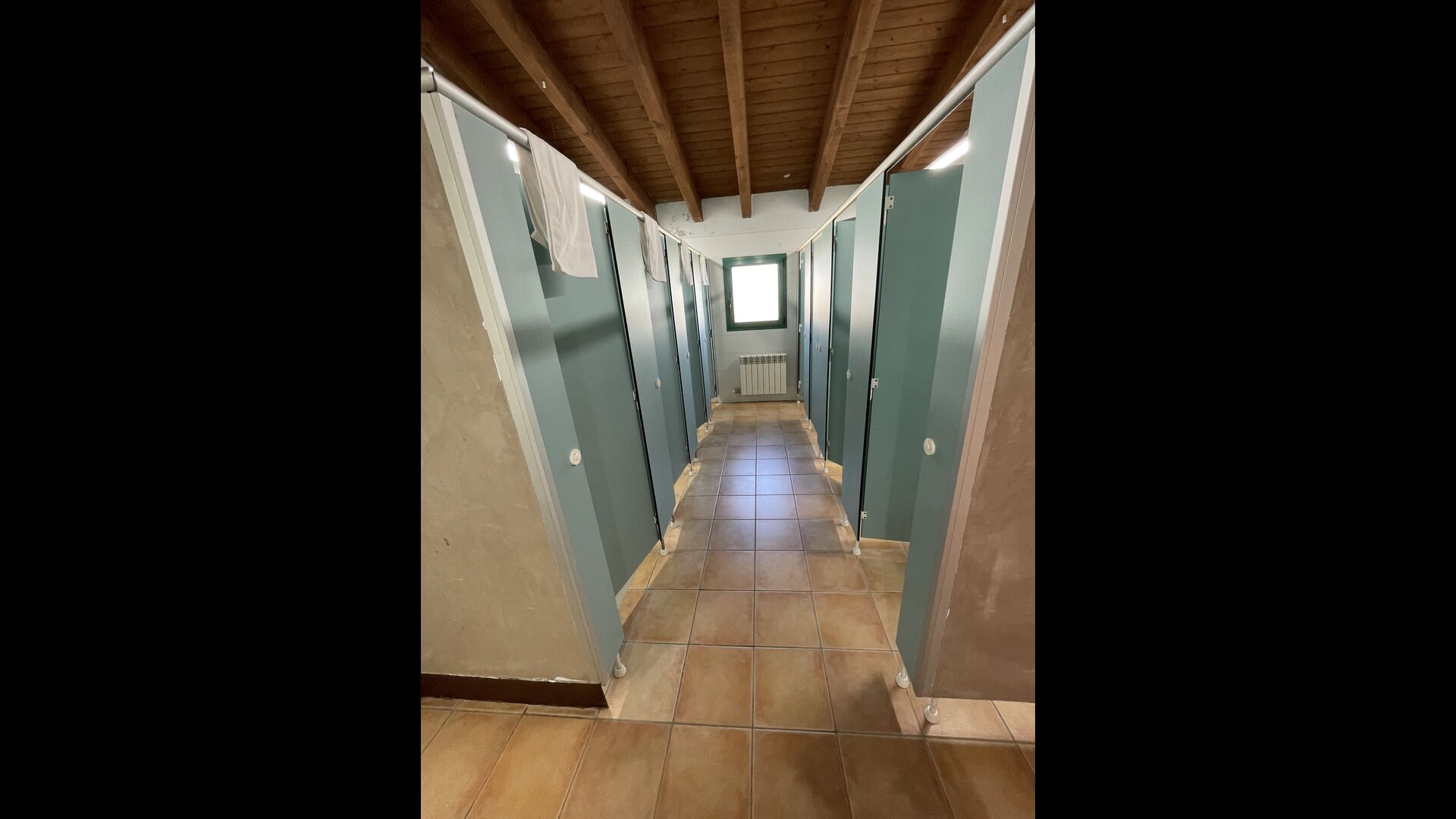 També trobareu un dels tres banys a la planta baixa; la seva distribució de l'alberg encara és evident . Hi ha 3 parades de vàter, 3 parades de dutxa i 3 piques.