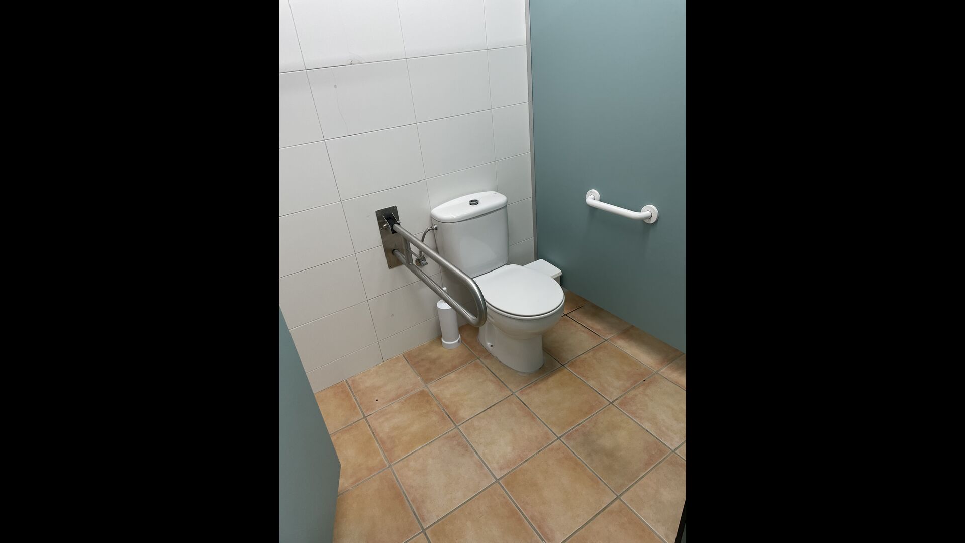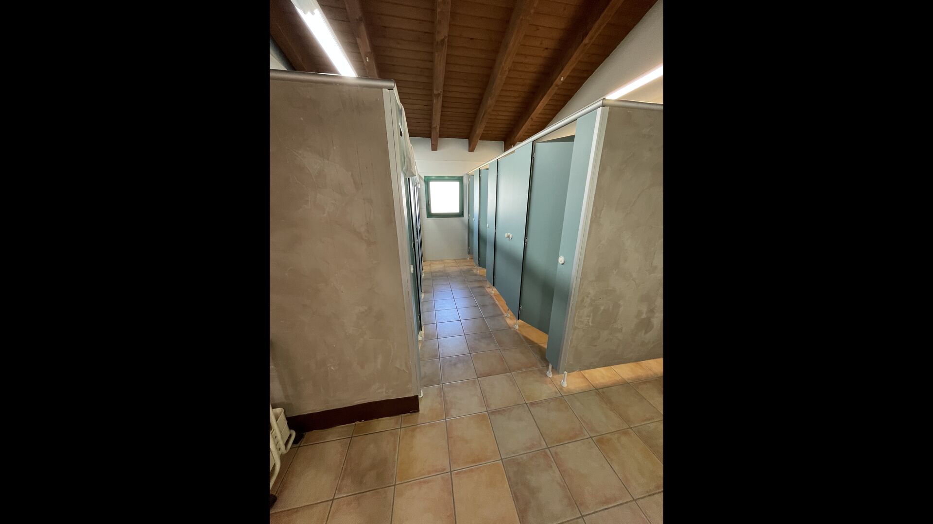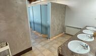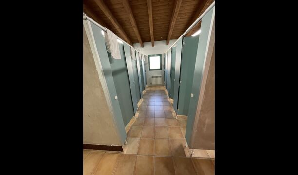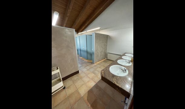 També trobareu un dels tres banys a la planta baixa; la seva distribució de l'alberg encara és evident . Hi ha 3 parades de vàter, 3 parades de dutxa i 3 piques.