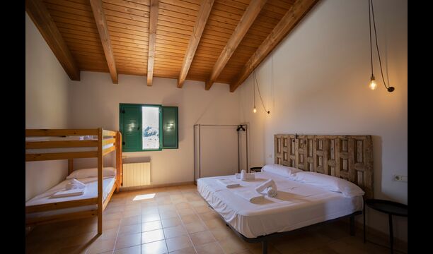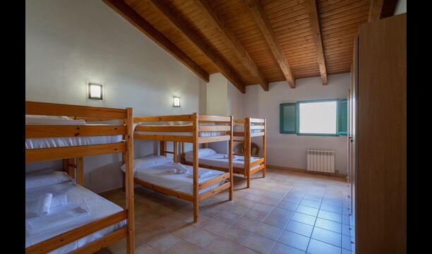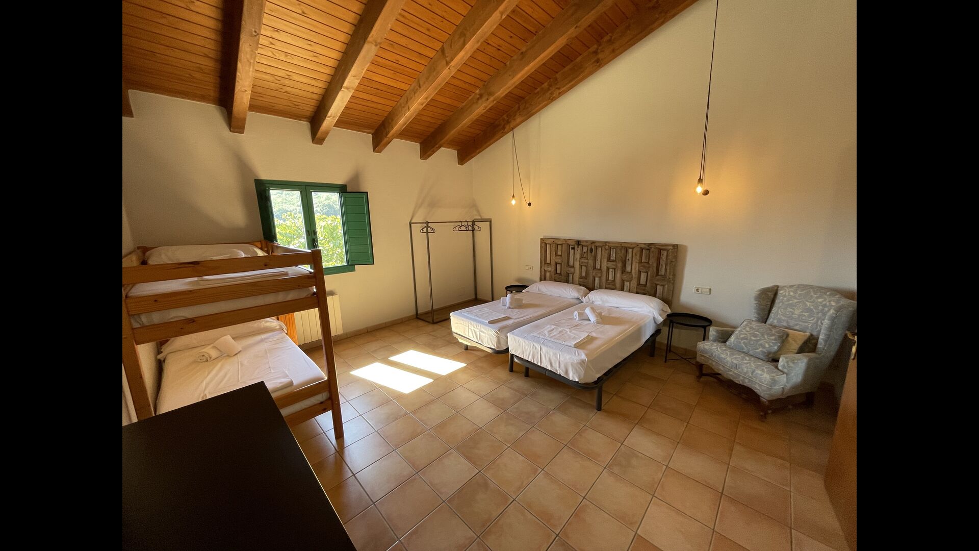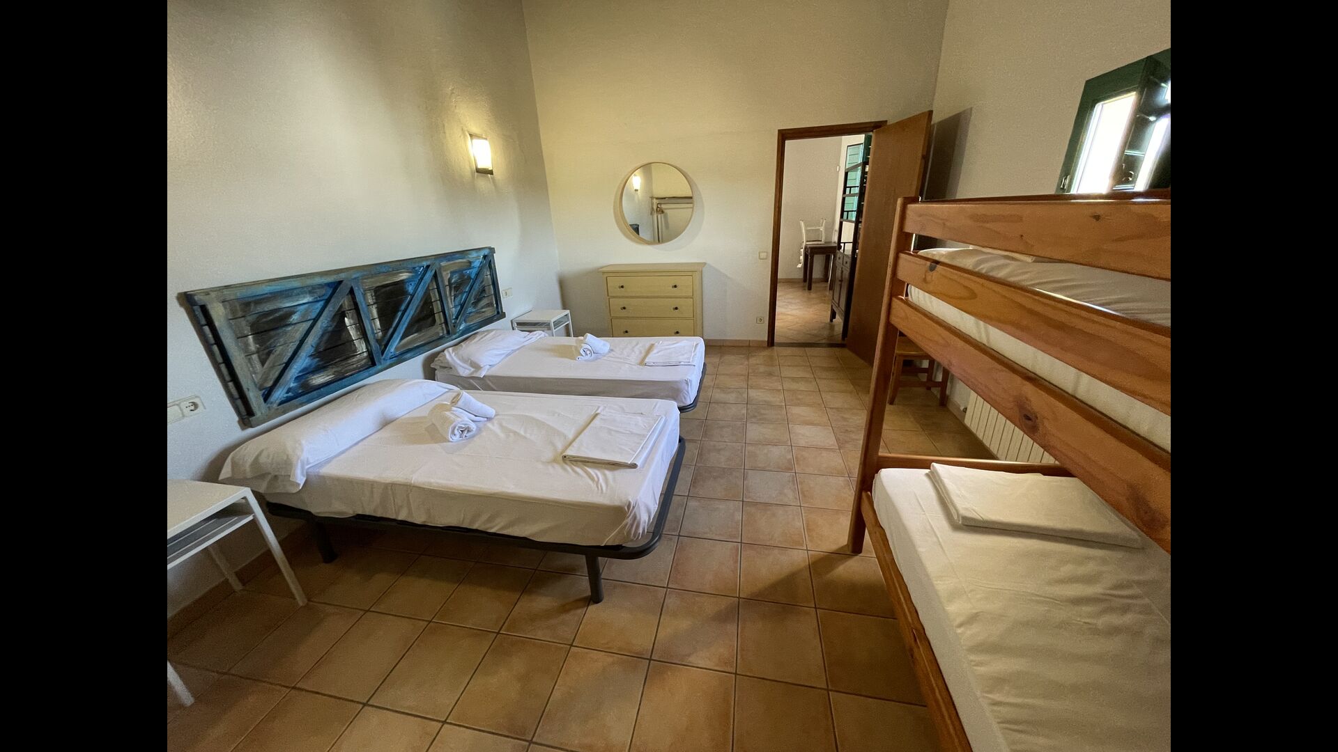 1 habitació doble amb un llit individual addicional (ideal per a pares amb 1 nen petit); 2 habitacions amb 2 llits individuals i 1 llitera cadascuna; 1 habitació amb 3 llits individuals, 1 habitació amb 2 lliteres i 1 habitació strong> amb 3 lliteres.