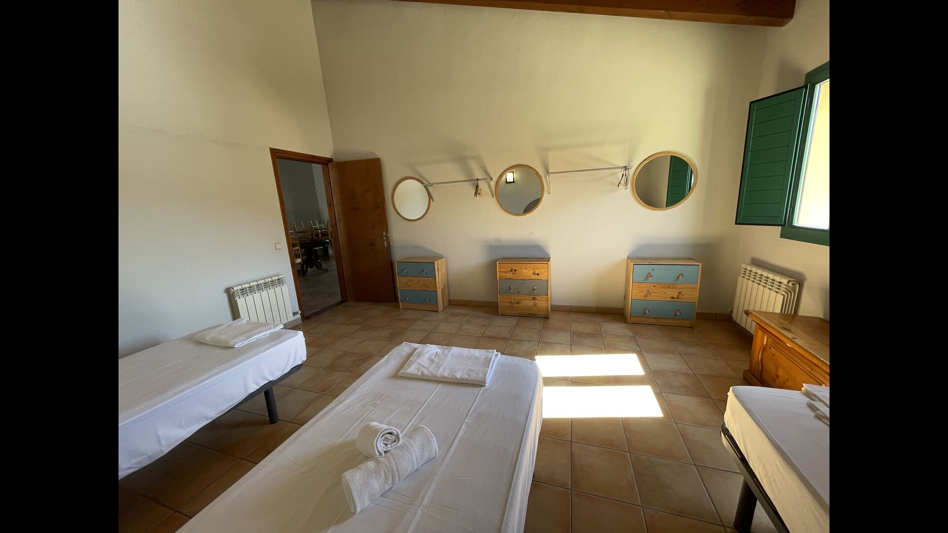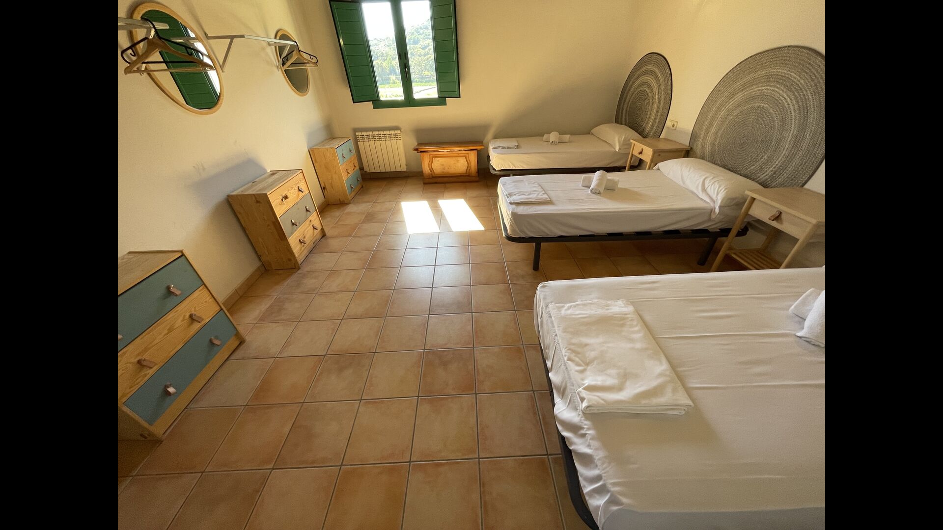 La casa té dues plantes i conté 8 habitacions en total: algunes amb llits individuals, altres amb lliteres i algunes amb llits dobles. La casa conté 3 banys: un a la planta baixa i dos al primer pis< /strong>.