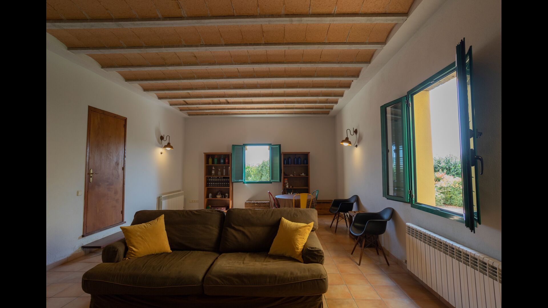 A més dels camps amb plantes, el paisatge de la casa és abundant amb molts turons plens de vegetació natural i que conté moltes rutes de senderisme/rutes, que et fan sentir pacíficament aïllat, com si visqués en una petita butxaca d'activitat envoltat. pel bell i remot camp català. Però no estàs tan lluny de tot com pots pensar; les platges de la Costa Brava estan a menys de 7 km. lluny, i tens diversos pobles grans amb molts serveis a prop; el més proper a una llarga distància a peu de 2,2 km. p>