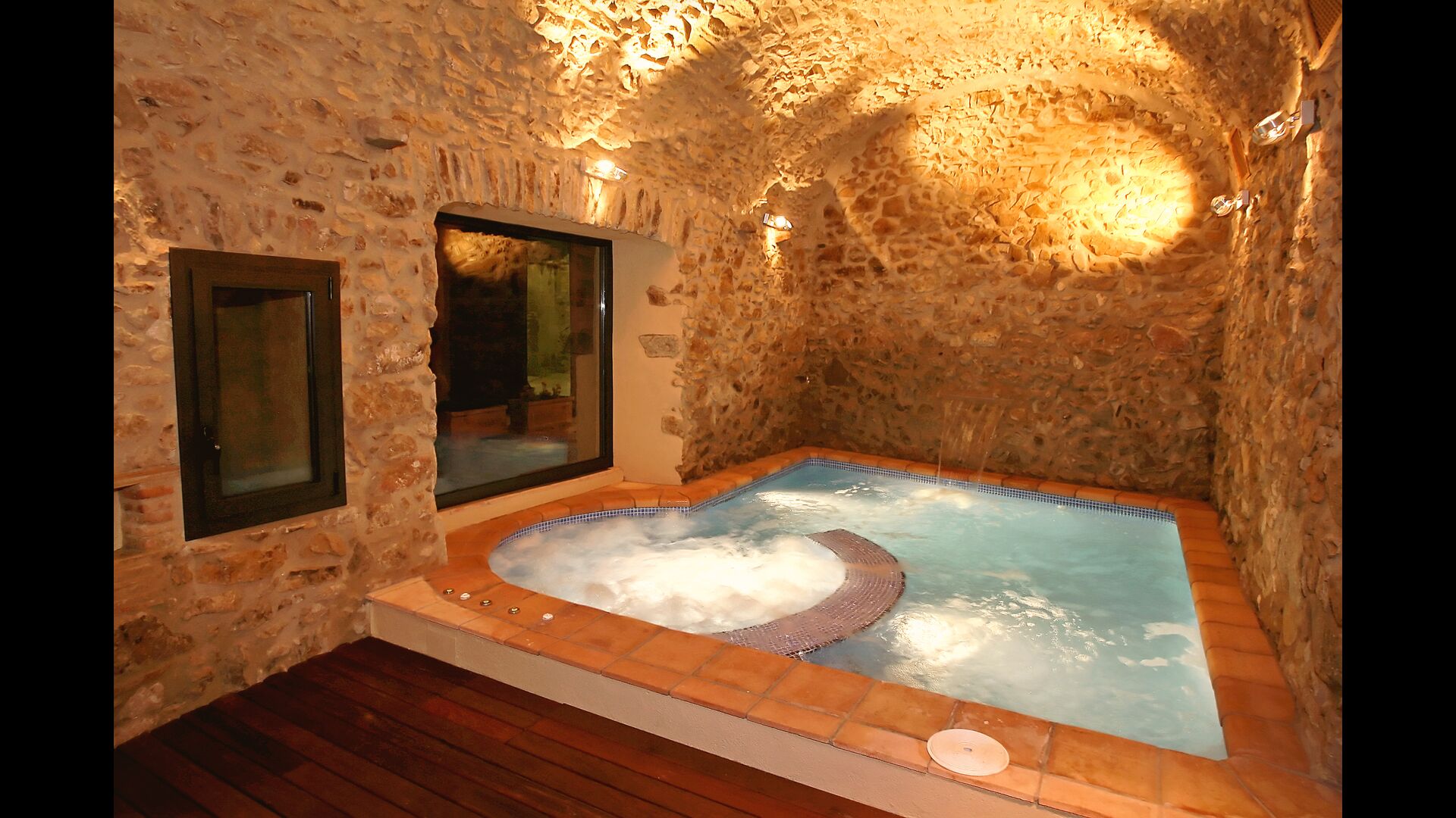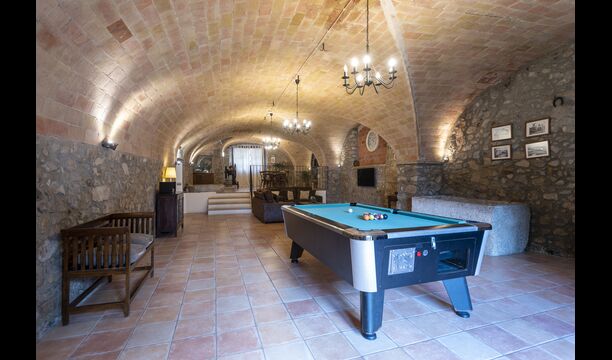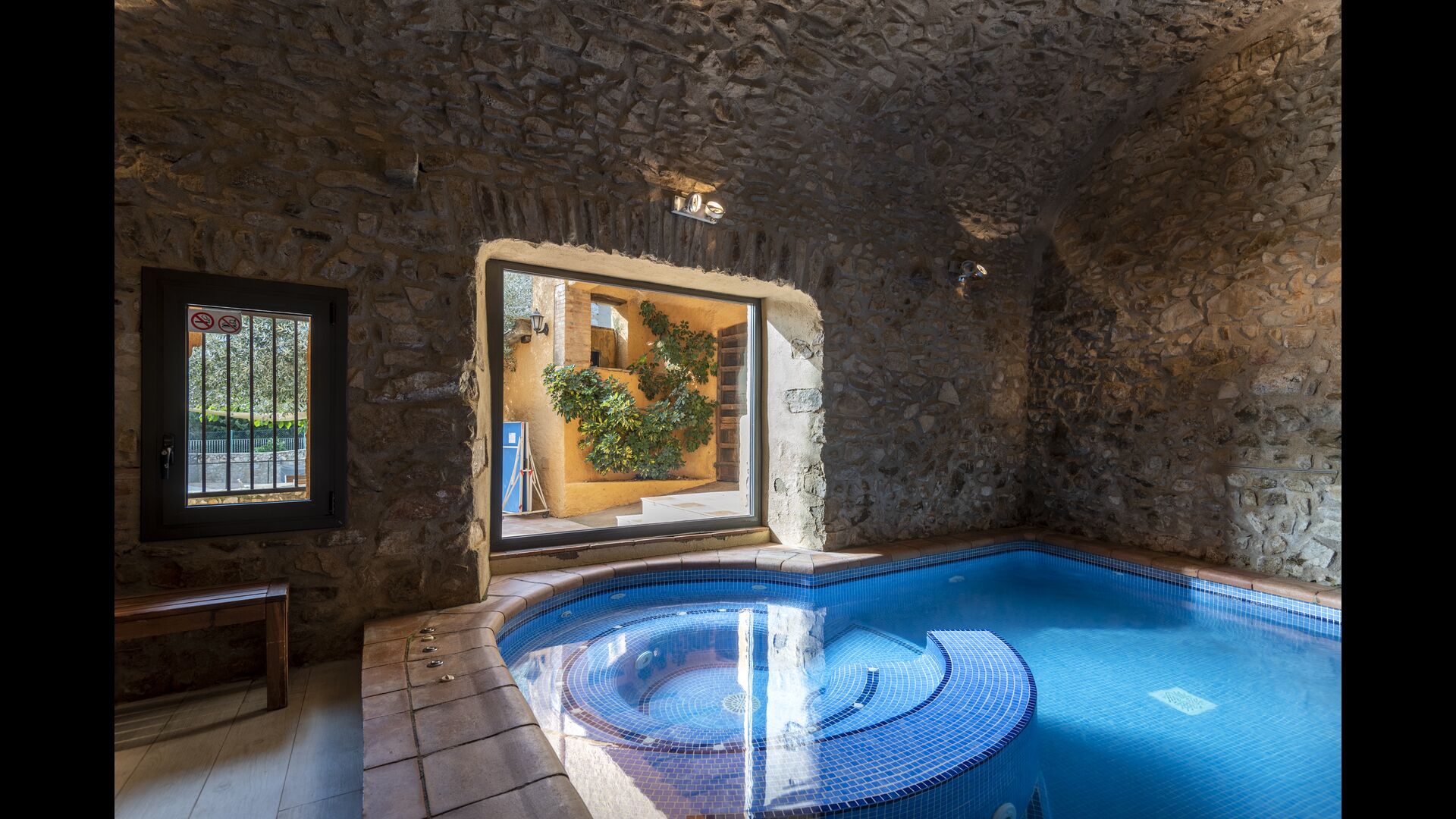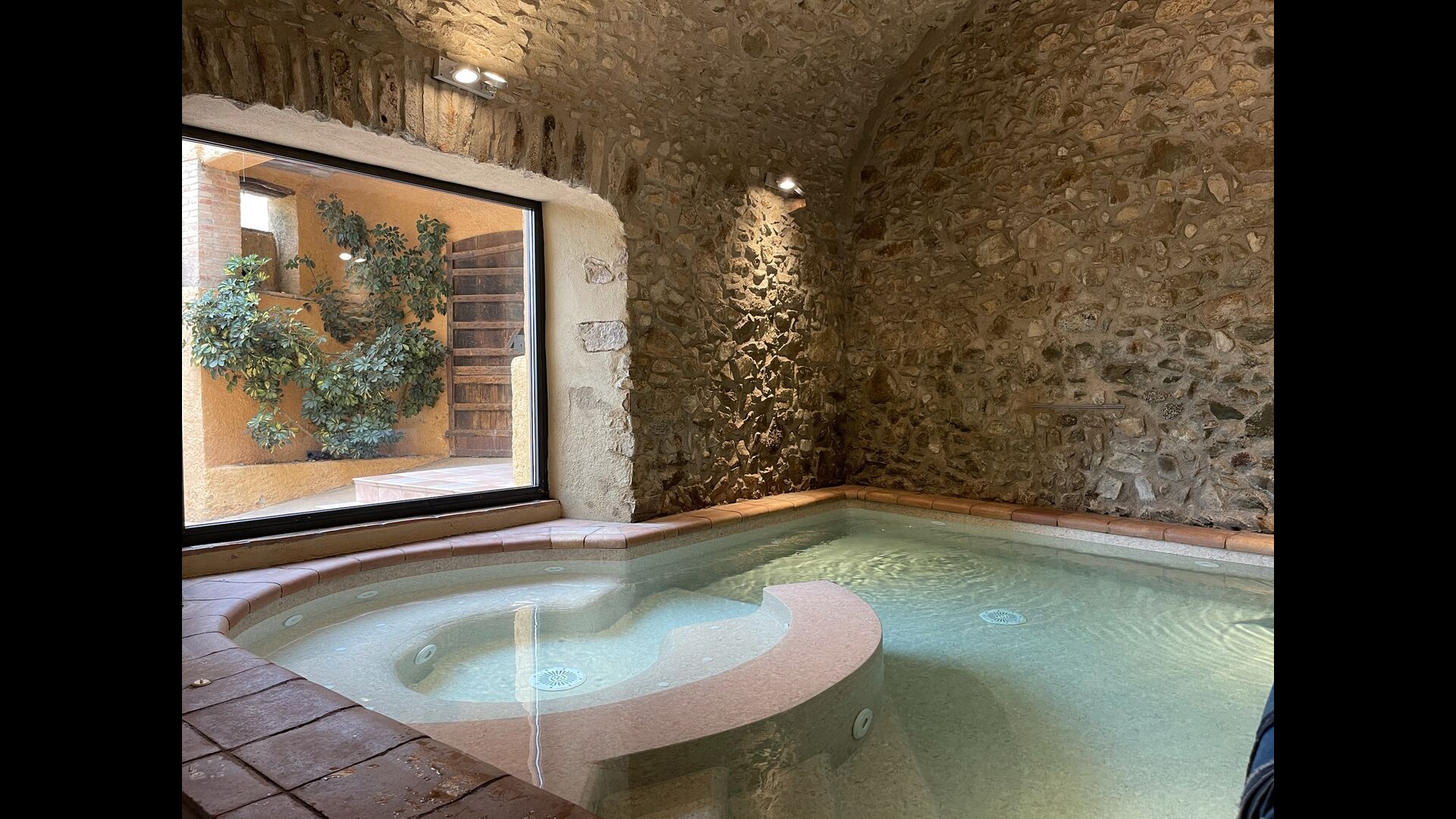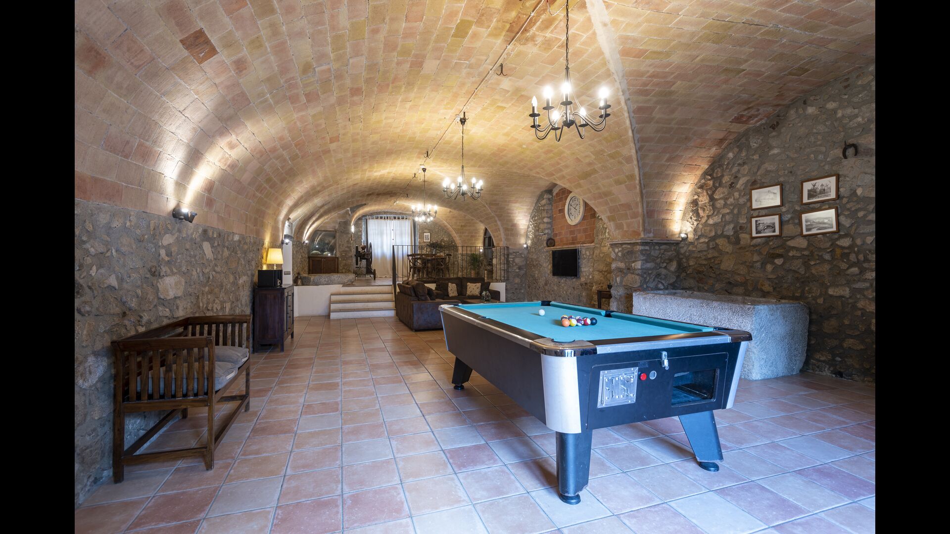 A la planta baixa, podreu gaudir d'àmplies zones comunes amb sostres de volta catalana i parets de pedra. Entre els serveis, hi ha una gran sala d’estar amb zona de TV, equip de música i taula de billar. A la part posterior, trobareu un jardí tancat equipat amb zona de barbacoa, piscina exterior d’aigua salada, taula de ping-pong i un espai de jocs per a nens. A més, hi ha una piscina interior climatitzada amb jacuzzi per a la vostra relaxació.
