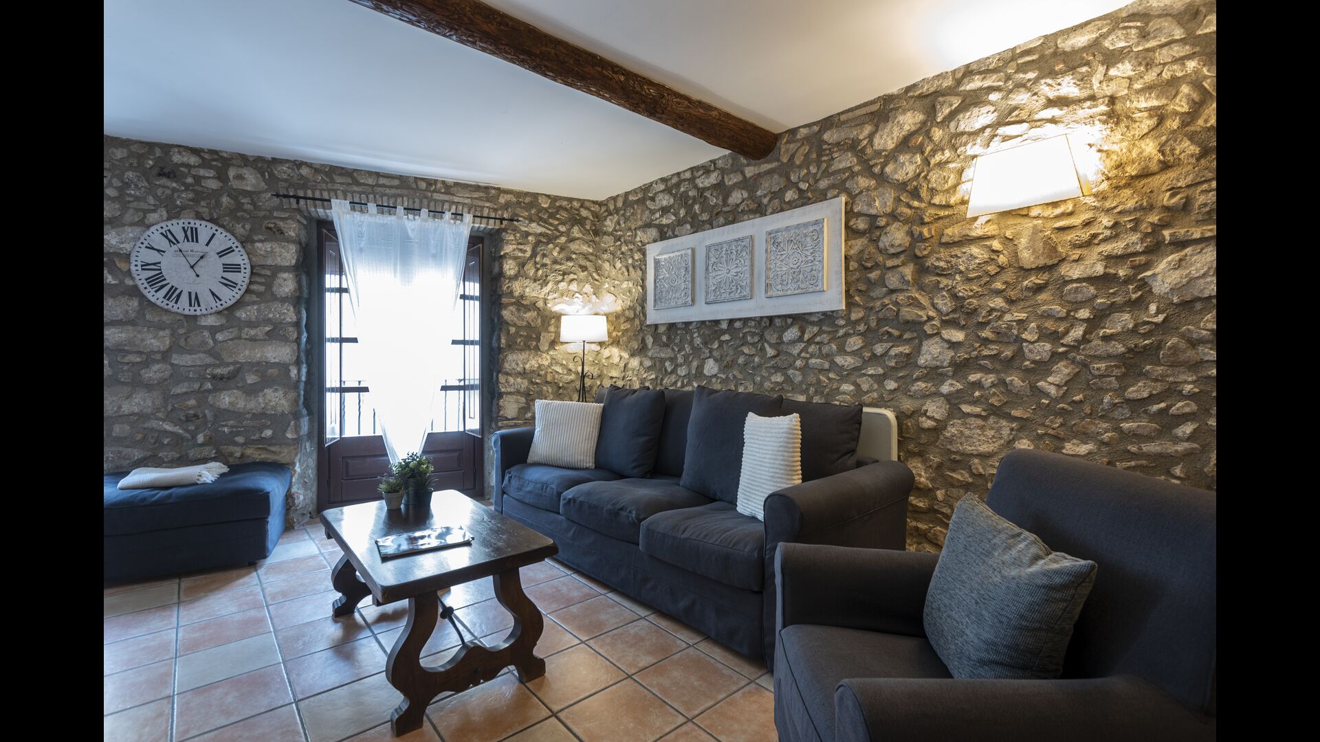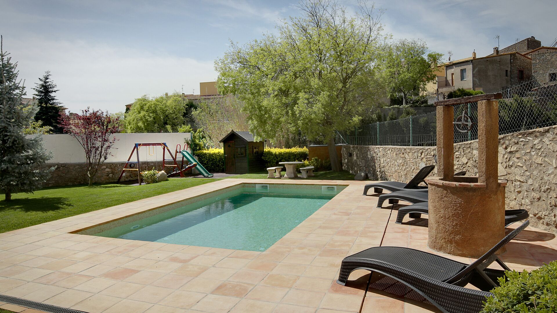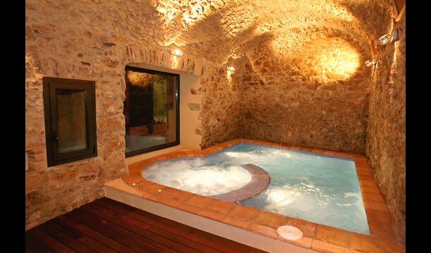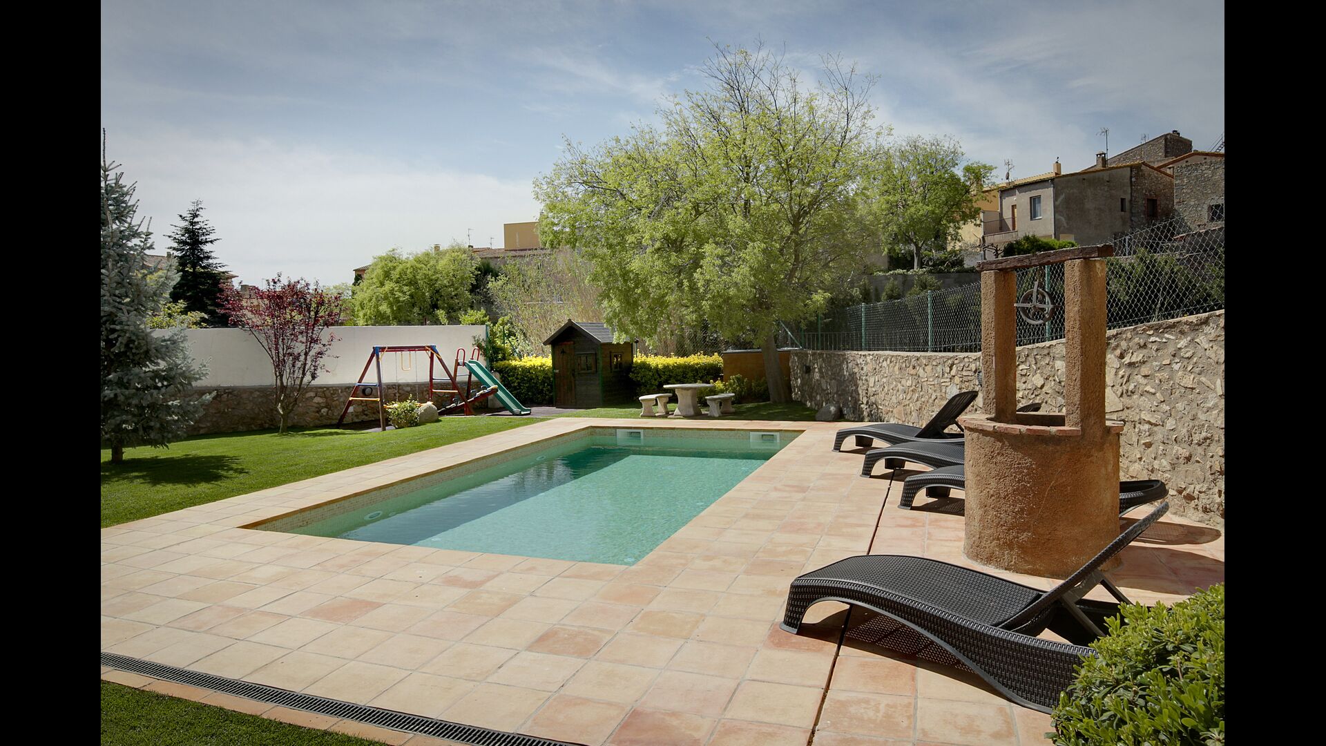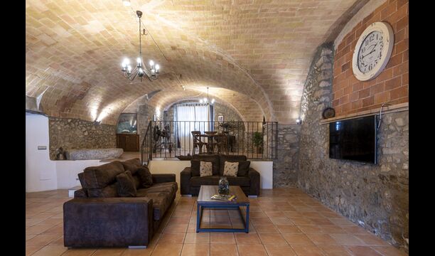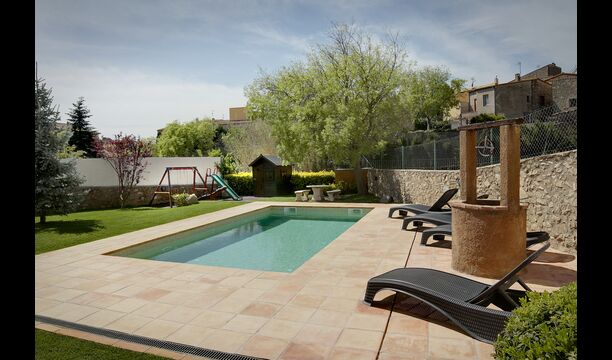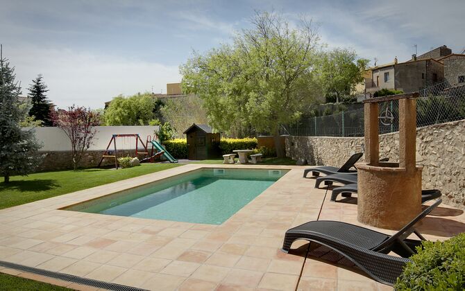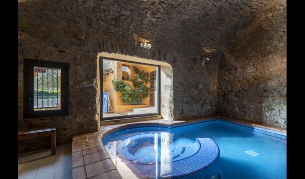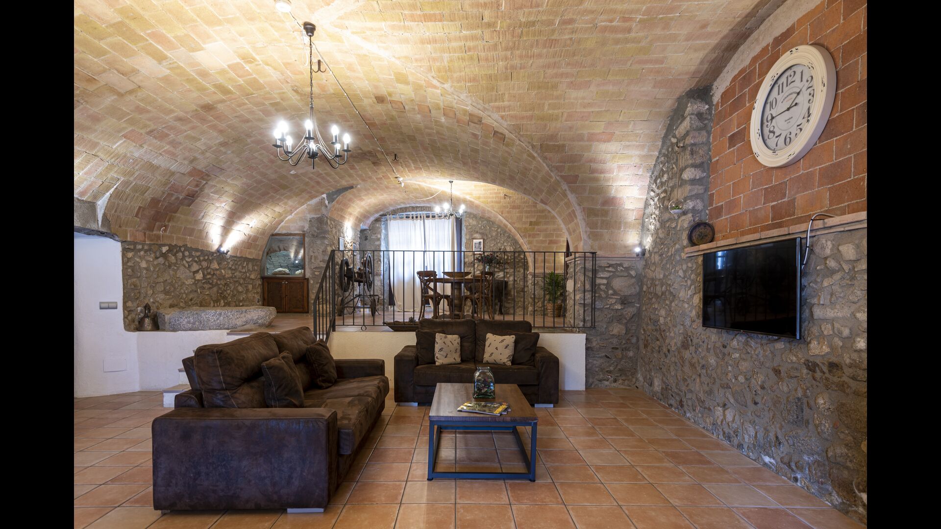 A la planta baixa, podreu gaudir d'àmplies zones comunes amb sostres de volta catalana i parets de pedra. Entre els serveis, hi ha una gran sala d’estar amb zona de TV, equip de música i taula de billar. A la part posterior, trobareu un jardí tancat equipat amb zona de barbacoa, piscina exterior d’aigua salada, taula de ping-pong i un espai de jocs per a nens. A més, hi ha una piscina interior climatitzada amb jacuzzi per a la vostra relaxació.