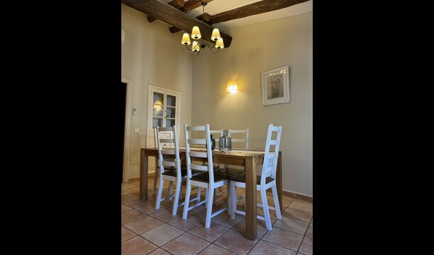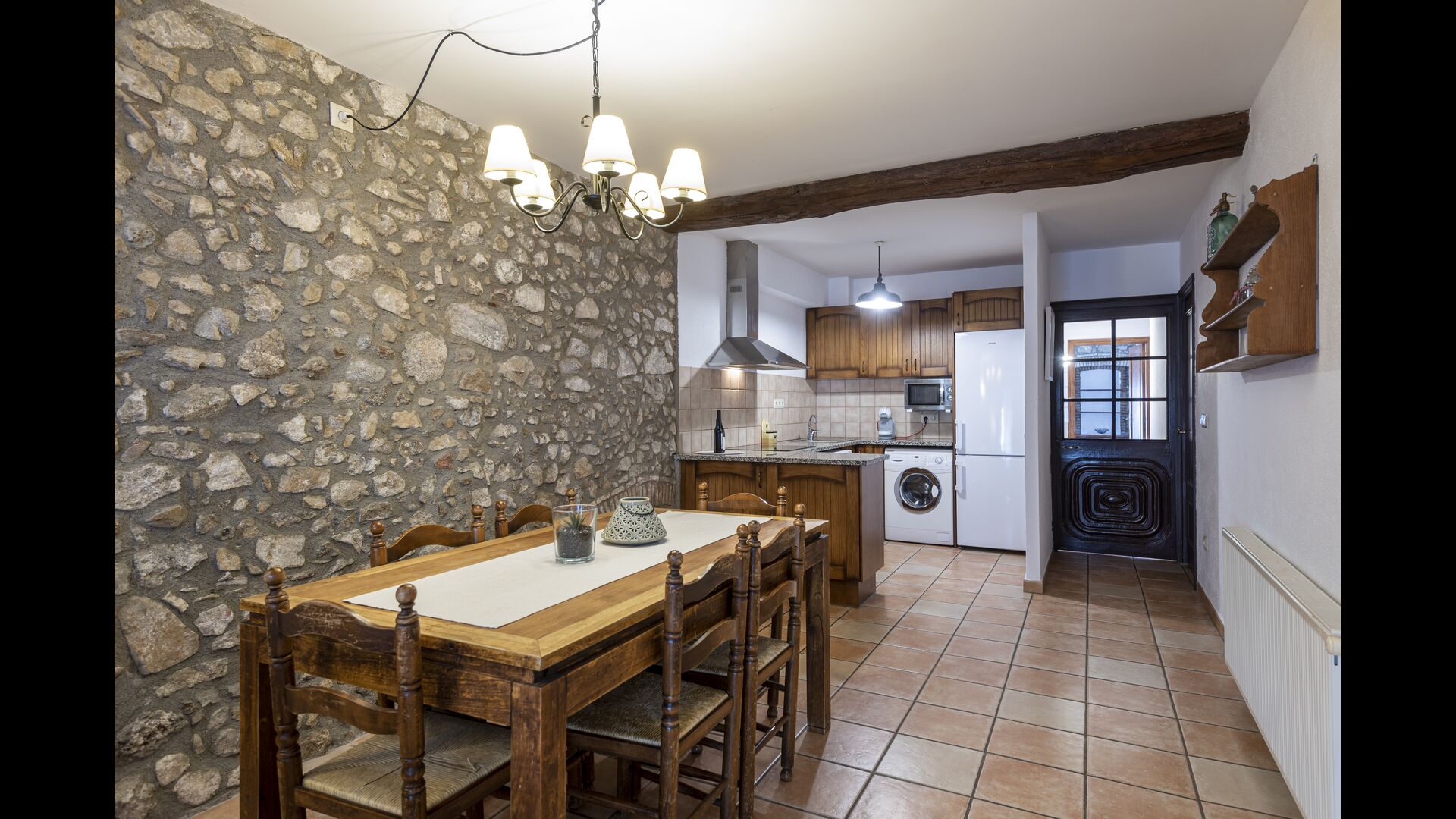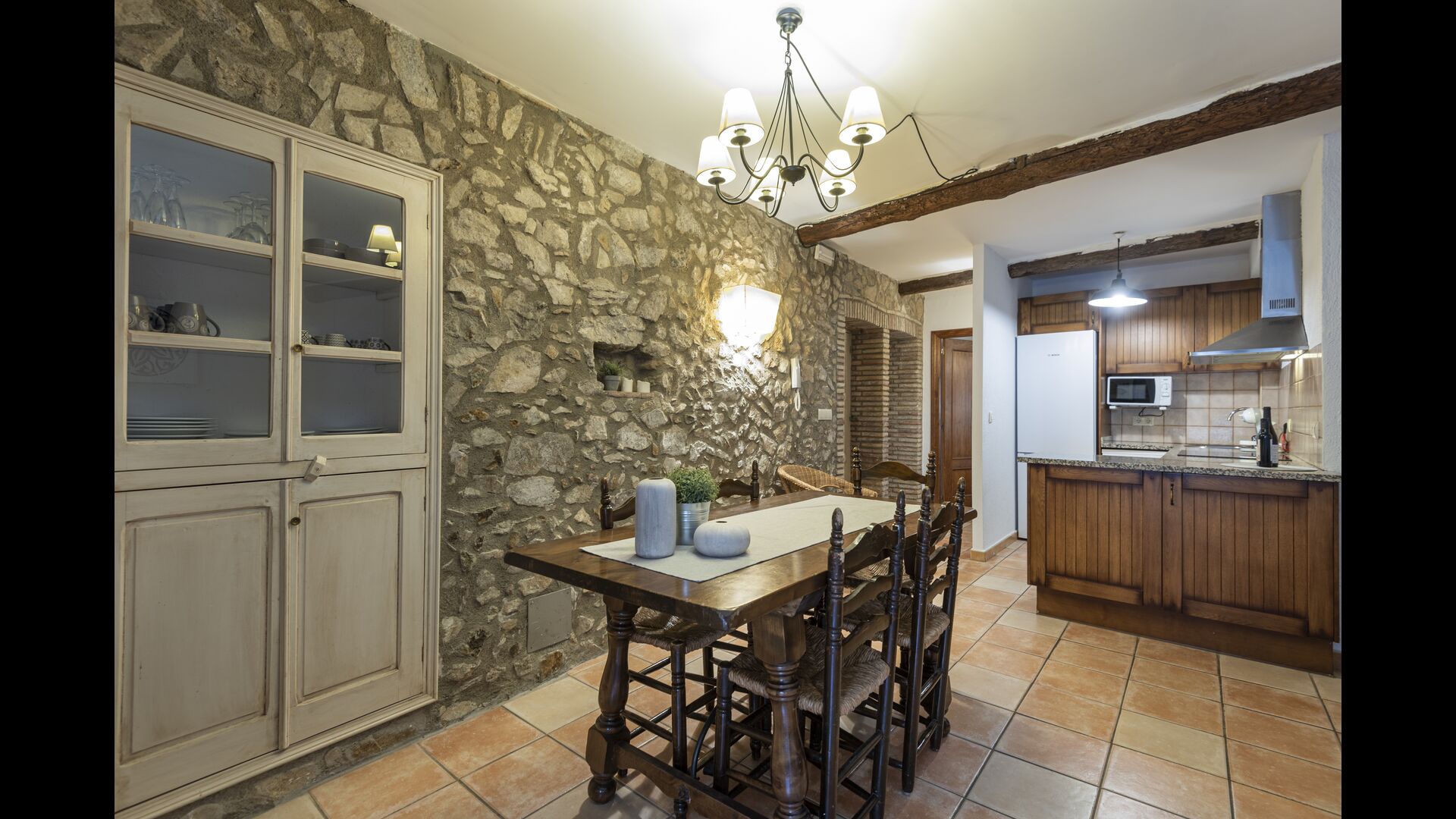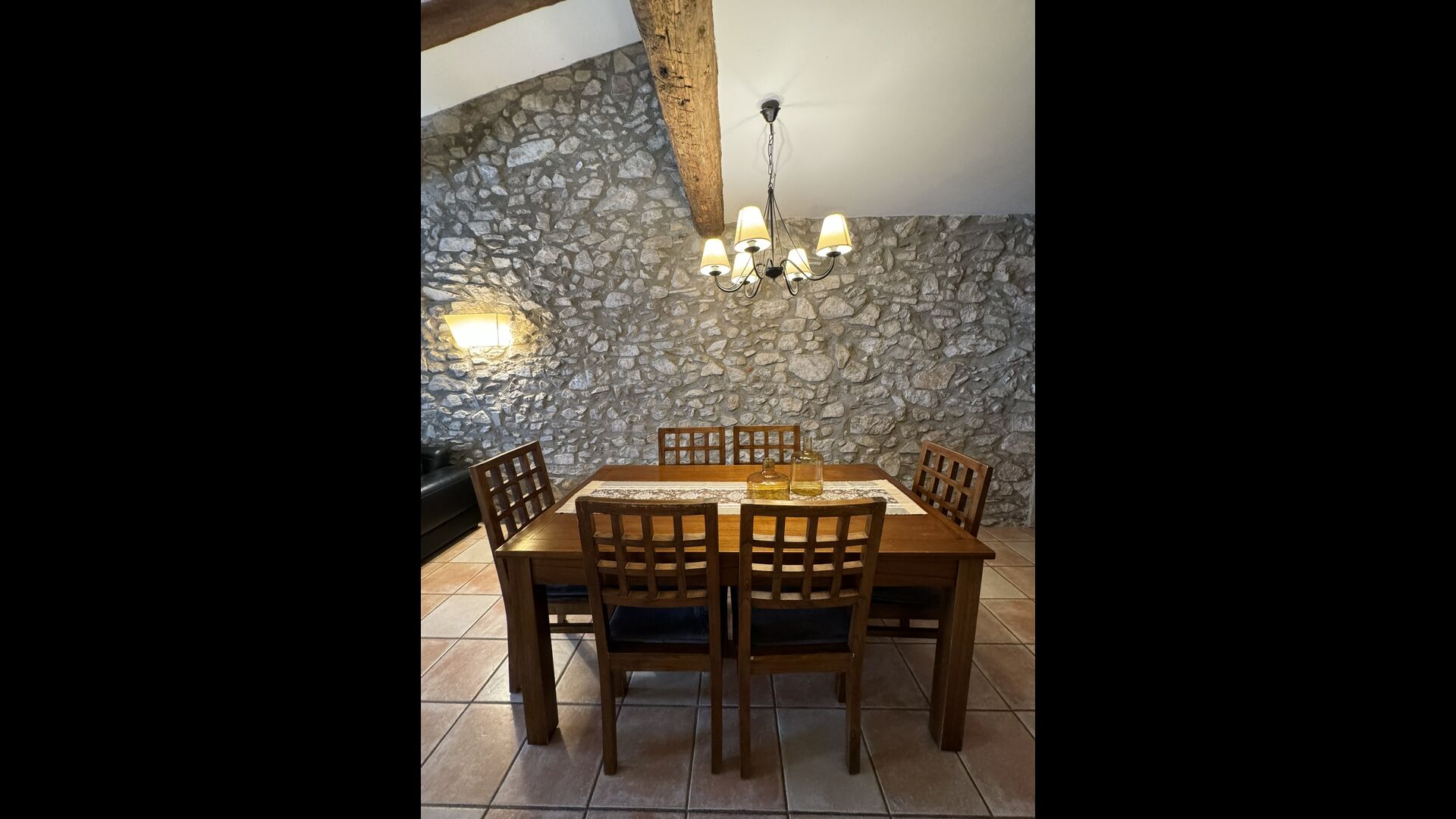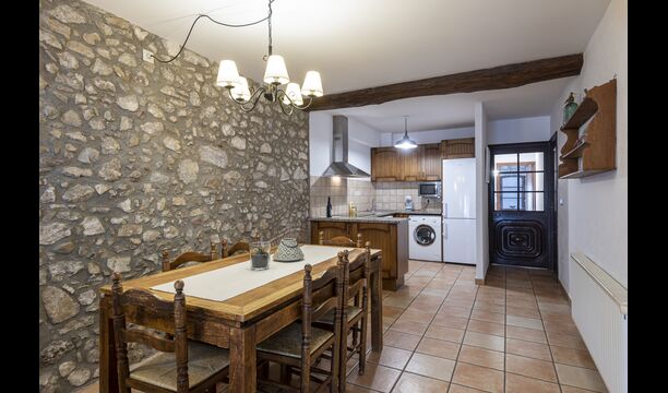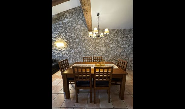 Si es lloga tota la masia junta, el propietari proporciona dues taules plegables que es poden utilitzar per ampliar una de les taules de menjador, de manera que tot el grup pugui menjar junts.
