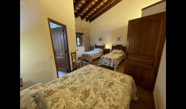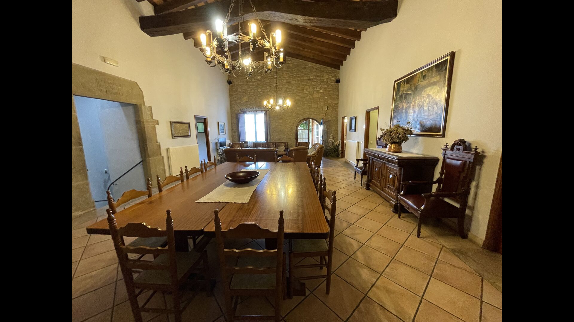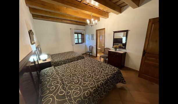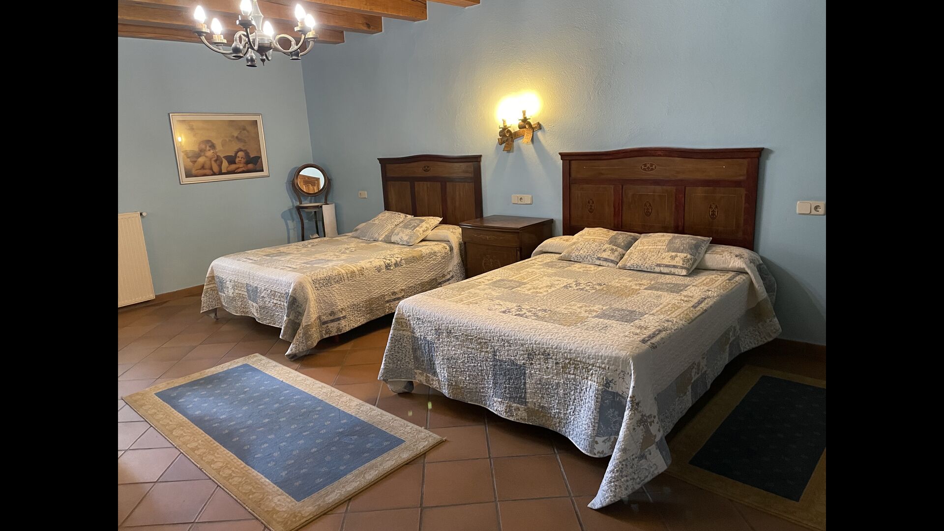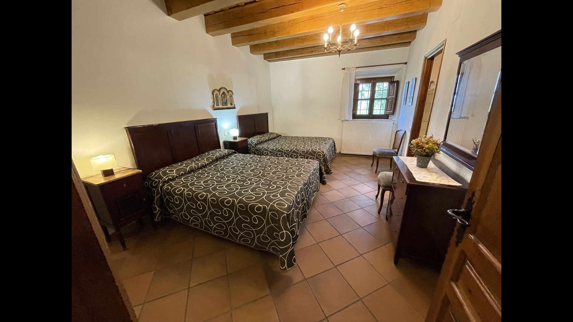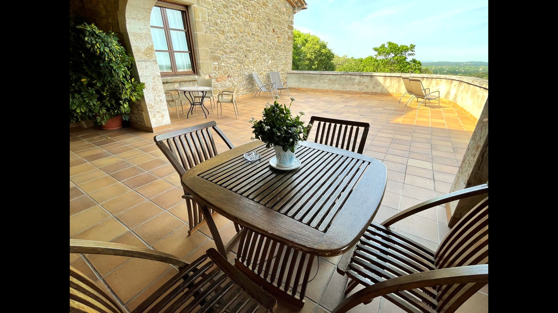 Masia Tapire consists of three separate apartments: “Exida” with 5 bedrooms, “Truit” and “Mirador” both with three bedrooms. Each apartment has its own dining-room, kitchen and living-room. There are high ceilings in Masia Tapir - making you feel that you are in an old castle or mansion. The big beautiful dining rooms and living rooms, all furnished with good respect for the traditional Catalan style emphasize the beautiful feeling. Masia Tapir has no less than 12 rooms and can accommodate 25 guests +6. There are12 bathrooms, nine of which are ensuite. The rooms are decorated in beautiful traditional Catalan style and the bathrooms are large.