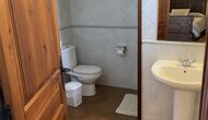 From the terrace with barbecue area, you enter the hall. If you go straight on, you will enter the “Truit” unit. It is very spacious and with high ceiling. It has a big open kitchen with all commodities, (dishwasher, microwave, oven, hot plates, washing machine). Furthermore a dining area with dining table, a sofa corner with TV and a toilet. There is access to another terrace area with garden hammock and a beautiful view.