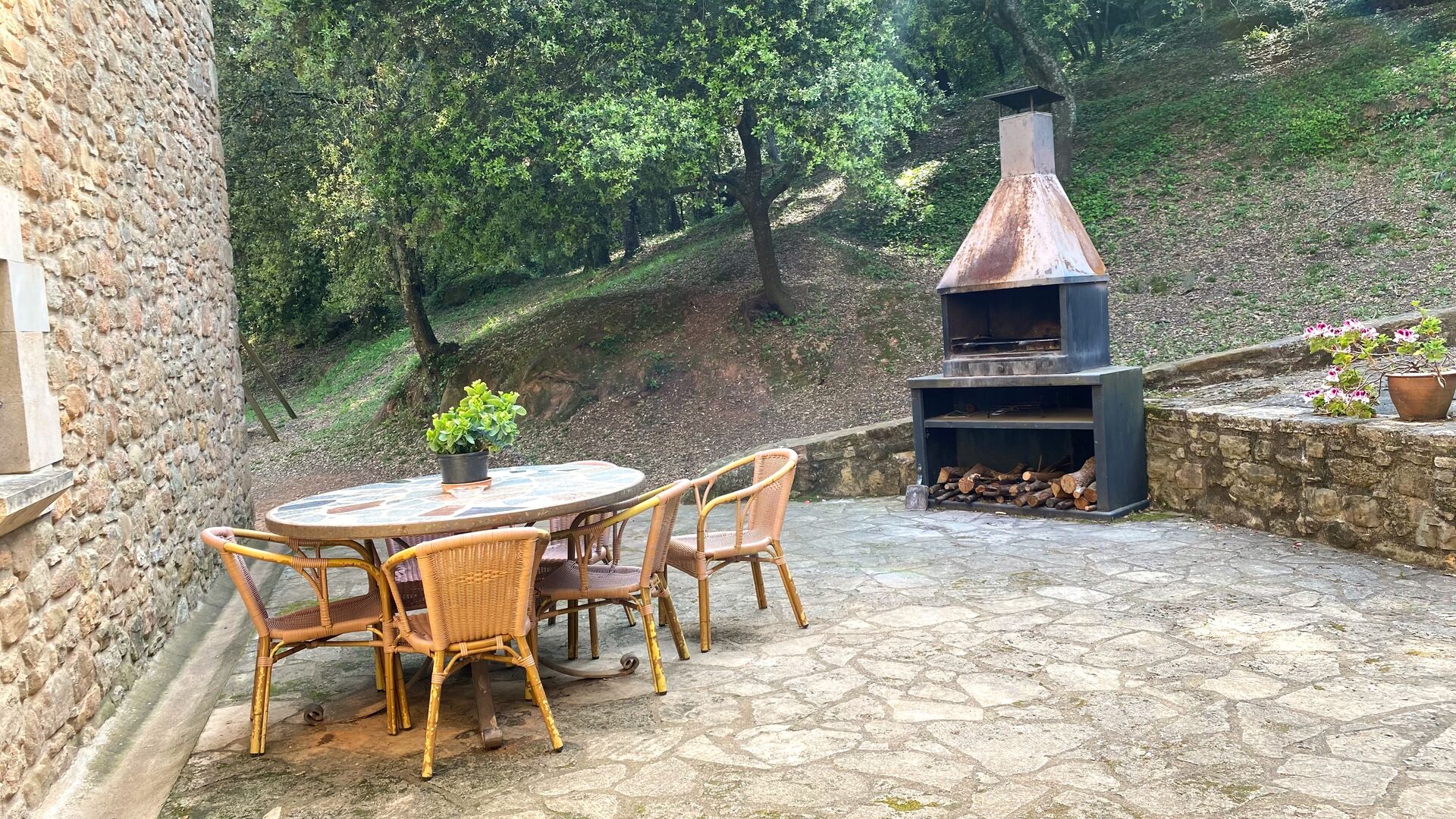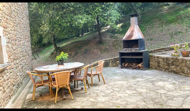 The pool area is situated in fantastic green surroundings below the house. It is almost situated in an olive field. It is well-equipped with plenty of sun loungers and a covered terrace. Also the orange and mandarin trees add to the sensation of being alone in the Catalan nature. For the children, the garden has a small football lane with football goals. The house has three large terraces with seating and loungers. There are several barbecue areas.
