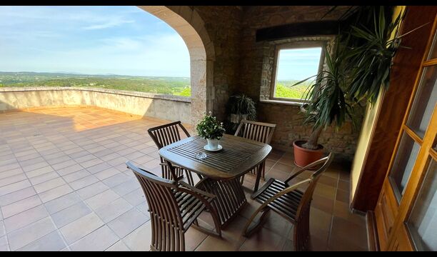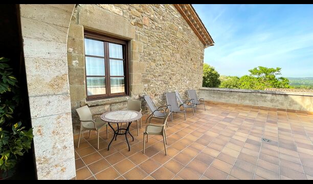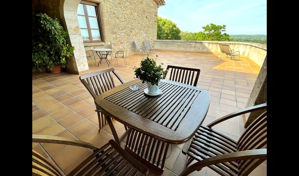 Upon arrival at the Masia Tapirs large courtyard, with views over an insanely beautiful, open landscape, you sense immediately that the house is quite unique. Here is a 10.000m2 beautiful garden, privately neat olive grove, 1000m2 decorated house, four terraces and a fantastic pool area with a divine view. By the swimming pool are also toilets and changing rooms. Masia Tapir may be the ultimate frame for the really large holiday group!