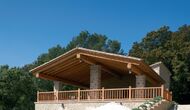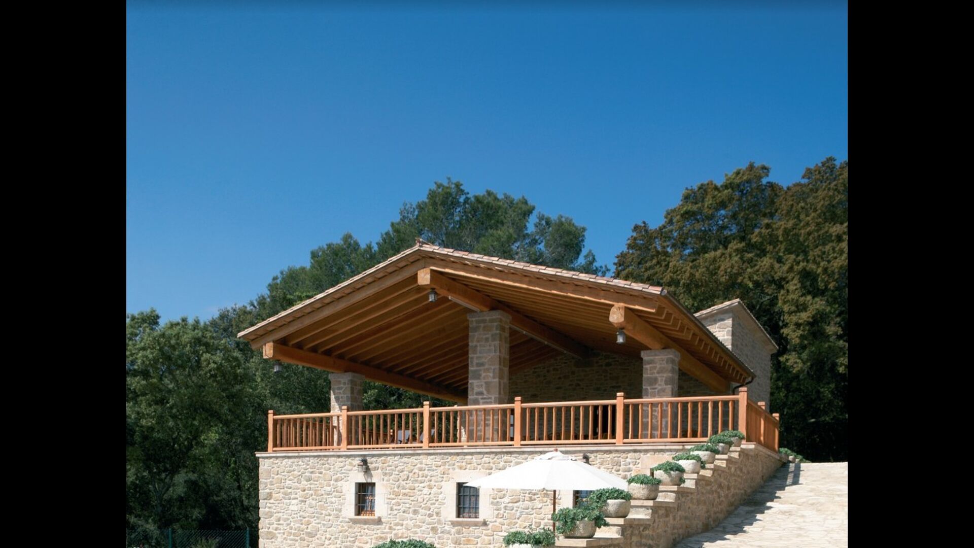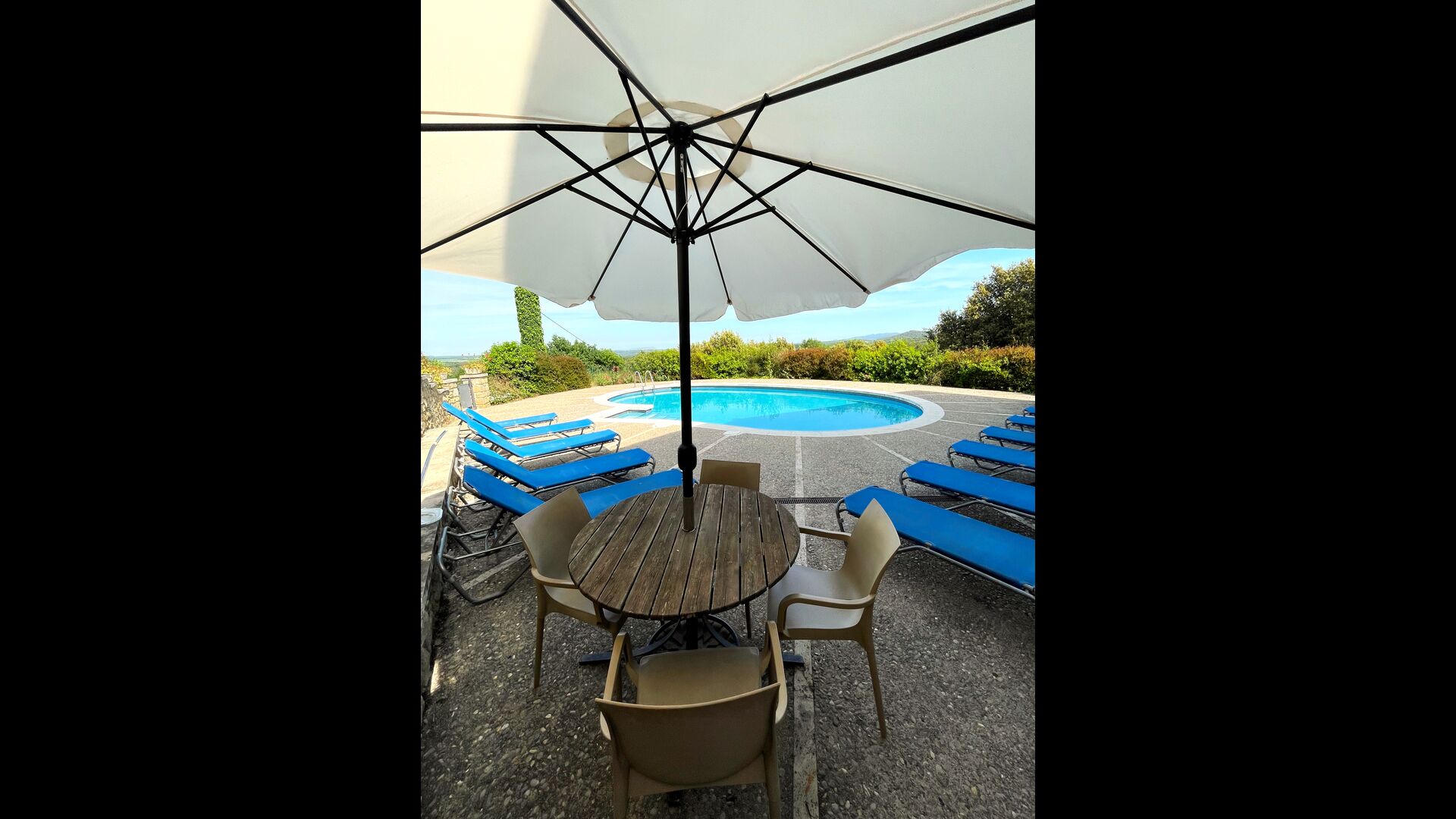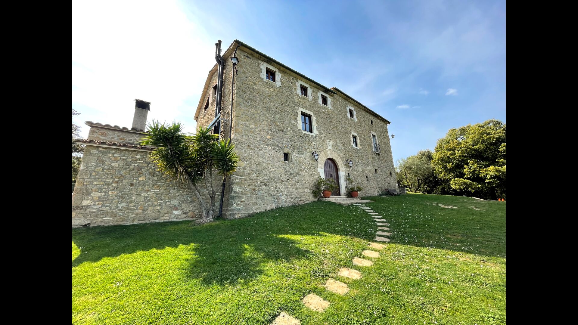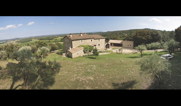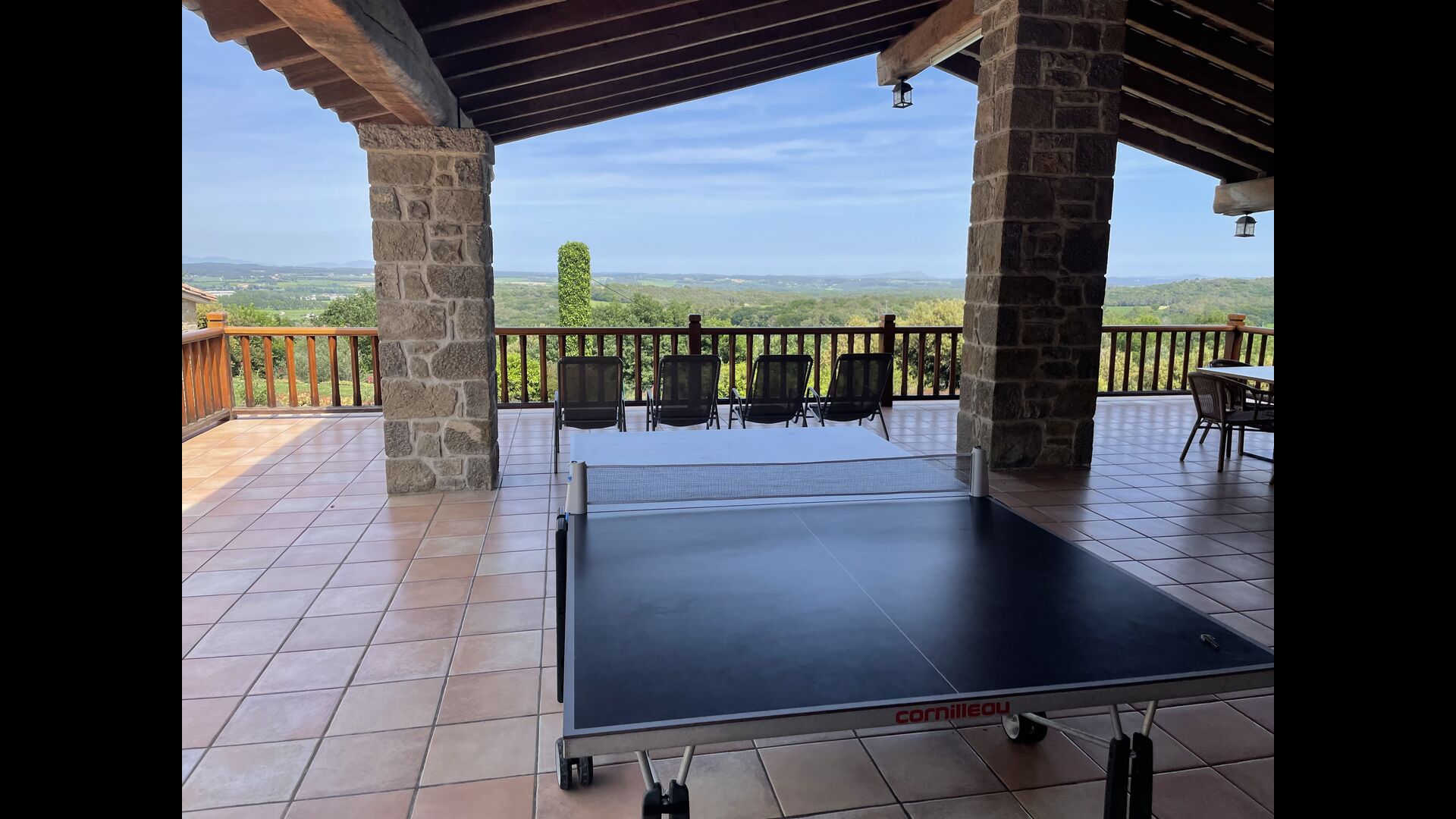 From the road, following in distance the shore of the idyllic Banyoles lake, you turn right to drive uphill through a tiny forest until you arrive to the impressive driveway in front of the house. The house has two buildings, the main building and the side building also called Masover. Below the building, you have the large pool area with sun loungers, or if you prefer the shade, you can enjoy life on the very big terrace one level above the pool area.