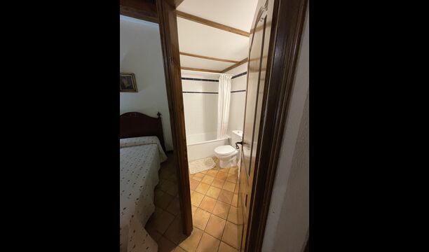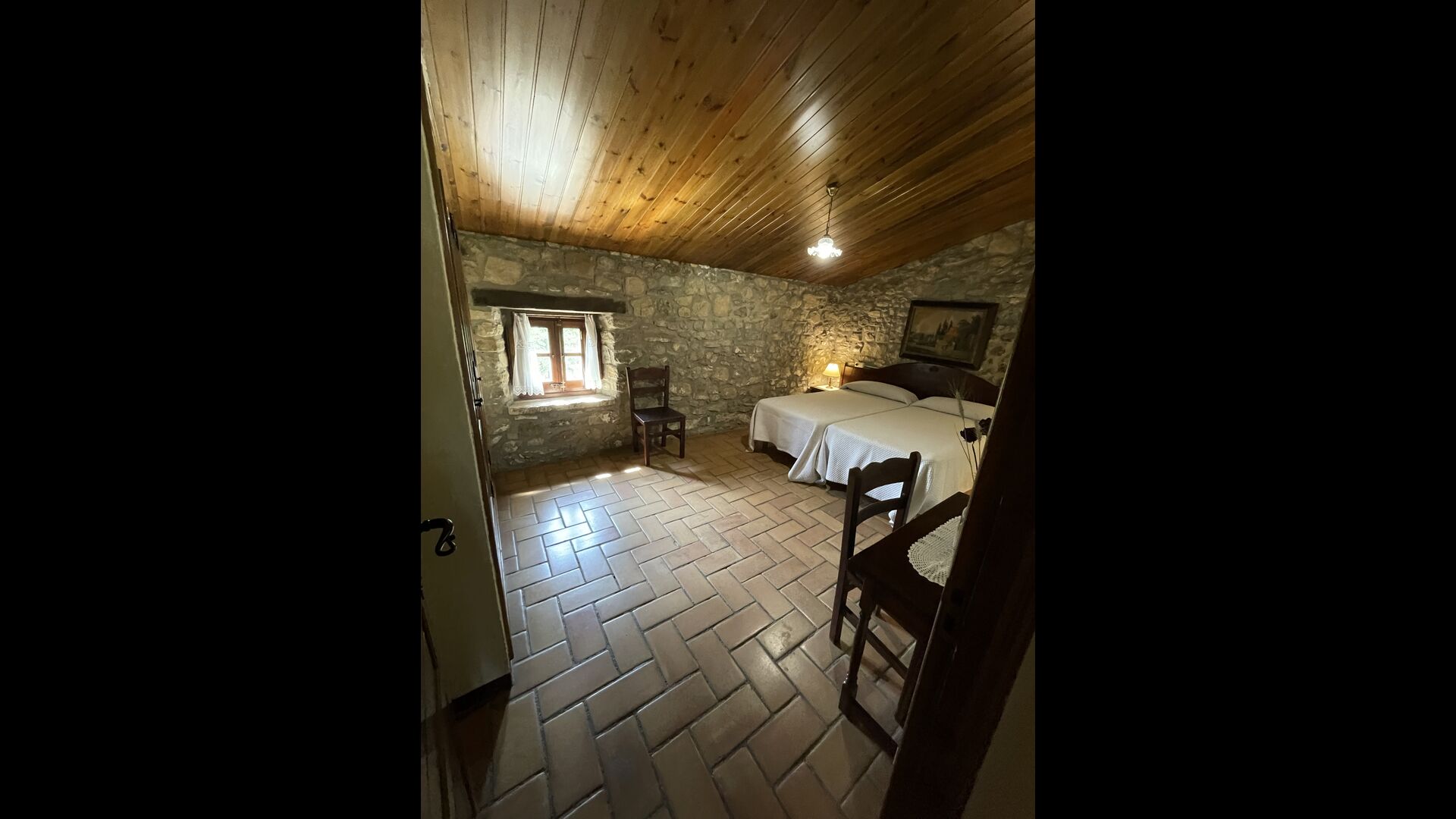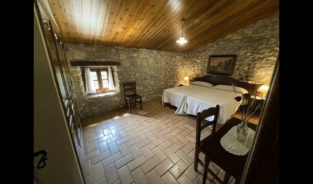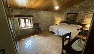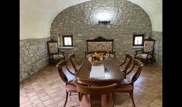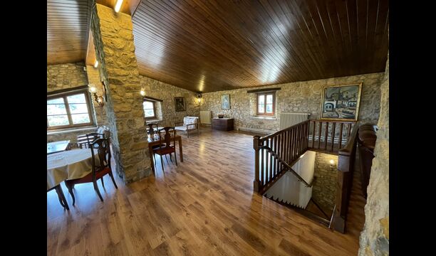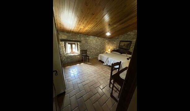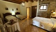 From the kitchen, you have access to a big dining room, and from here three steps up, you find three double rooms, one with many authentic details and double bed, one with two single beds and finally one with double bed and a balcony with a fantastic view. There is one bathroom. In the other direction from the dining room, there is a living room with a toilet and also an extra fridge with freezer. Additionally there is access to a very big double room with two double beds and a bathroom ensuite, another double room with bathroom and third double room with double bed.