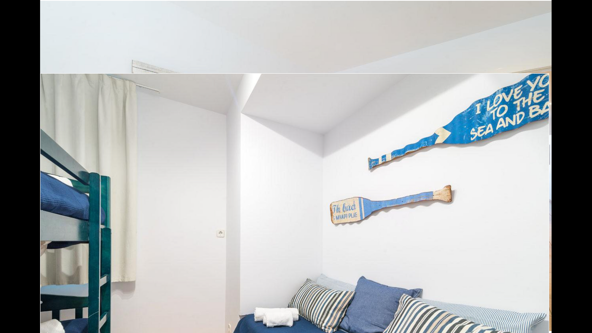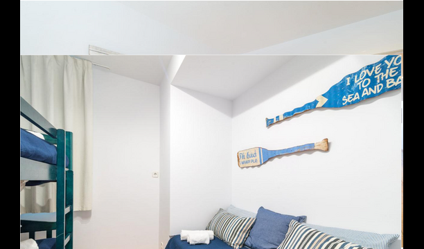 L'apartament en si està ben decorat i té un gran dormitori principal i després un segon dormitori amb una llitera i un sofà llit, cosa que permet allotjar-hi entre 4 i 5 persones. Té un bonic bany també amb banyera.