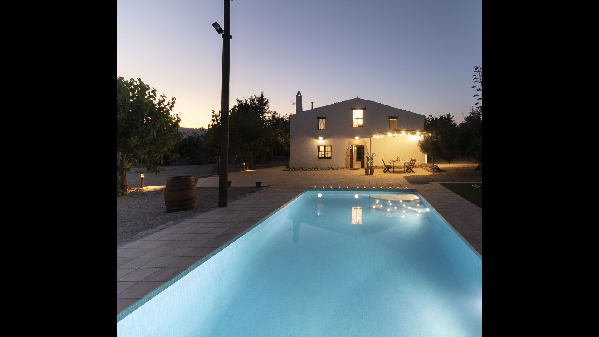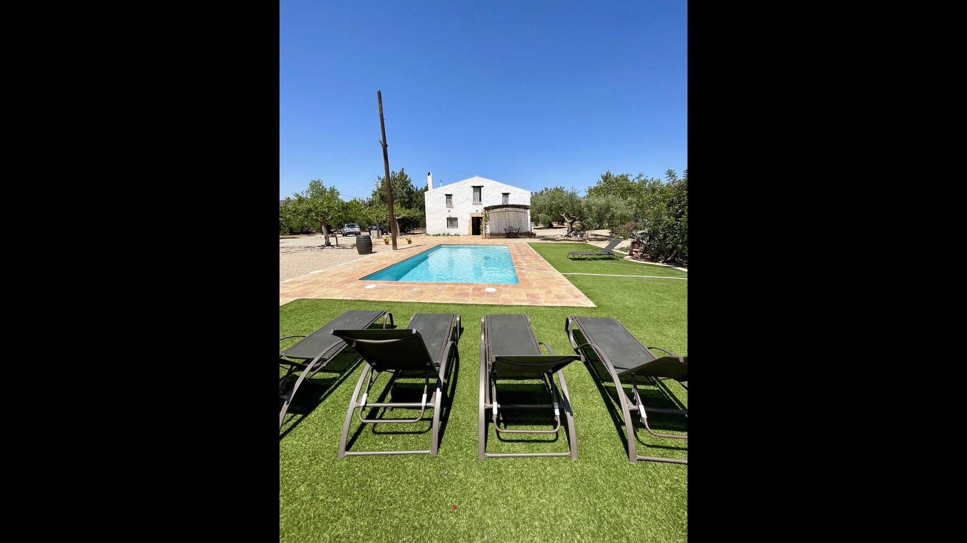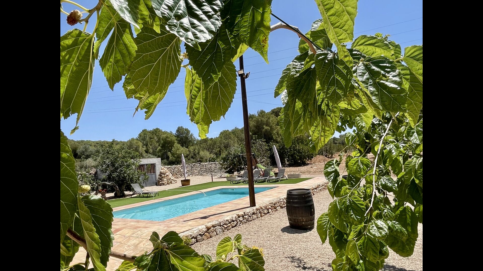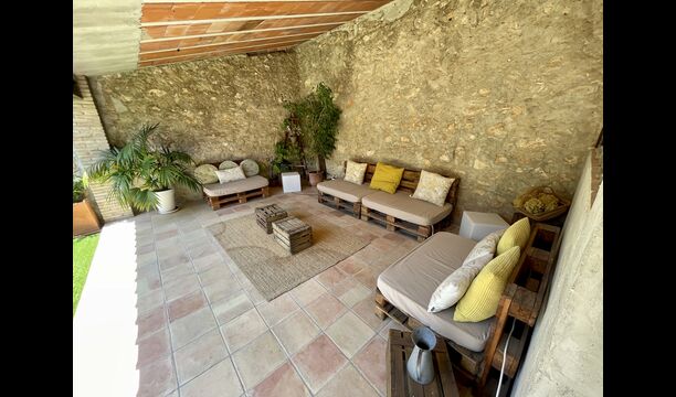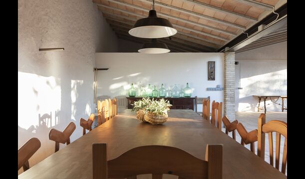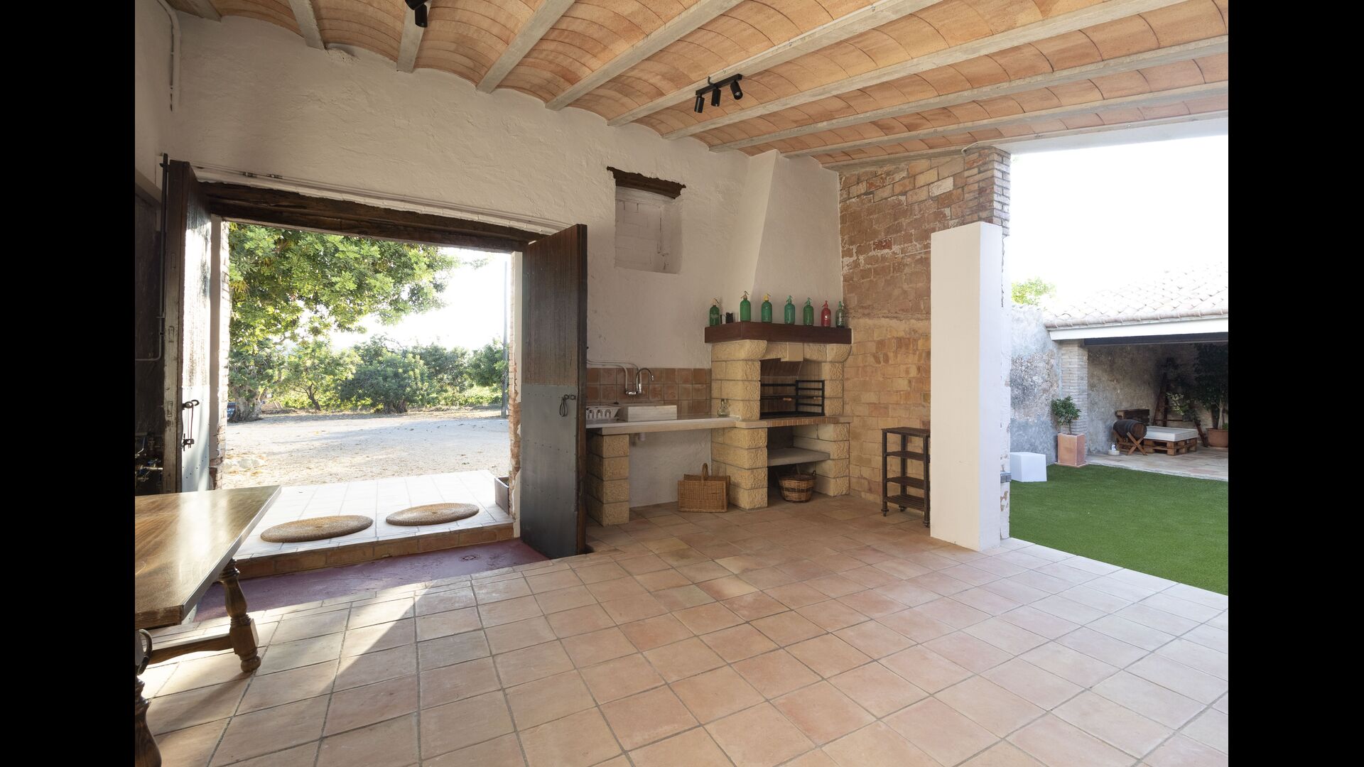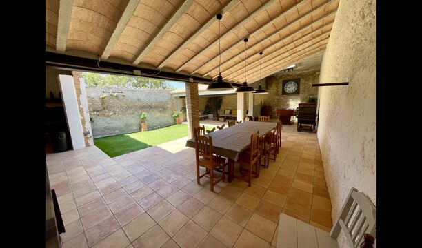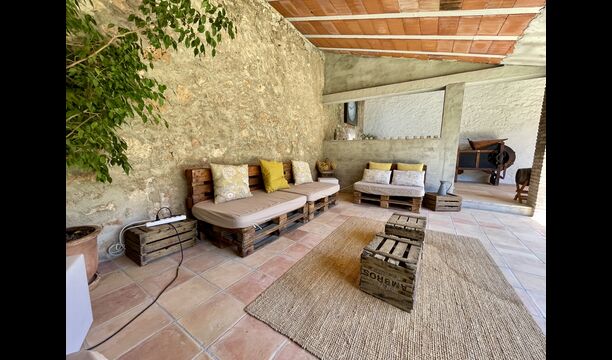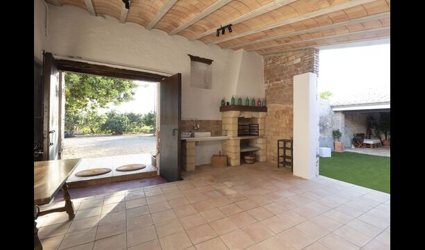 La casa té una terrassa coberta, perfecta per esmorzar i sopar al costat de les suaus rialles de les aigües de la piscina, que és bastant gran i inclou unes gandules. Tant si us refresqueu a la piscina, us relaxeu a les gandules o gaudiu d'unes tapes a la terrassa exterior, podreu contemplar el meravellós camp català . Una part de la raó per la qual Casa Moma està tan meravellosament aïllada són les 6 hectàrees de bosc i garrofers i 3 hectàrees > de vinyes i oliveres que envolten la propietat.