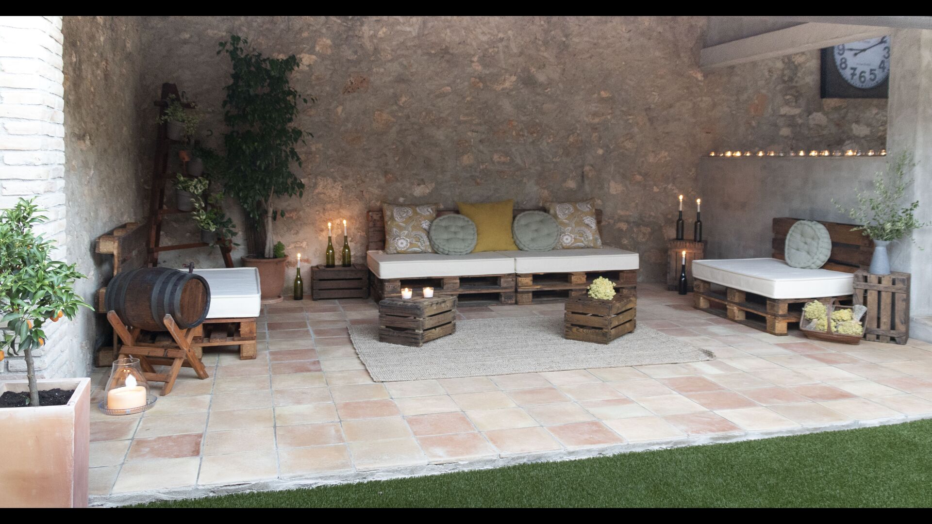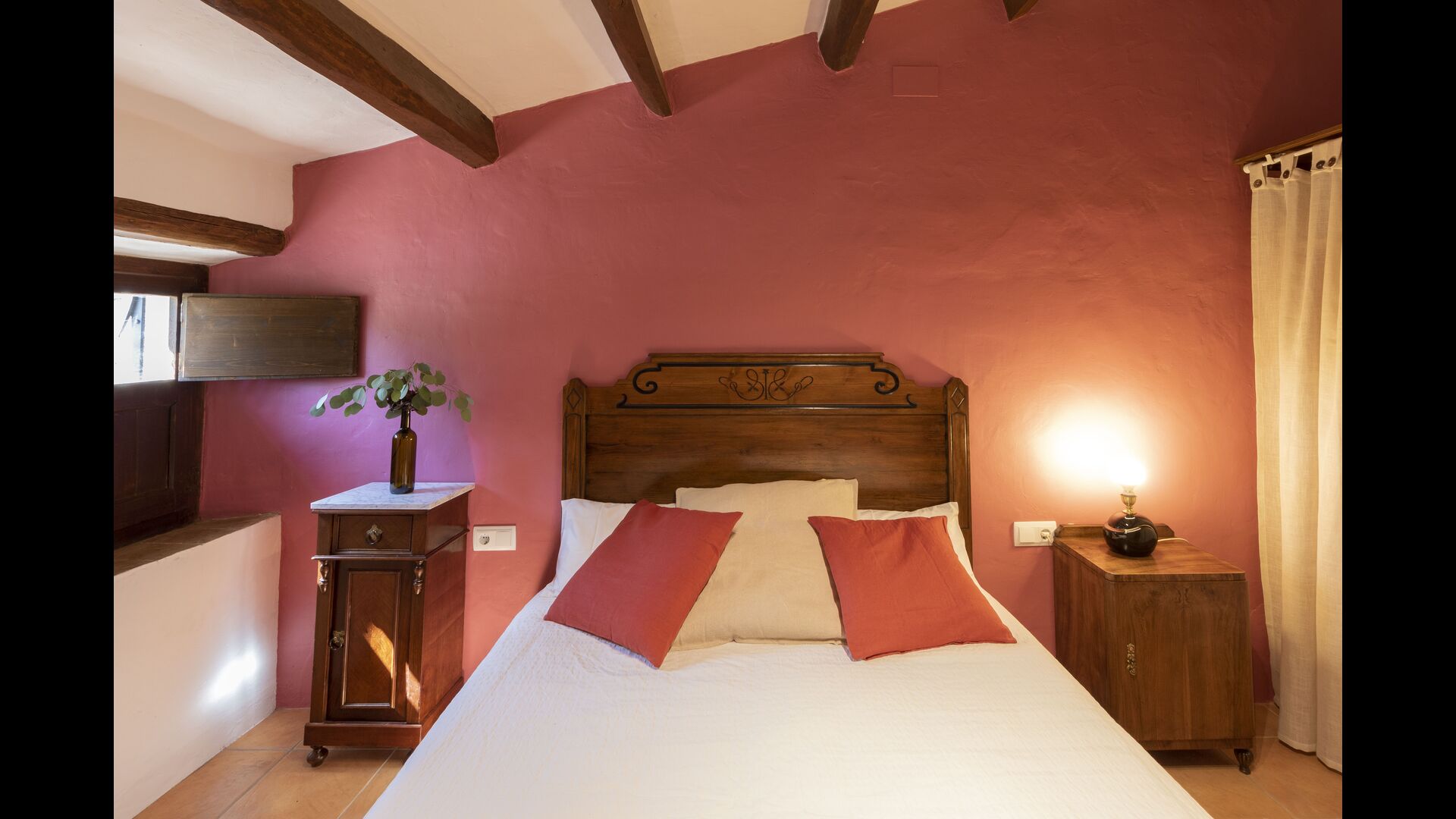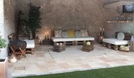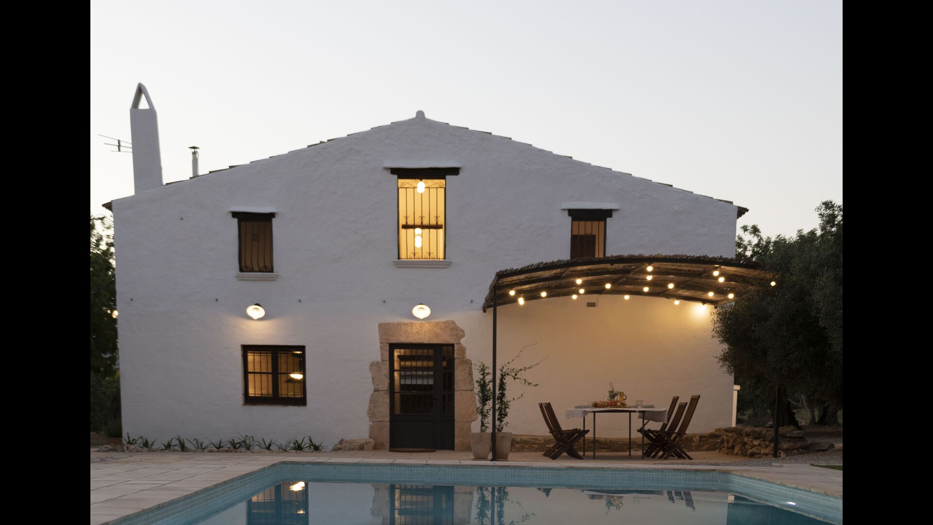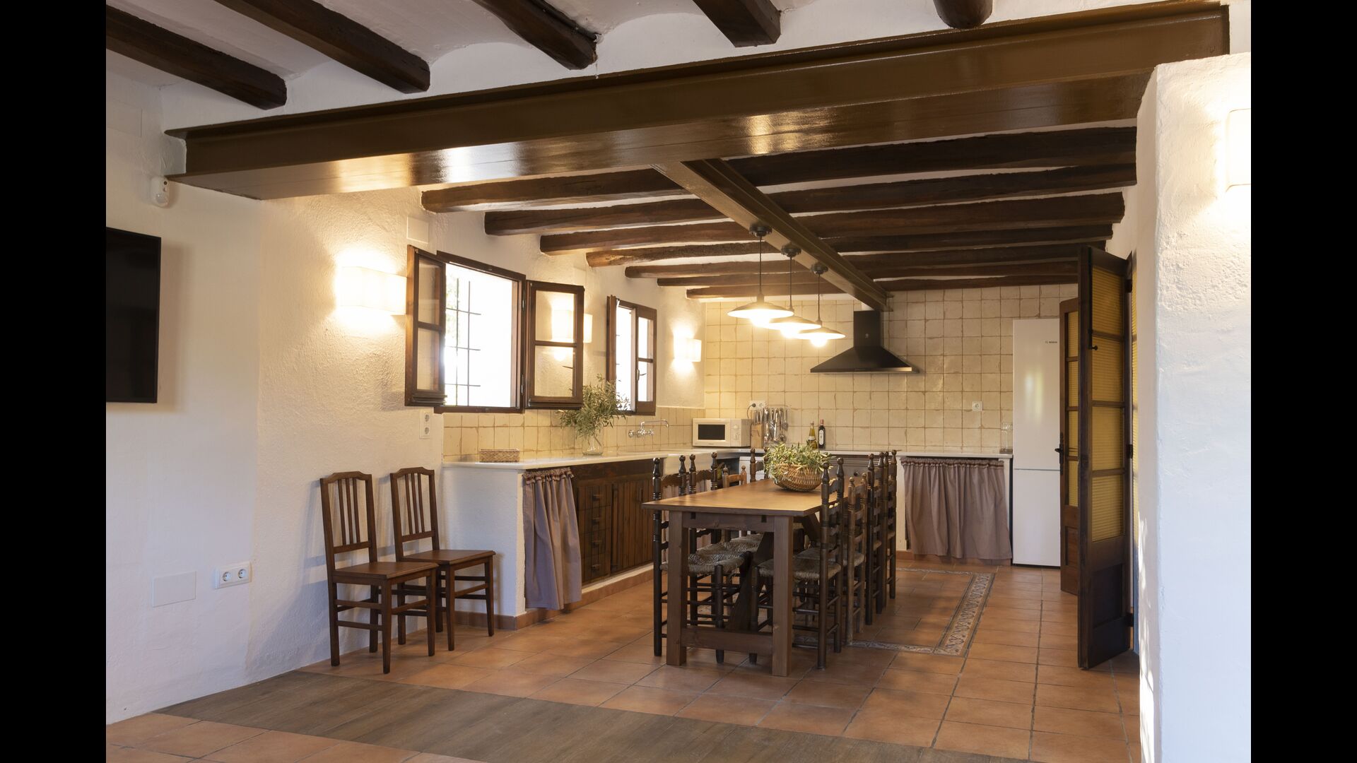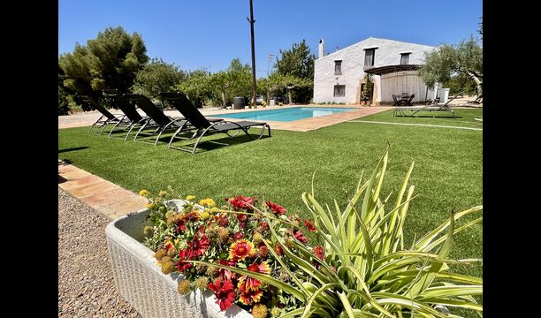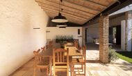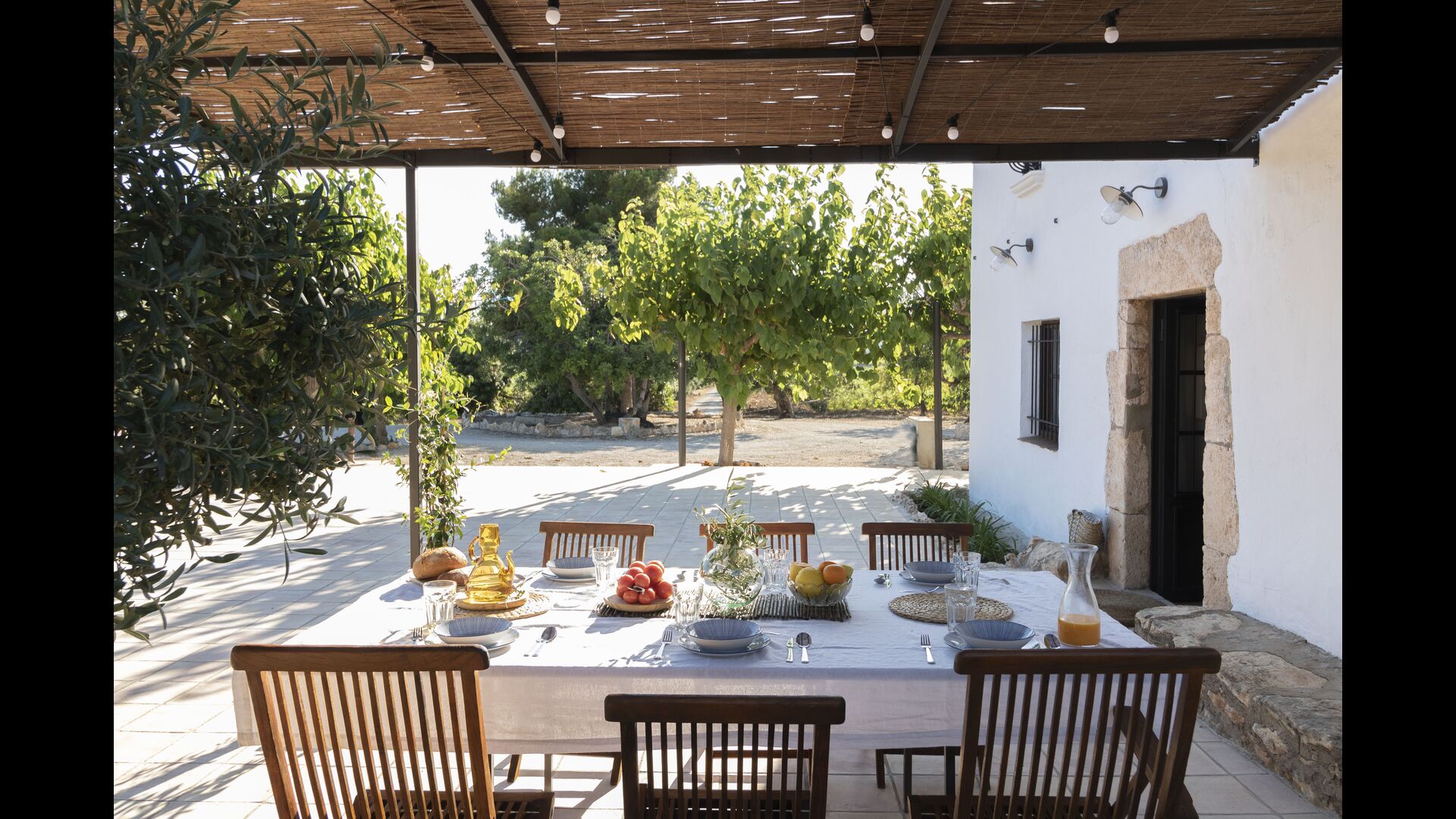 La casa té una terrassa coberta, perfecta per esmorzar i sopar al costat de les suaus rialles de les aigües de la piscina, que és bastant gran i inclou unes gandules. Tant si us refresqueu a la piscina, us relaxeu a les gandules o gaudiu d'unes tapes a la terrassa exterior, podreu contemplar el meravellós camp català . Una part de la raó per la qual Casa Moma està tan meravellosament aïllada són les 6 hectàrees de bosc i garrofers i 3 hectàrees > de vinyes i oliveres que envolten la propietat.