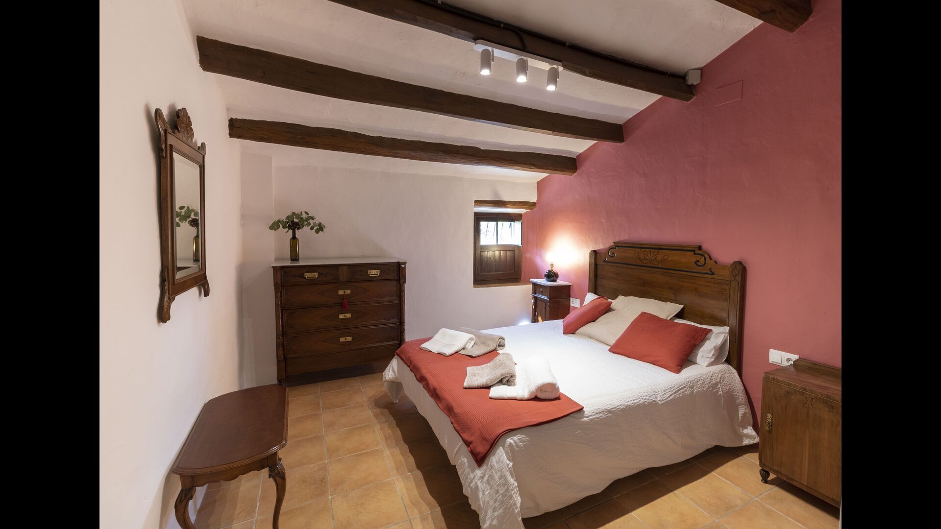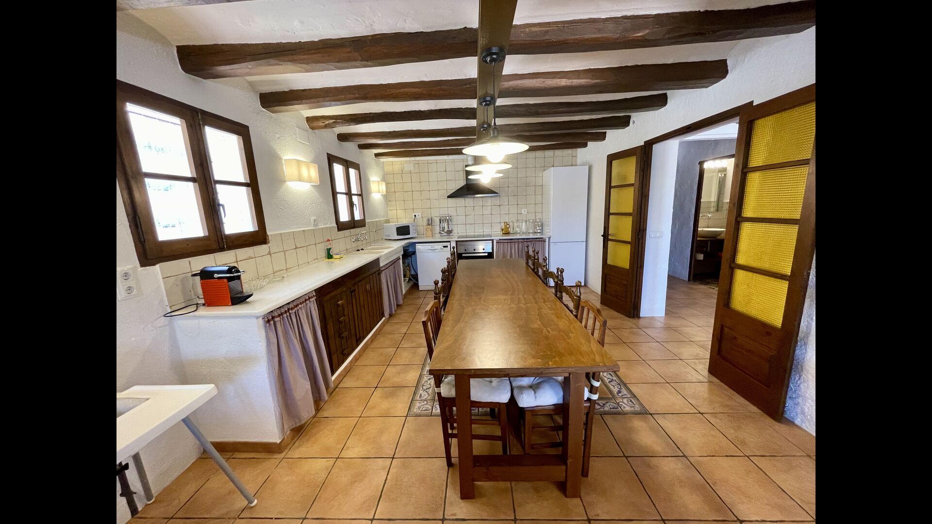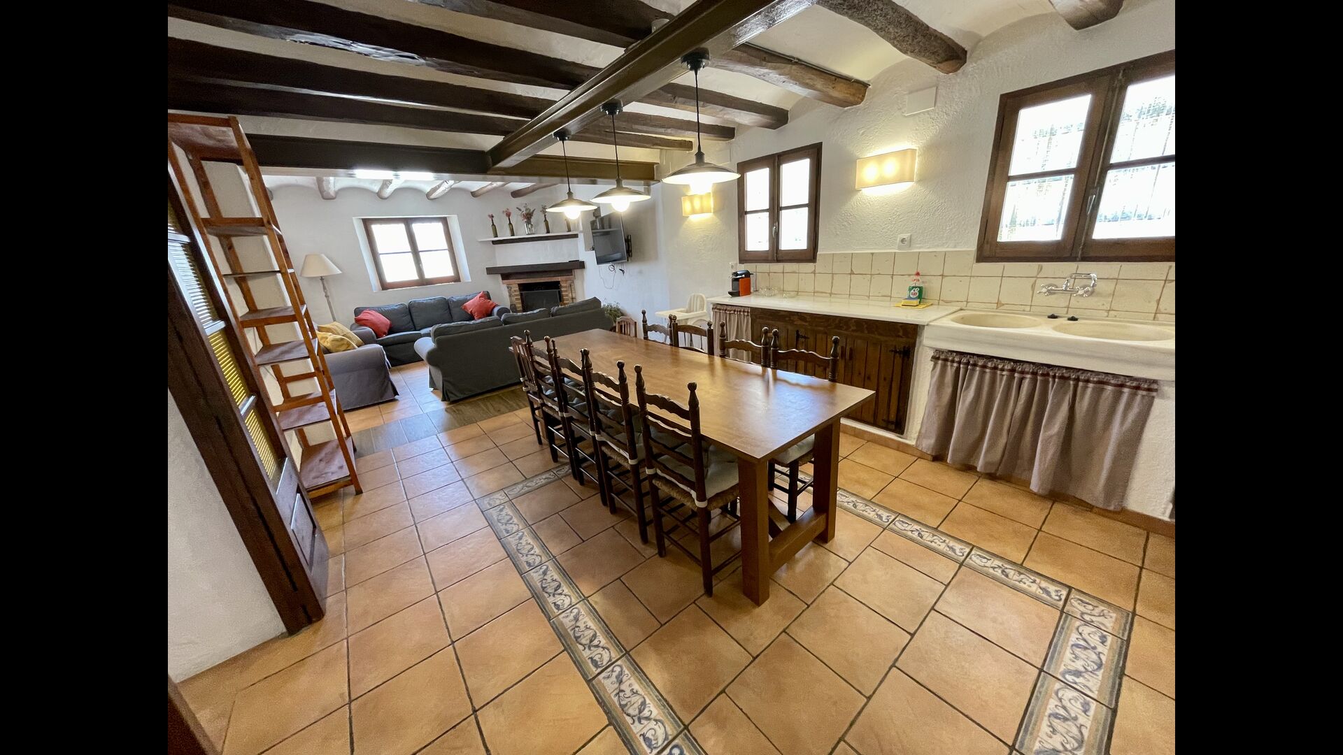 Hi ha dos pisos – la planta baixa i el primer pis. A la planta baixa hi trobareu una cuina/sala d'estar, 1 habitació doble i 1 bany. A la primera planta, hi trobareu un rebedor, 2 banys (1 dels 2 conté un banyera com a bé), 4 habitacions dobles i 1 dormitori amb dos llits individuals.