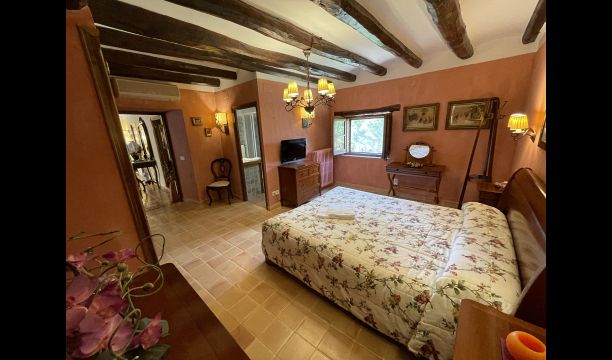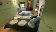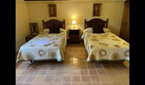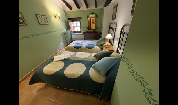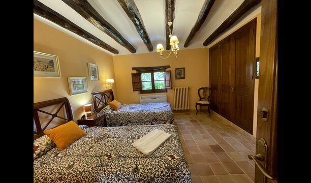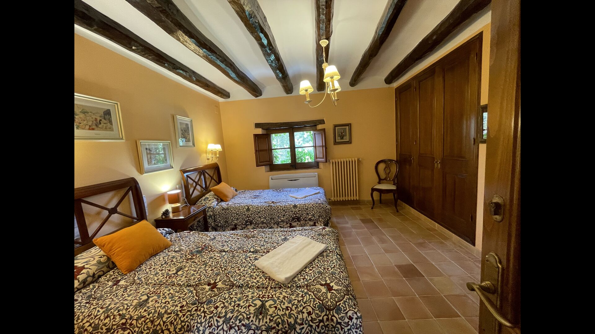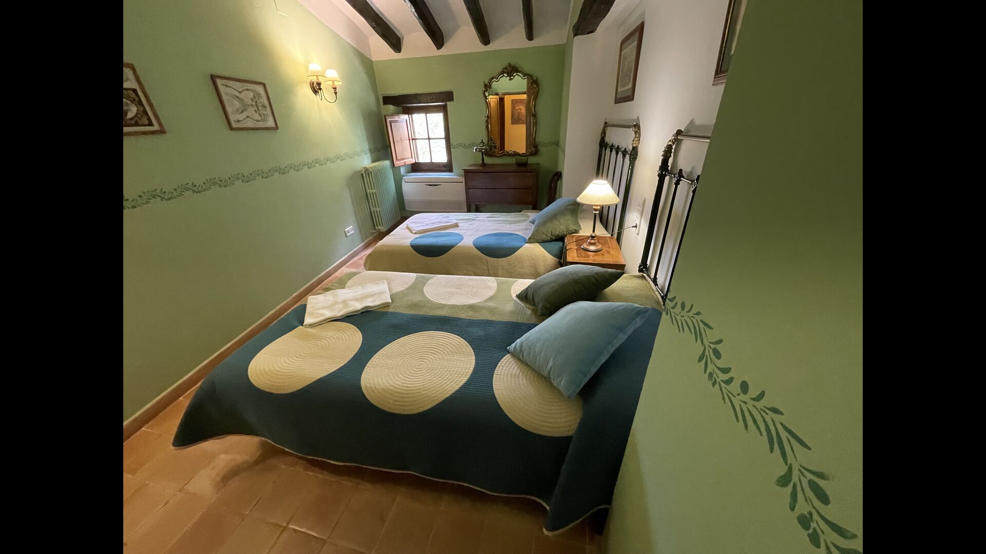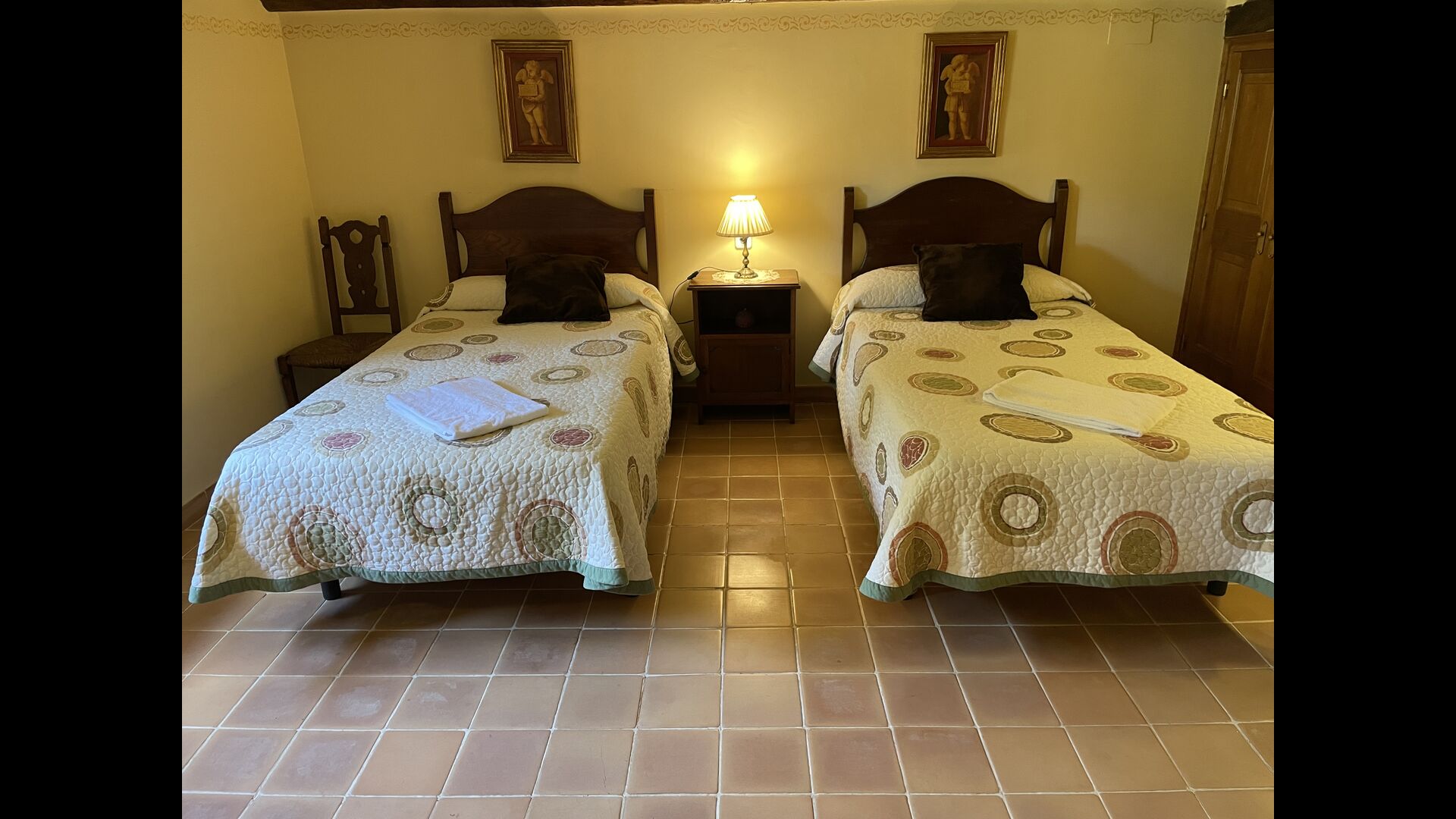 A la primera planta hi ha una habitació doble amb dos llits individuals (i habitació per a un llit supletori) i una altra habitació amb un llit de matrimoni. Hi ha un bany compartit amb dutxa entre les dues habitacions.