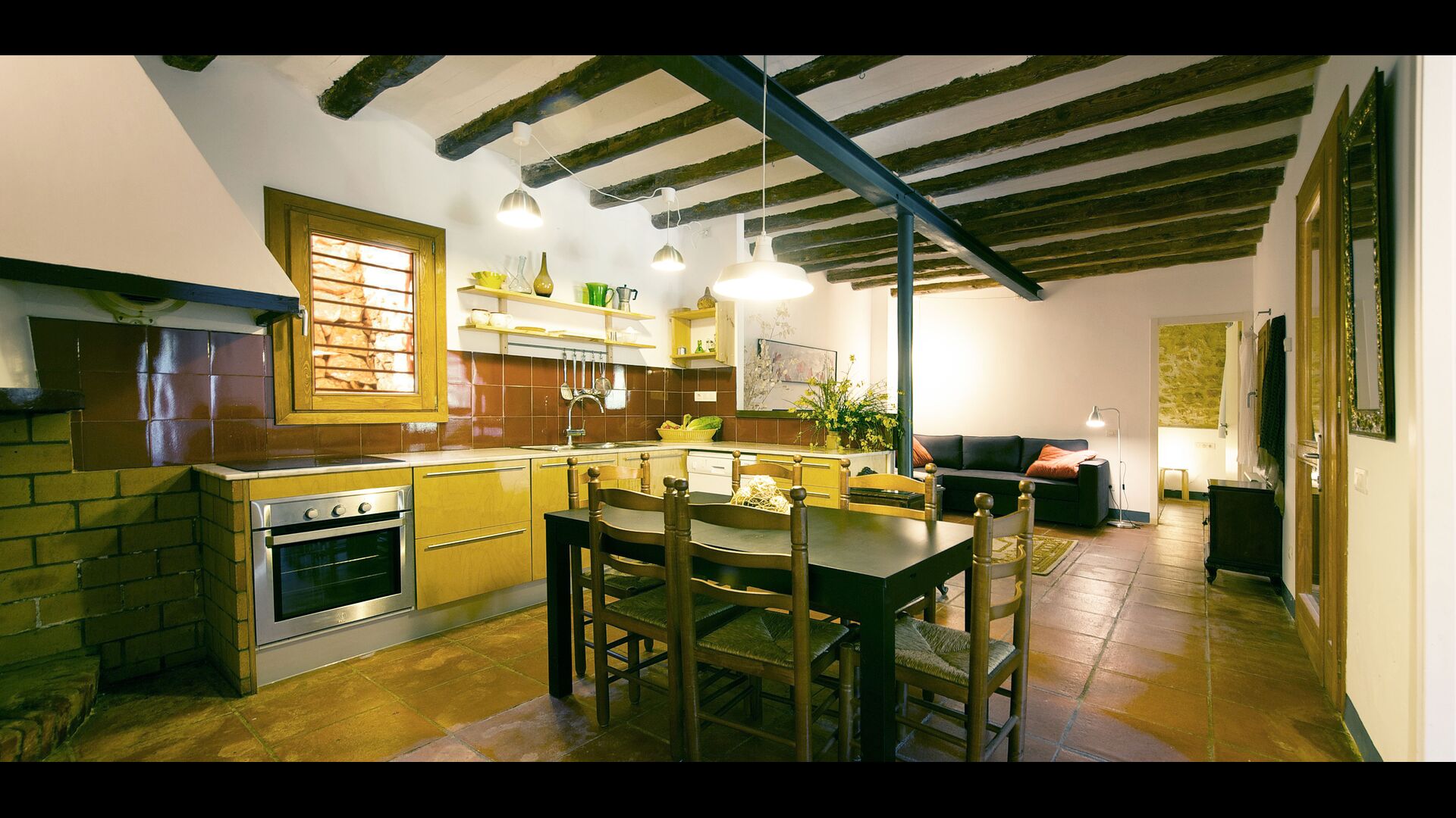 La casa de vacances consta de tres parts, cadascuna amb les seves pròpies entrades privades. Això fa de Casa Corbeña la casa perfecta per al gran grup de vacances, ja que encara tens possibilitats de privadesa. La masíade 450 m2 es troba a 2 km. per un camí de grava en una petita vall de les muntanyes de Prades, creat pel petit riu a poca distància de la casa.