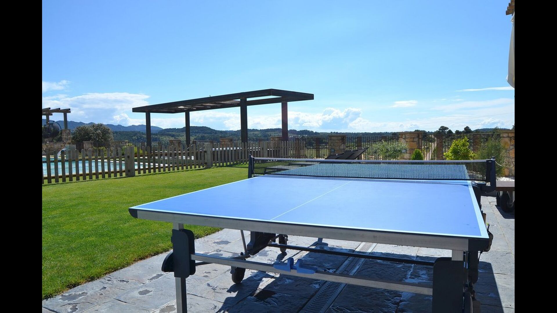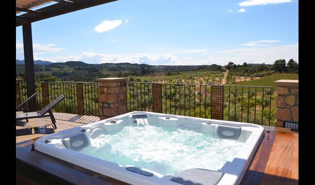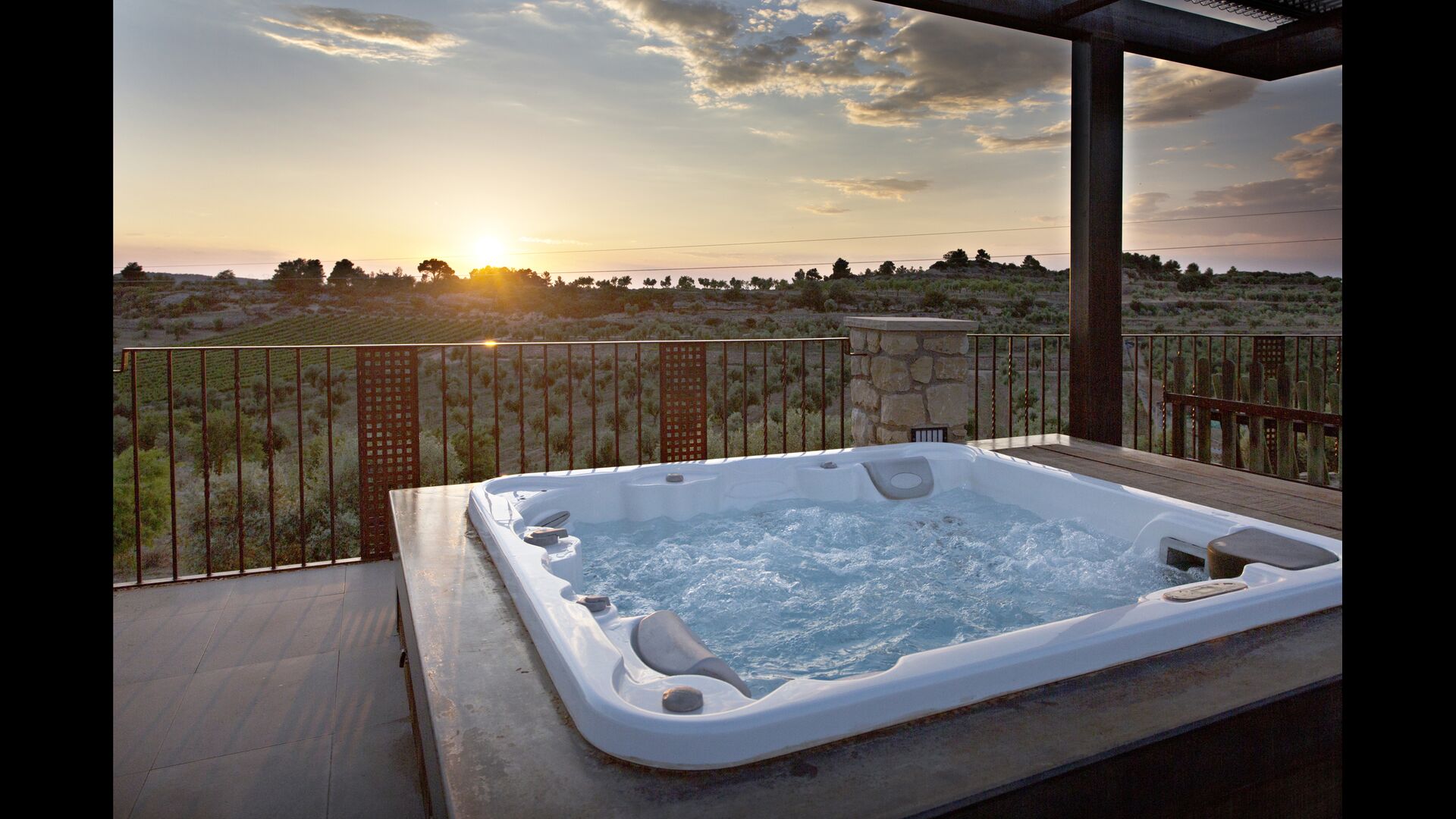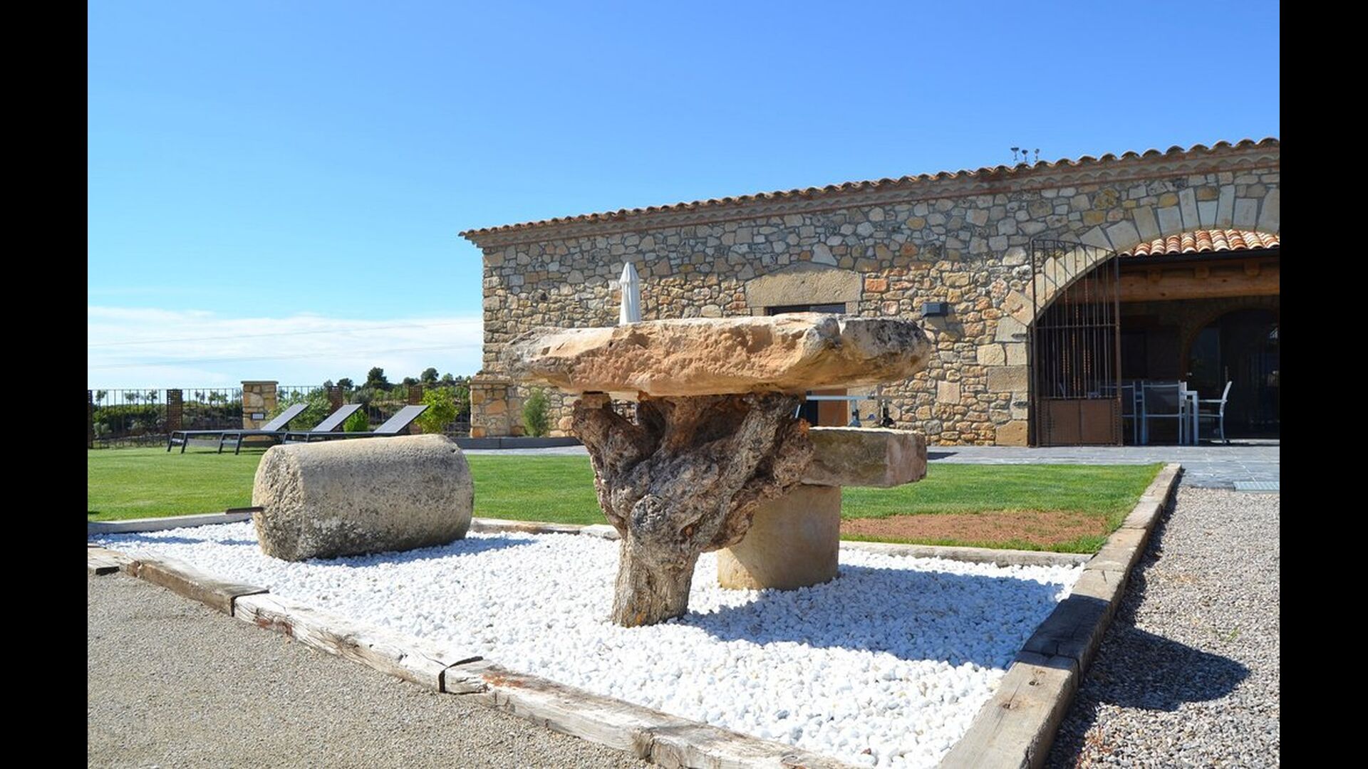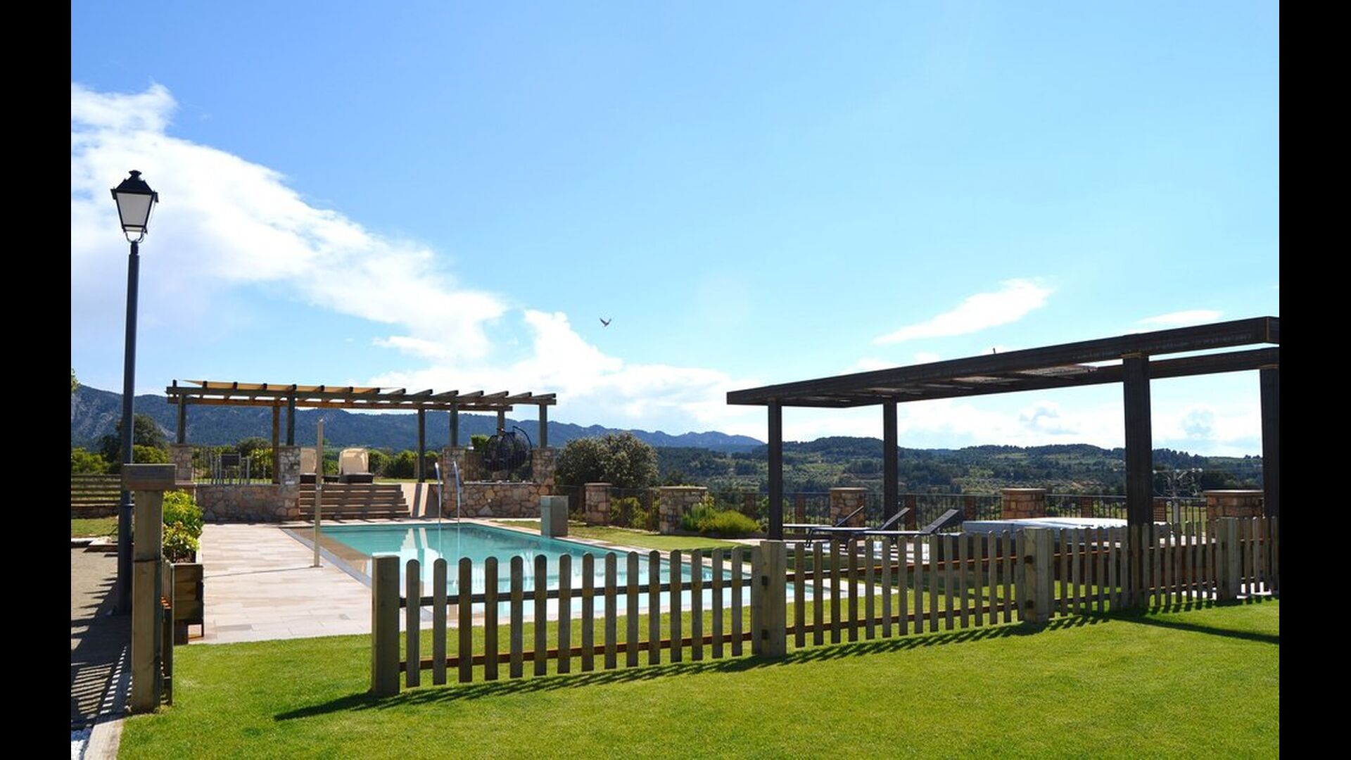 L'àrea del jardí és bastant fantàstica. La piscina de 16 metres de longitud es troba al centre, i amb la seva construcció única, satisfarà a tota la família: els primers 4 m són una piscina poc profunda per als petits del grup de vacances. L'altre extrem és una piscina de 8 m de longitud i més profunda per als adults. En aquest sentit, hi ha una mena de cascada. A més, la piscina està tancada, que és un gran alleujament, ja que no haureu de vigilar els nens més petits tot el temps. La piscina és un lloc ideal per relaxar-se o refrescar-se durant els dies càlids de Catalunya i, com no n'hi ha prou, també hi ha una banyera d'hidromassatge (jacuzzi) al costat de la piscina. Des d'aquí, hi ha una vista espectacular sobre els camps vinícoles, d'olivera i d'ametllers.