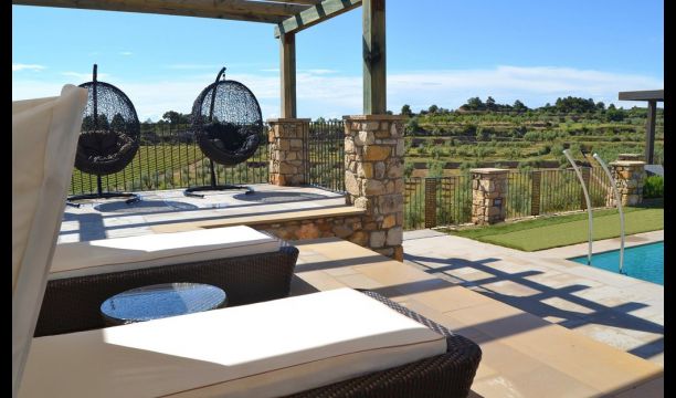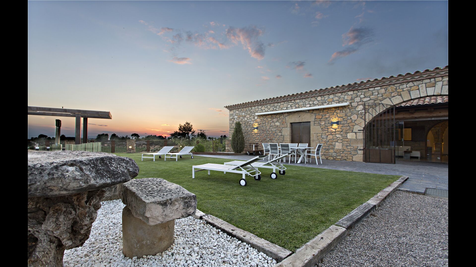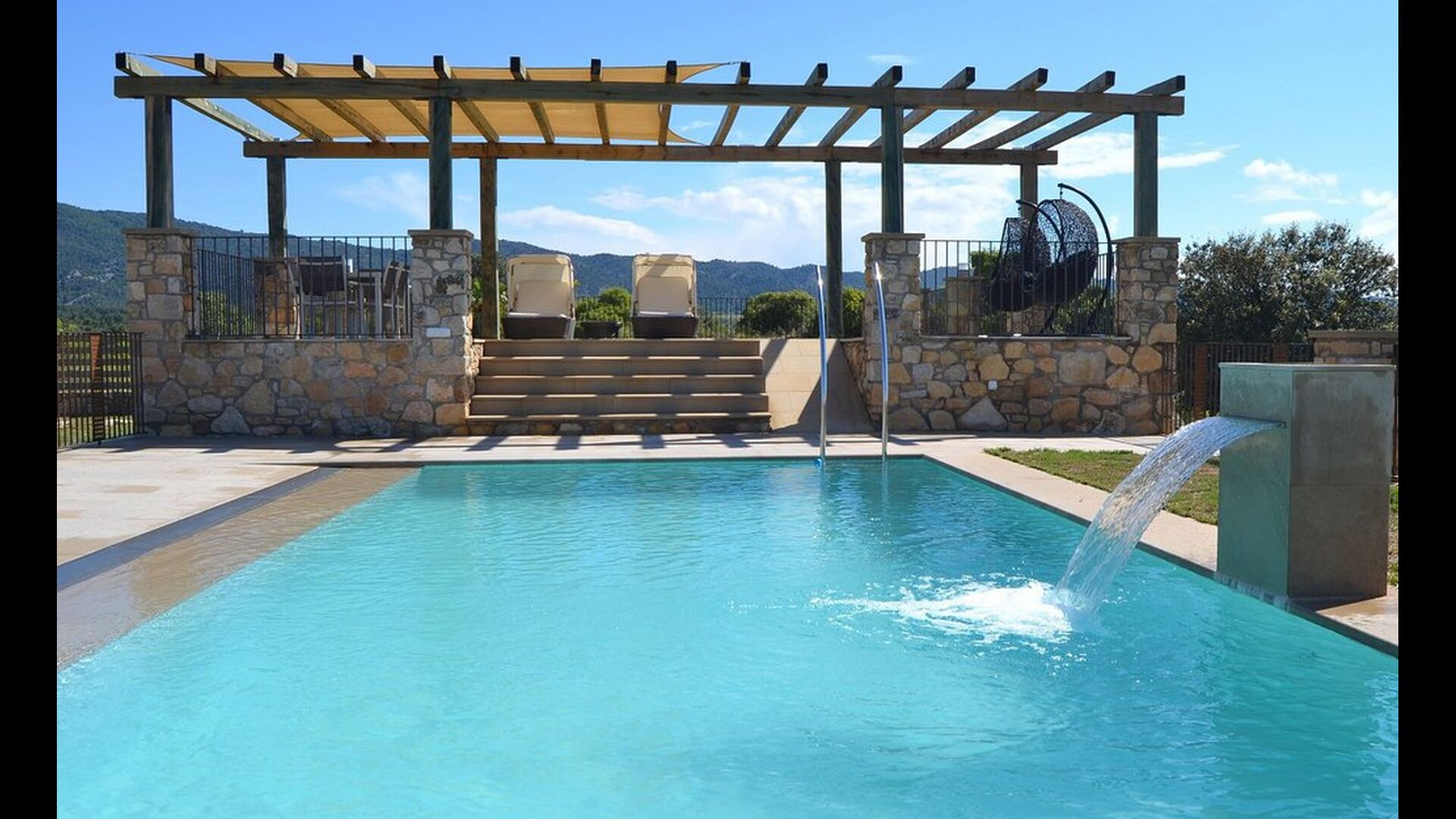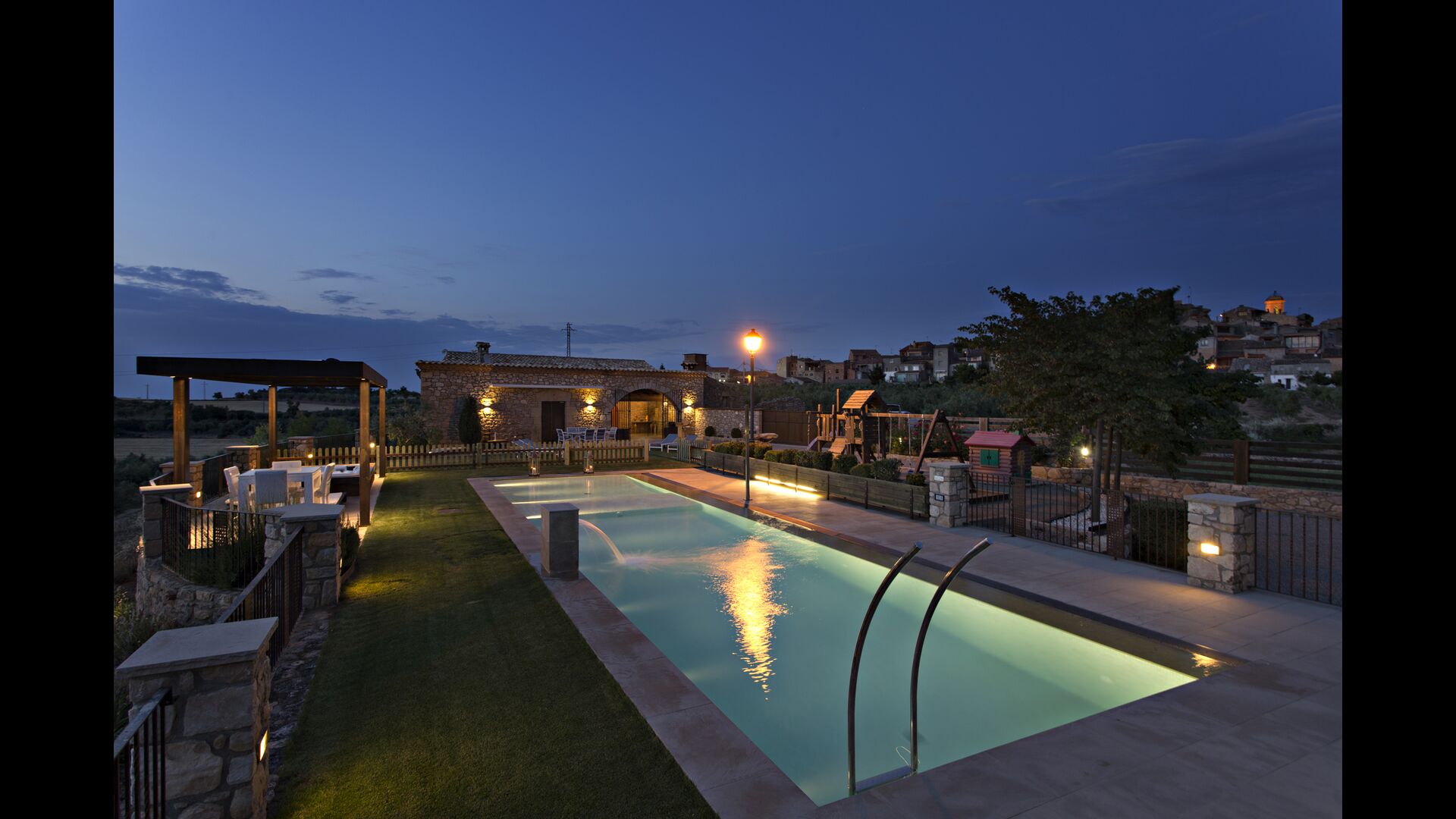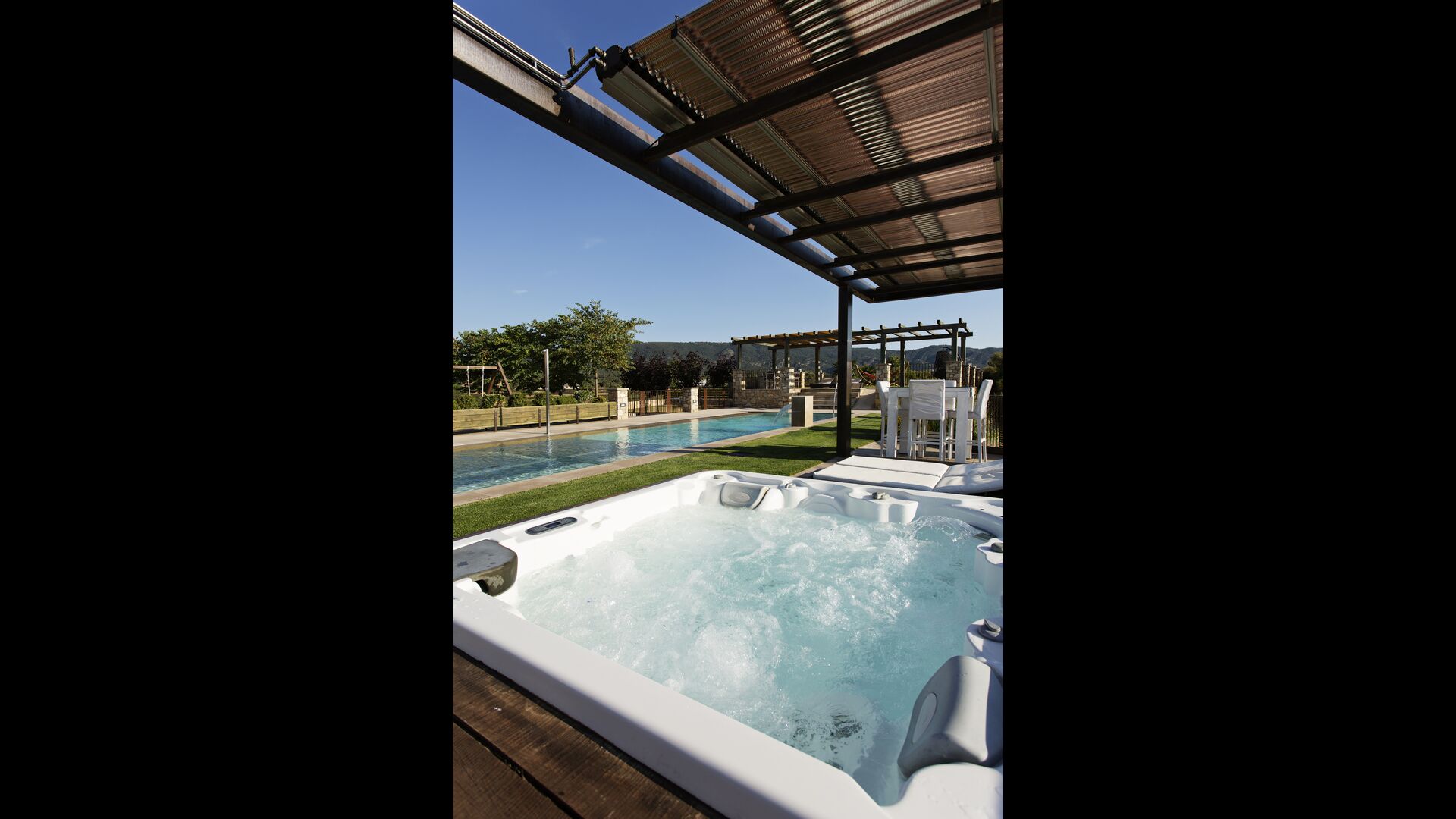 L'àrea del jardí és bastant fantàstica. La piscina de 16 metres de longitud es troba al centre, i amb la seva construcció única, satisfarà a tota la família: els primers 4 m són una piscina poc profunda per als petits del grup de vacances. L'altre extrem és una piscina de 8 m de longitud i més profunda per als adults. En aquest sentit, hi ha una mena de cascada. A més, la piscina està tancada, que és un gran alleujament, ja que no haureu de vigilar els nens més petits tot el temps. La piscina és un lloc ideal per relaxar-se o refrescar-se durant els dies càlids de Catalunya i, com no n'hi ha prou, també hi ha una banyera d'hidromassatge (jacuzzi) al costat de la piscina. Des d'aquí, hi ha una vista espectacular sobre els camps vinícoles, d'olivera i d'ametllers.