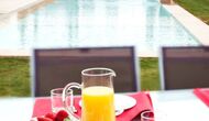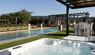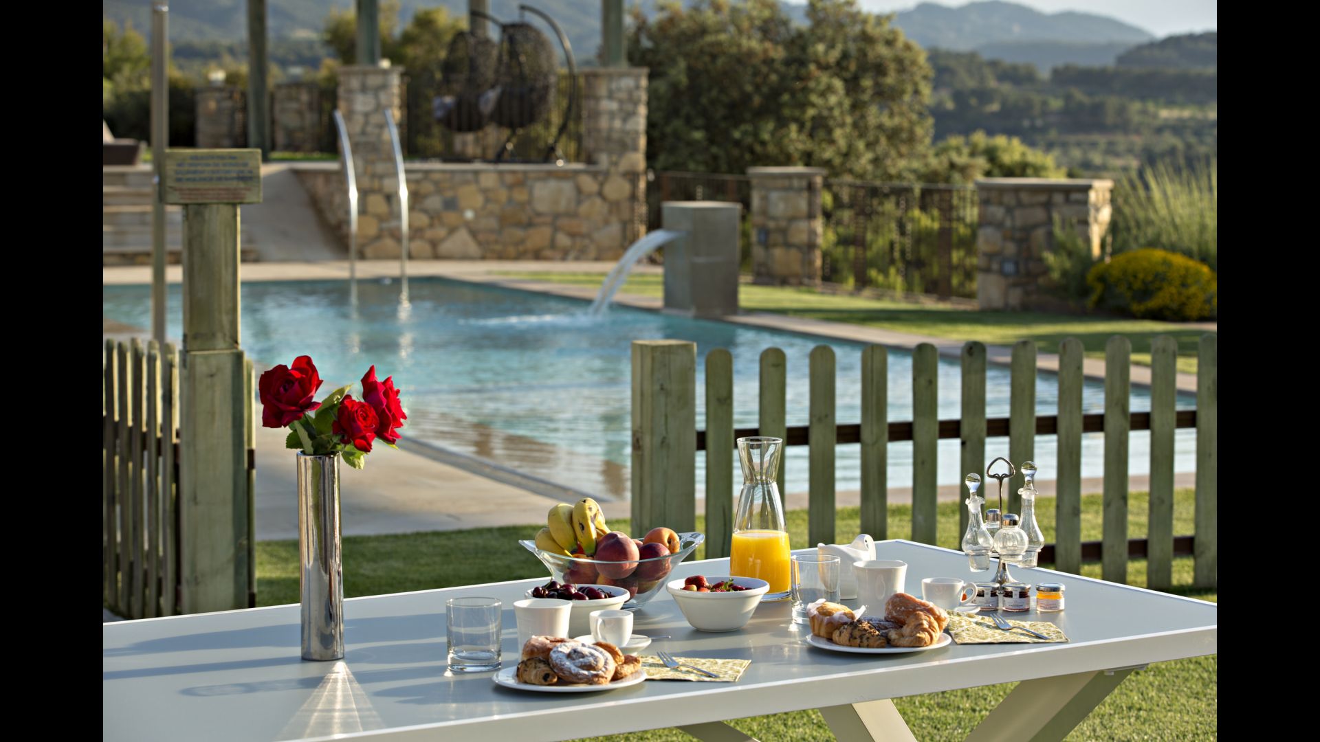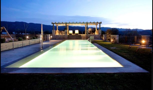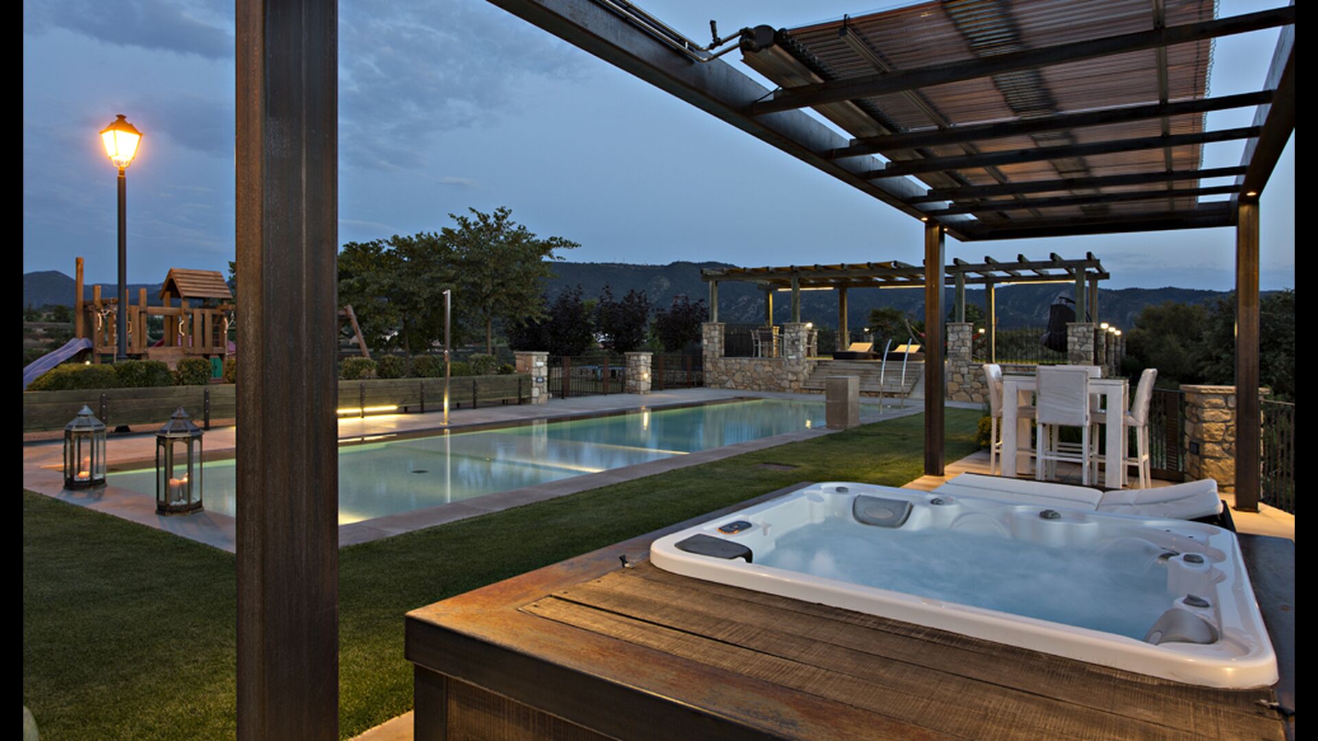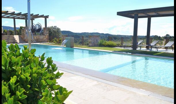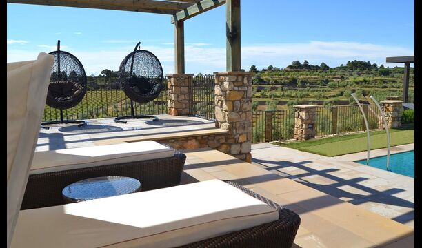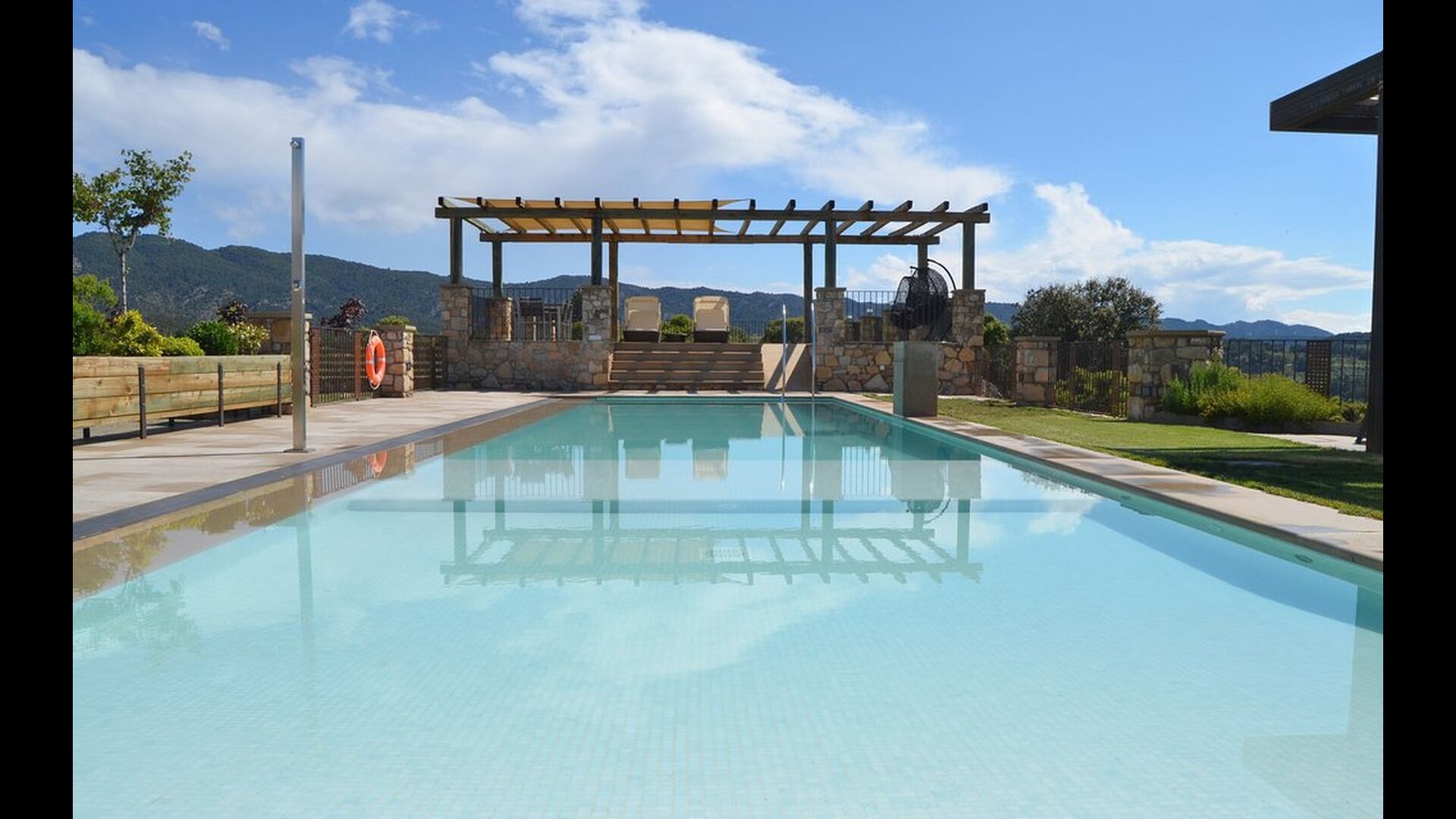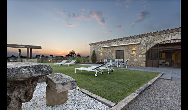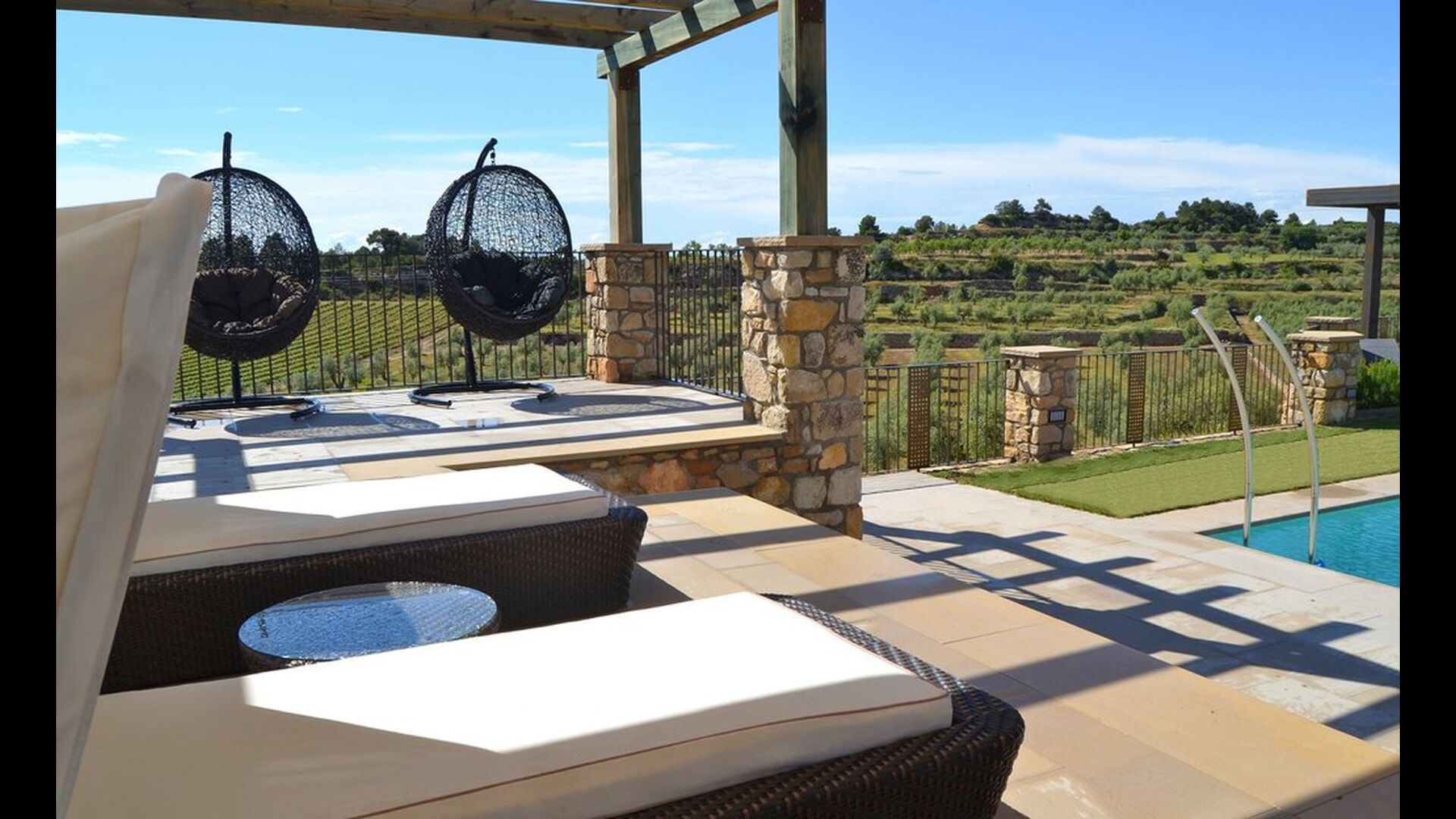 L'àrea del jardí és bastant fantàstica. La piscina de 16 metres de longitud es troba al centre, i amb la seva construcció única, satisfarà a tota la família: els primers 4 m són una piscina poc profunda per als petits del grup de vacances. L'altre extrem és una piscina de 8 m de longitud i més profunda per als adults. En aquest sentit, hi ha una mena de cascada. A més, la piscina està tancada, que és un gran alleujament, ja que no haureu de vigilar els nens més petits tot el temps. La piscina és un lloc ideal per relaxar-se o refrescar-se durant els dies càlids de Catalunya i, com no n'hi ha prou, també hi ha una banyera d'hidromassatge (jacuzzi) al costat de la piscina. Des d'aquí, hi ha una vista espectacular sobre els camps vinícoles, d'olivera i d'ametllers.