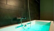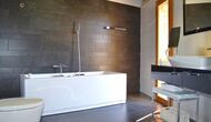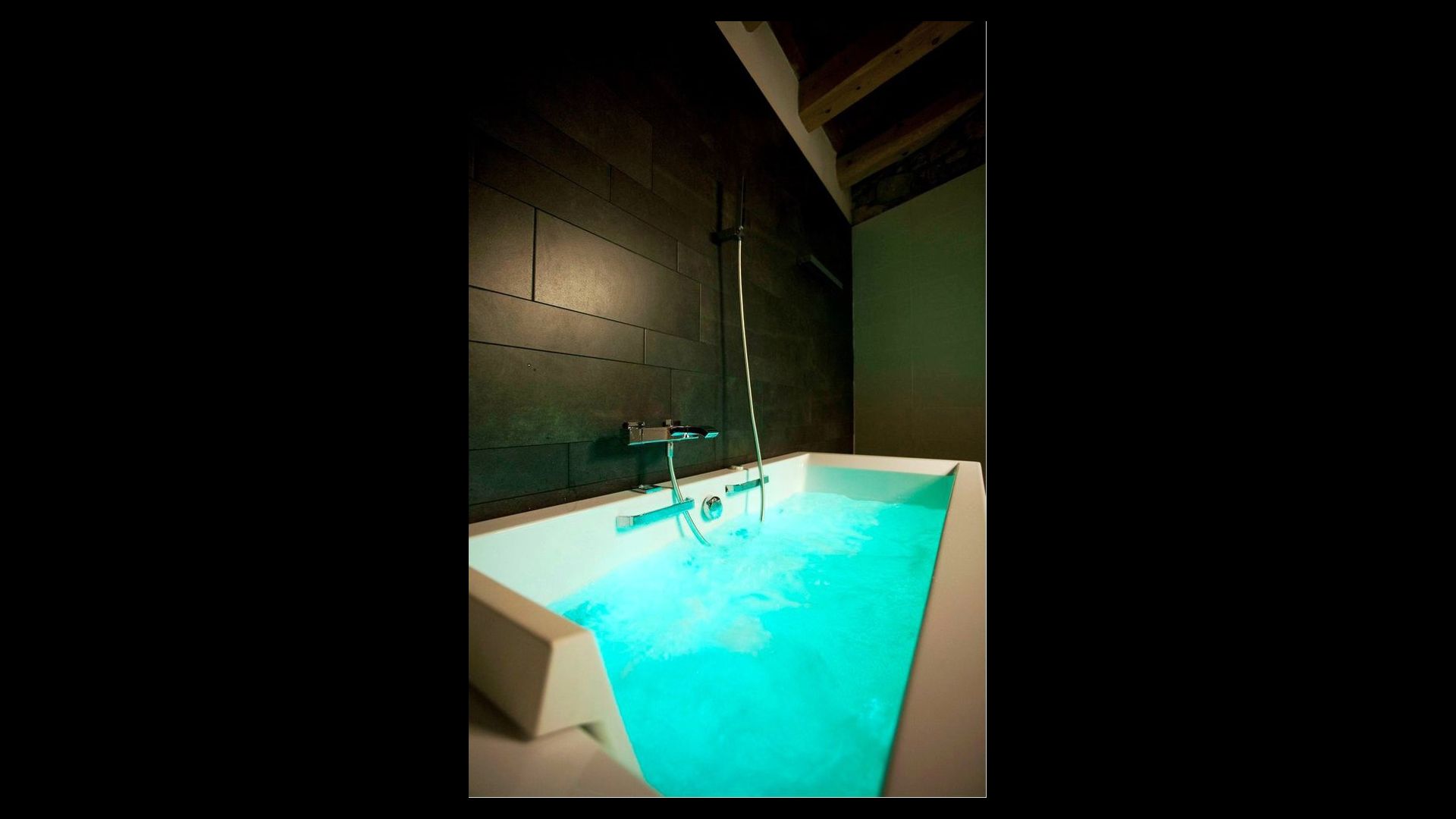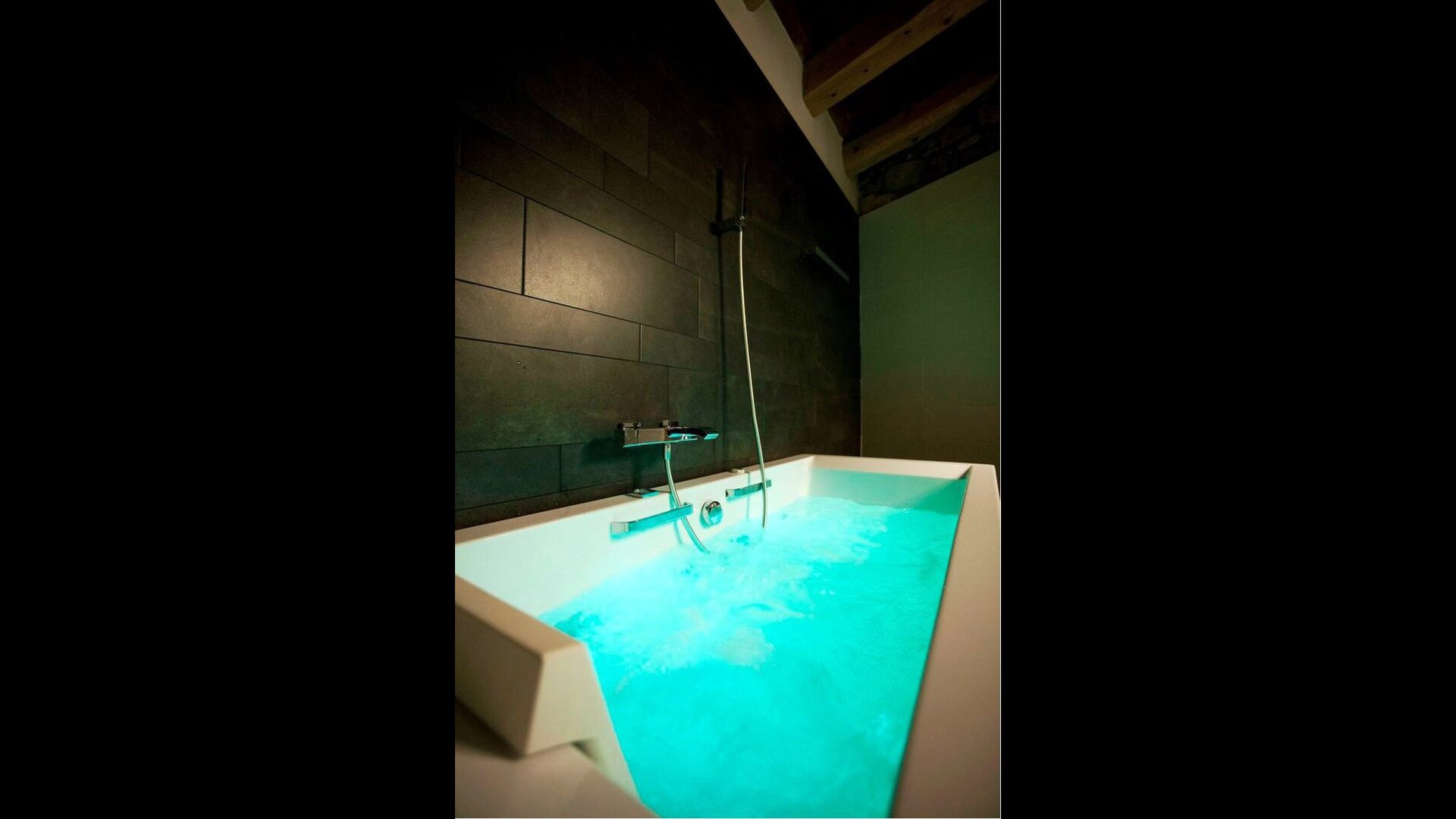 Hi ha un "dormitori principal" amb un llit doble de 180 cm i un gran bany privat, amb dutxa amb "hidromassatge" i una banyera amb "teràpia de color". Aquí podeu canviar el color de la banyera. També hi ha altres dos dormitoris, un amb llit de matrimoni i l'altre amb dos llits individuals. Comparteixen un bany molt modern i molt confortable amb molts detalls.