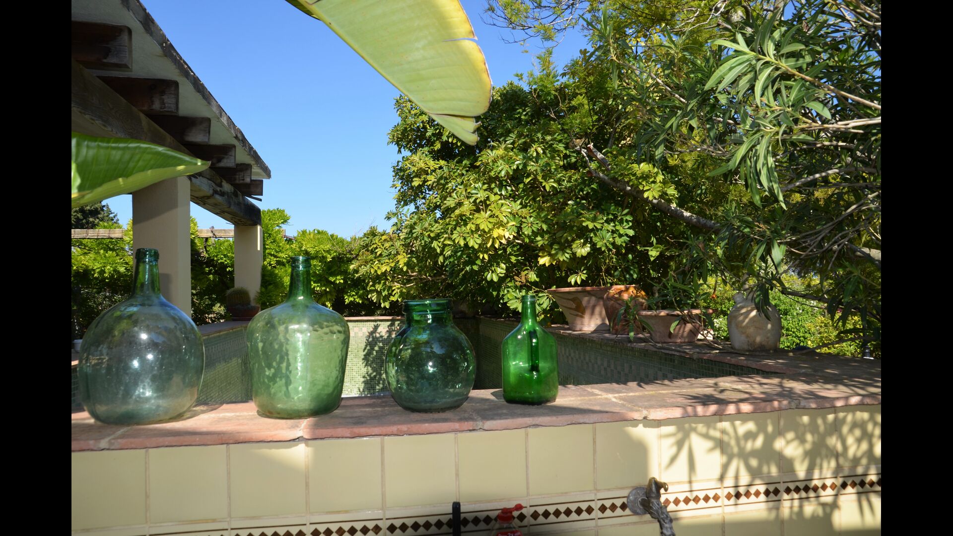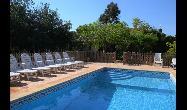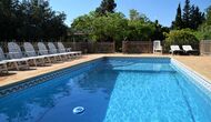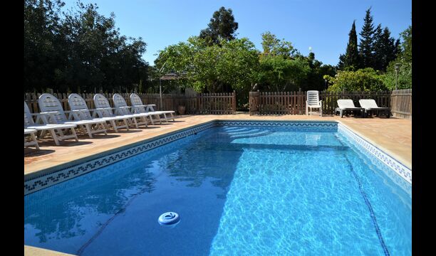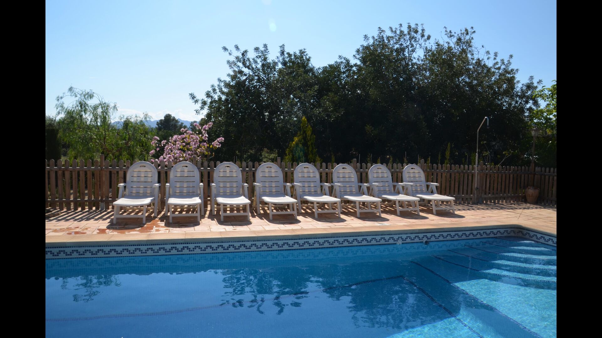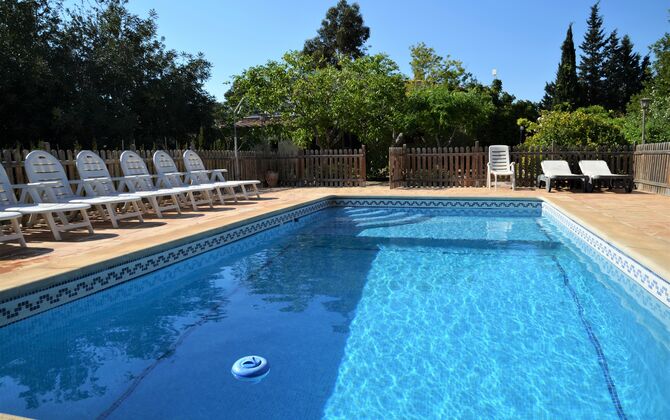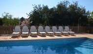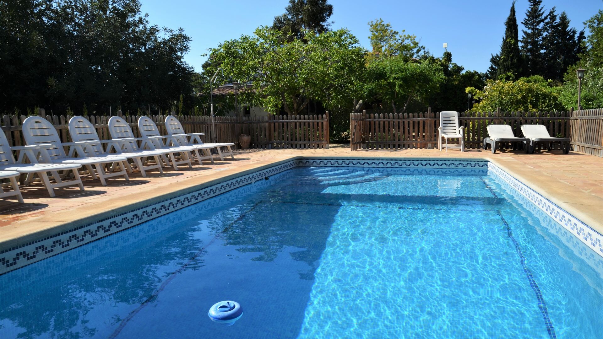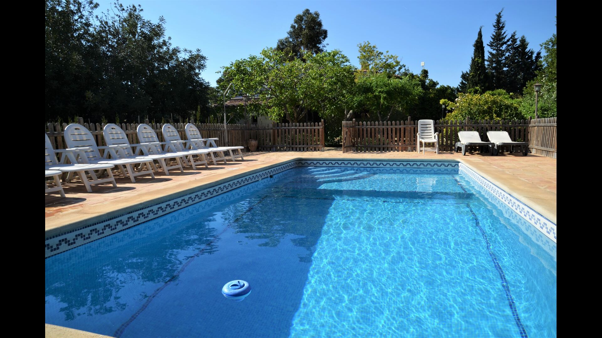 Piscina privada i vallada (porta d'entrada amb pestell per a evitar els accidents infantils), rodejada de gran terrassa amb 11 gandules, para-sols, dutxa i il·luminació nocturna.