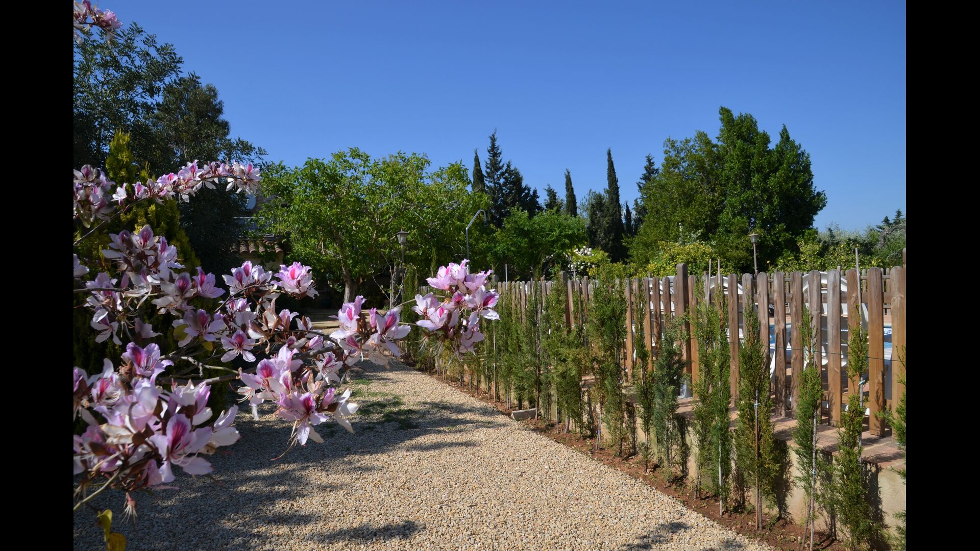La propietat está totalment vallada, accedint-se a ella a través d'una gran porta de ferro que resta sempre tancada, per a que els més petits no puguin sortir de les instal·lacions .. i això proporciona molta tranquilitat als pares... sobretot a l'hora de jugar i montar en bicicleta!!