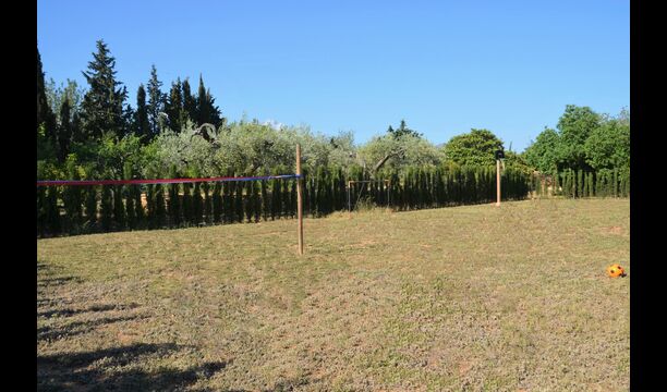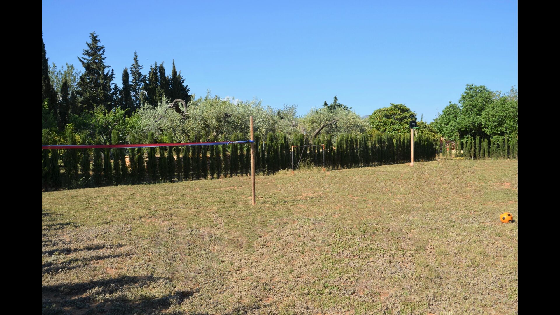 Els més petits disposen d'un gran camp de joc, equipat amb porteries de fútbol, canxa de bàsquet i xarxa de badminton... Genial per a cremar molta adrenalina!! amés proporcionem les pilotes i les raquetes per a tots els jocs.!!