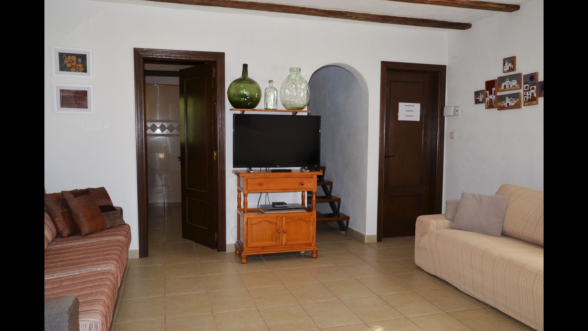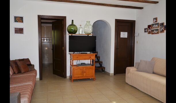 Saló amb tres grans sofàs (3, 4 i 2 places), TV pantalla plana con satèl·lit, reproductor DVD amb videotèca infantil (en español) i Internet wifi.