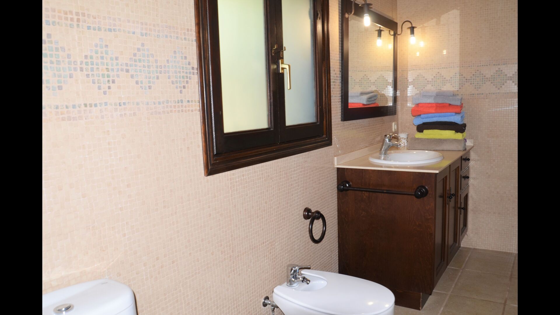 2 banys complets amb dutxa i un bany auxiliar (wc + rentamans)