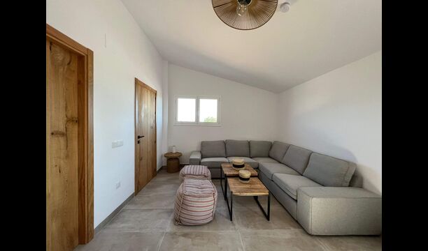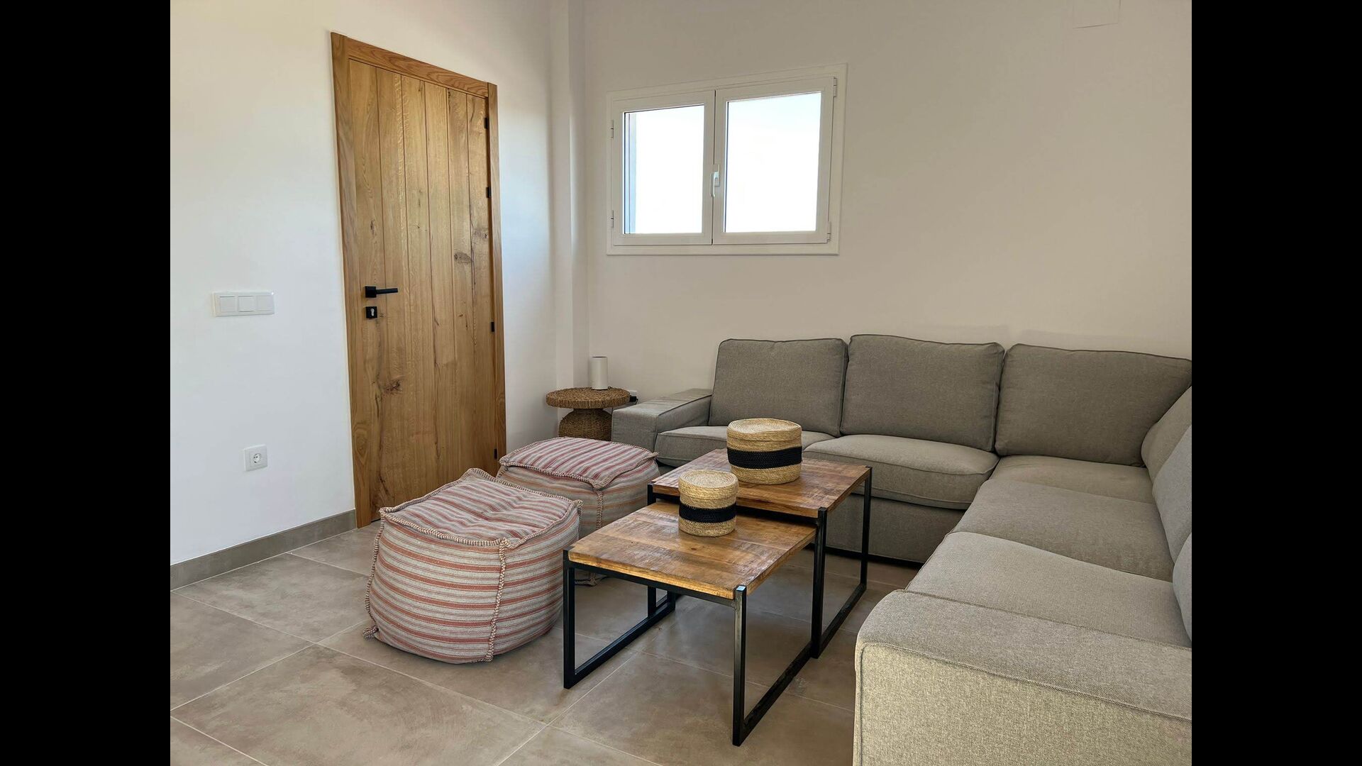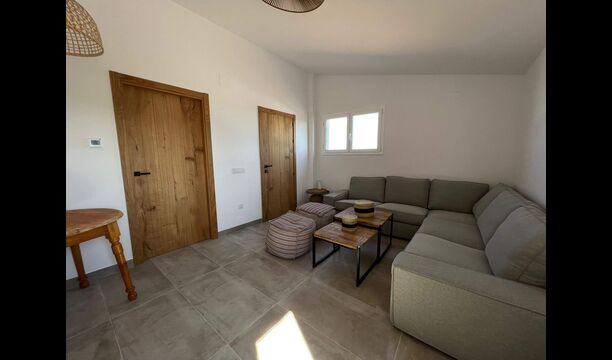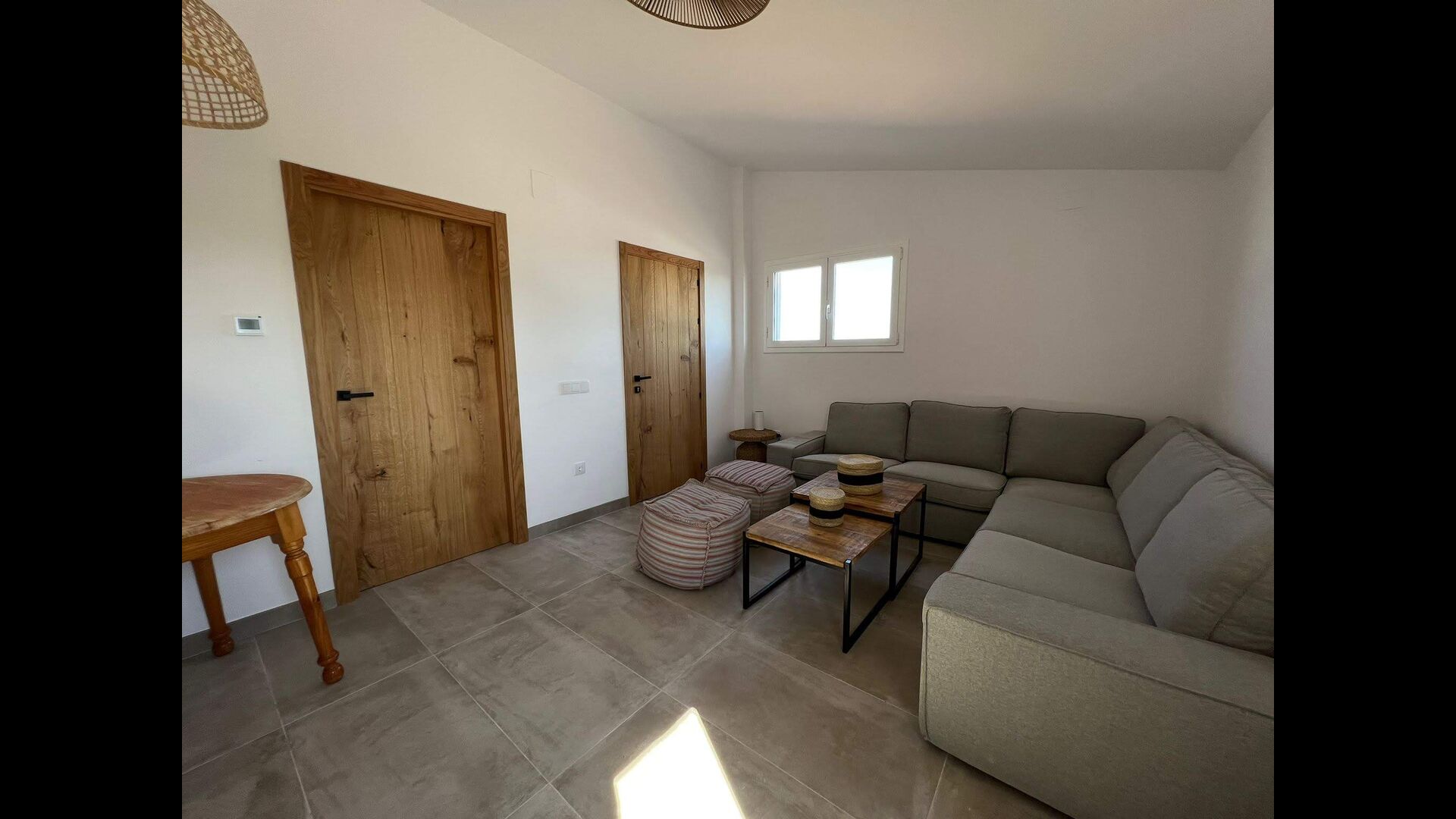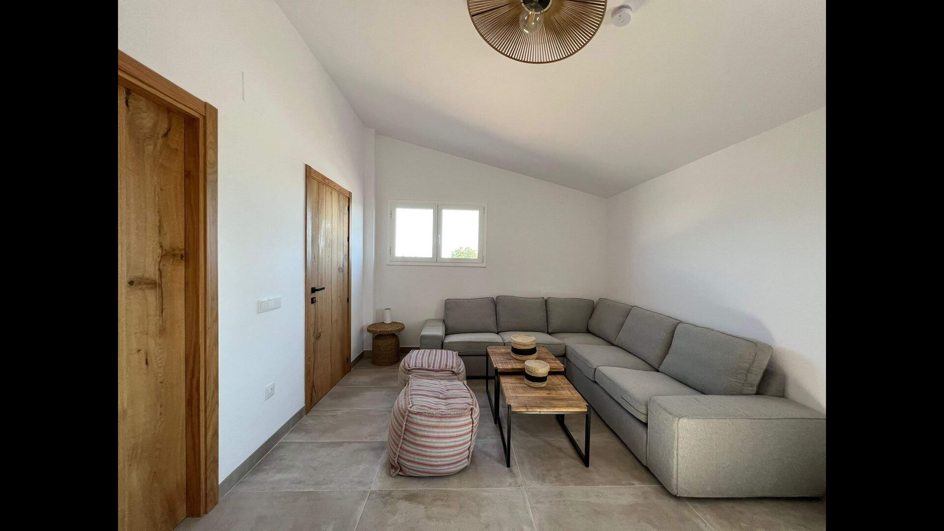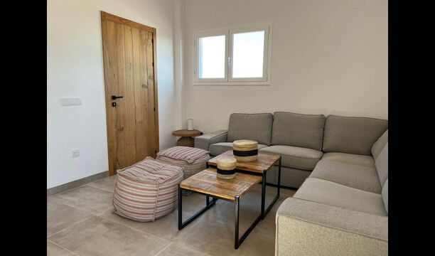 A la primera planta, hi trobareu una sala d'estar addicional, amb un altre sofà i unes taules petites, ideals per relaxar-vos i gaudir d'un bon llibre després d'un llarg dia al camp.