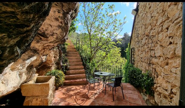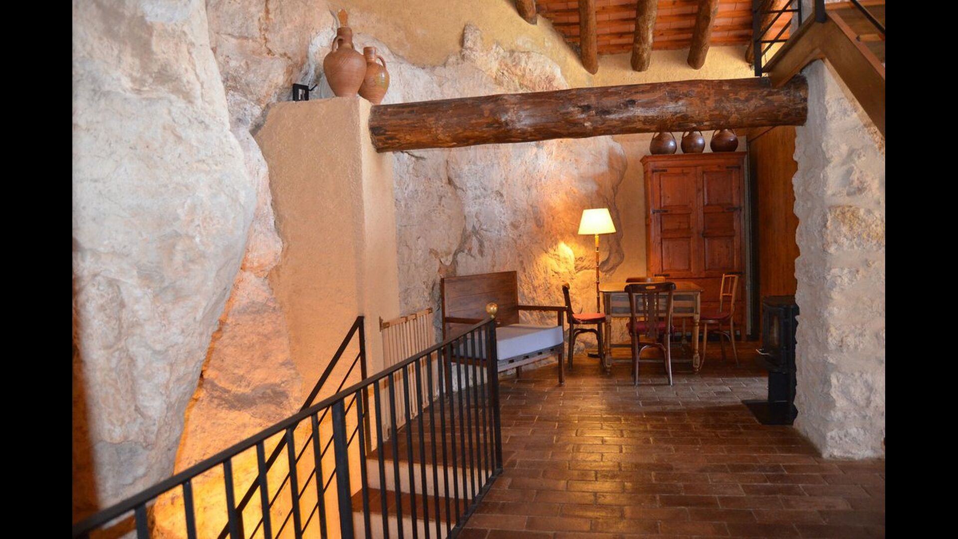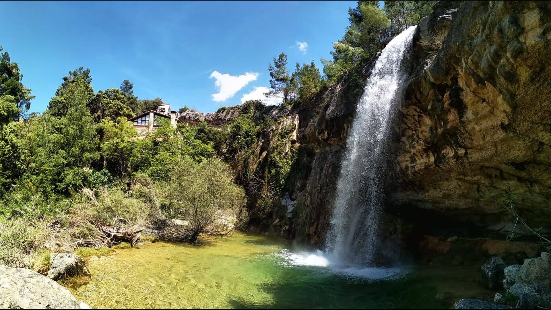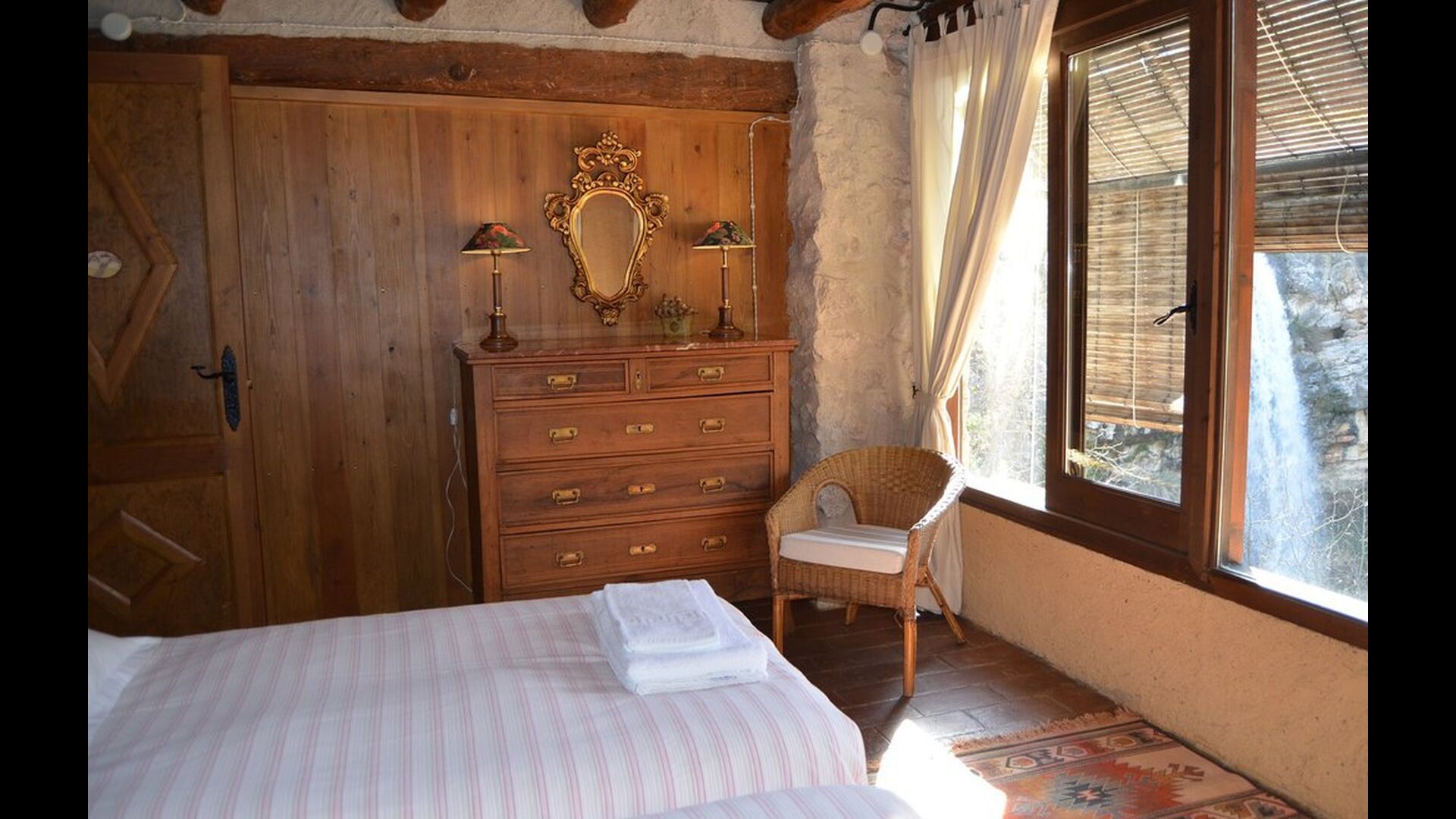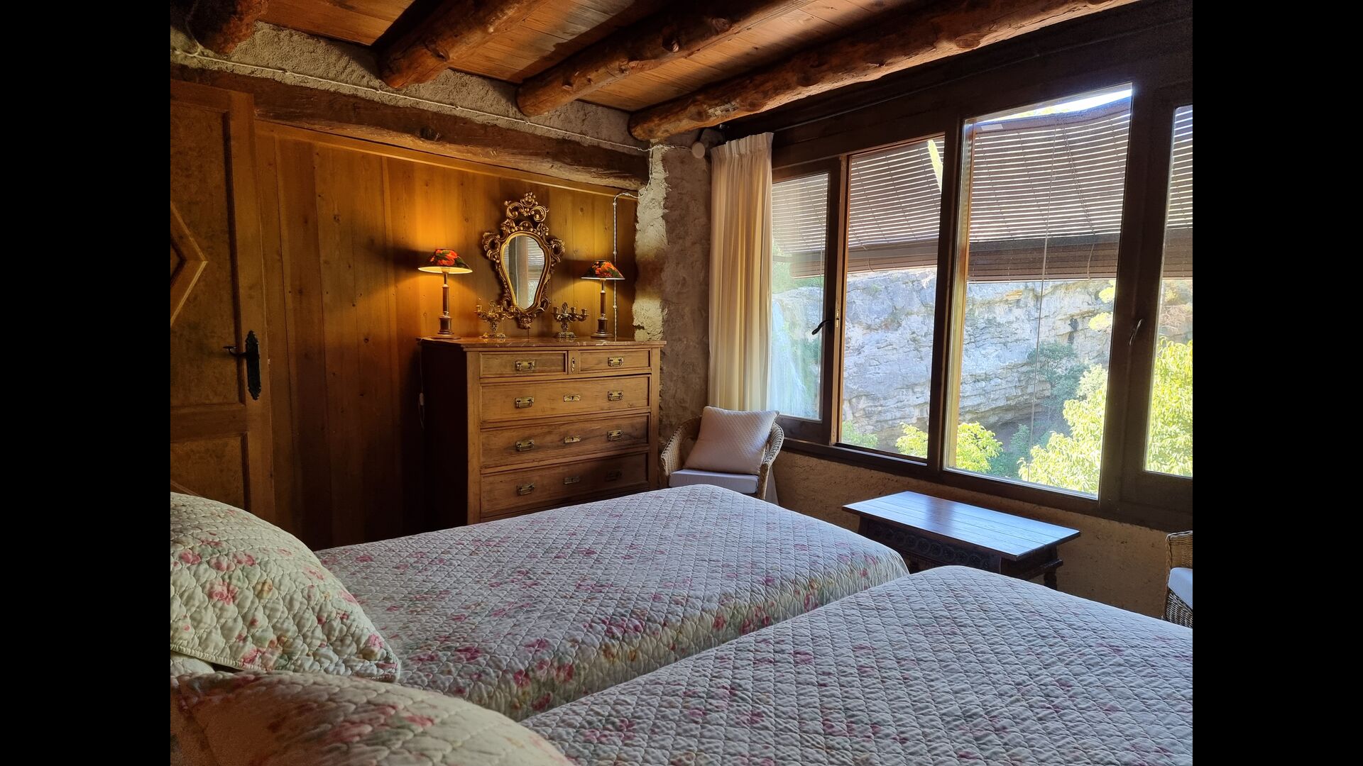 La casa té diversos nivells i la majoria de les habitacions donen a la cascada. Sota la planta principal dedicada a menjador, cuina i cantonera de sofà, hi ha dues habitacions i un bany. Directament des de la cuina, tens accés a l'acollidora & ldquo;terrassa matinal”, amb una vista preciosa a la cascada.