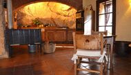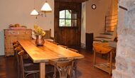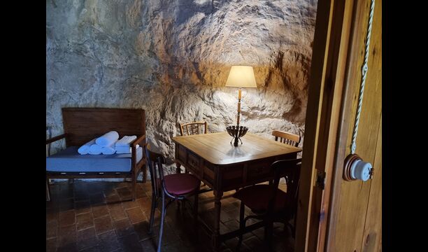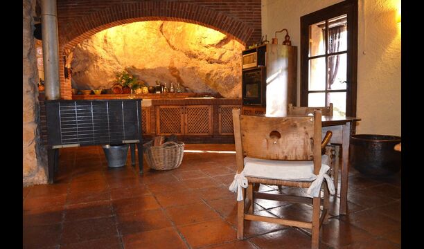 Com que és un molí d'aigua, l'aigua passa per sota de l'edifici, i a la part més baixa, la maquinària encara hi és. Aquí també hi ha un lavabo i una petita cuina, una barbacoa i s'ha instal·lat una taula llarga, com a alternativa a menjar fora o al menjador.