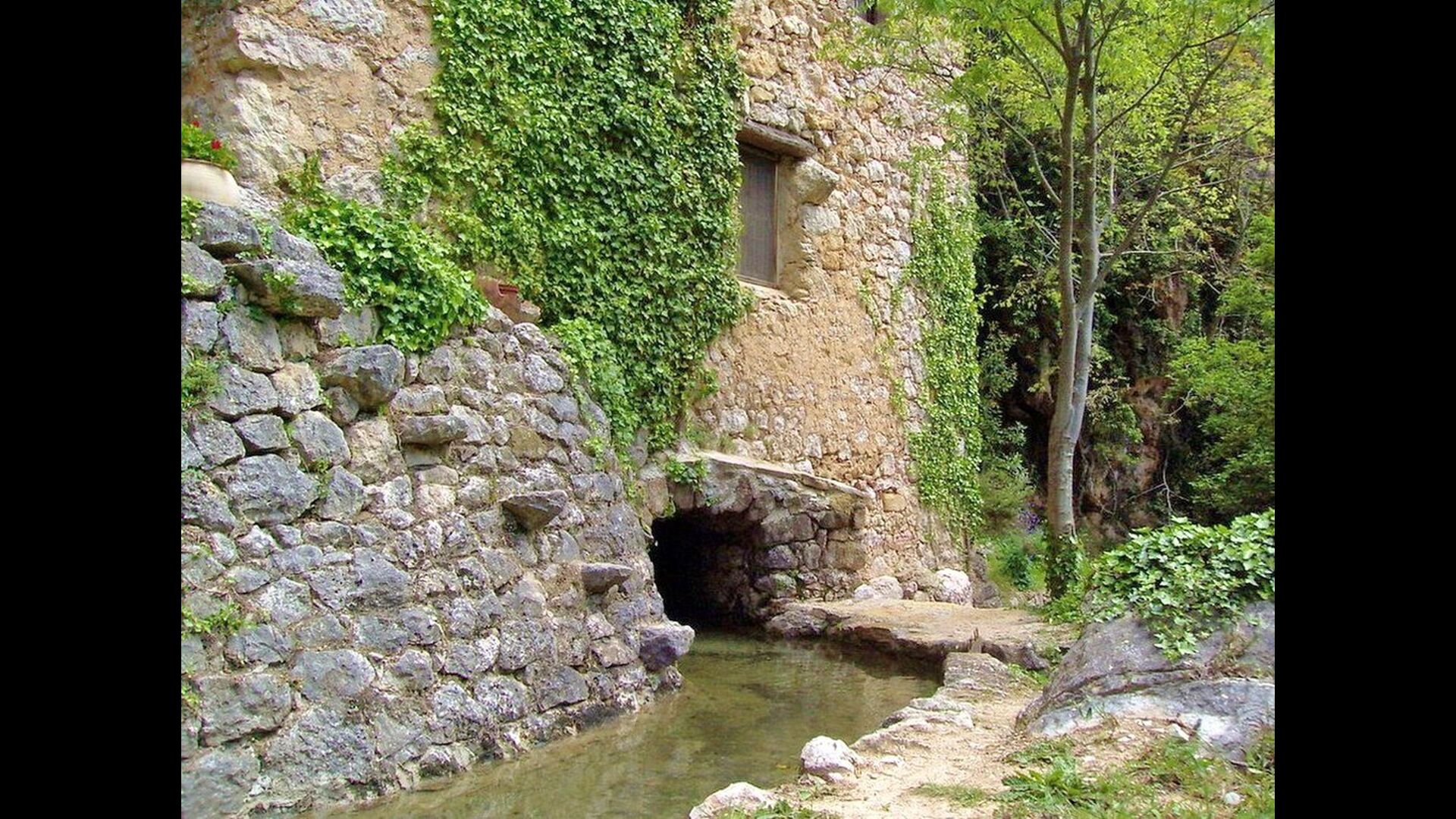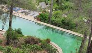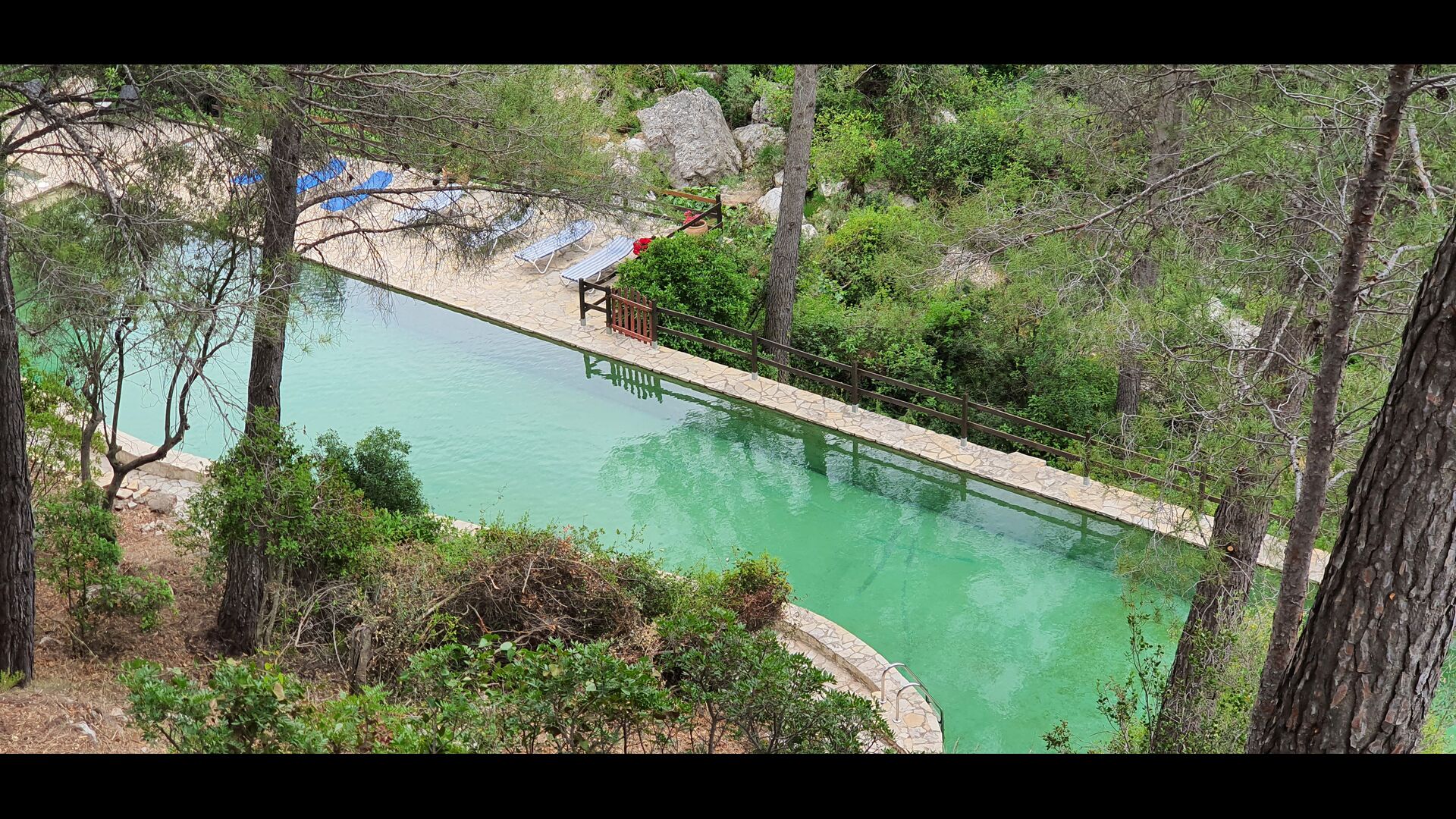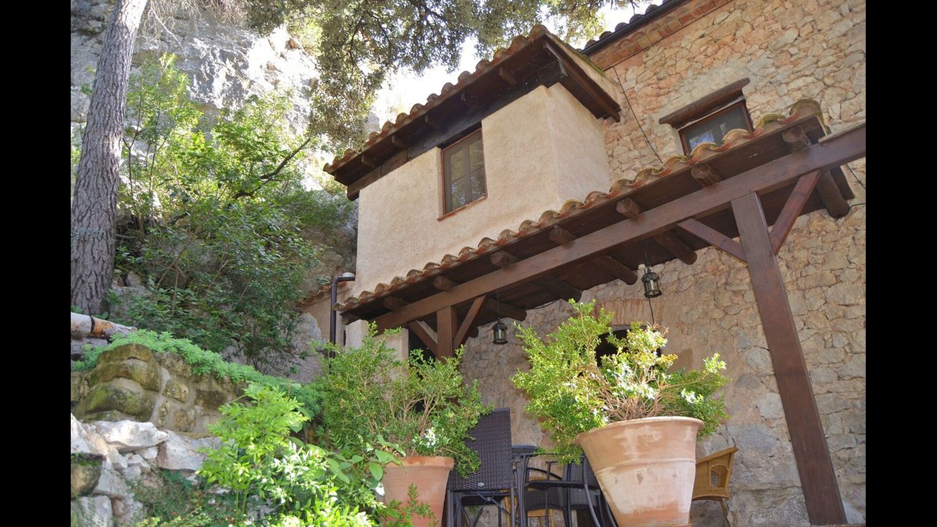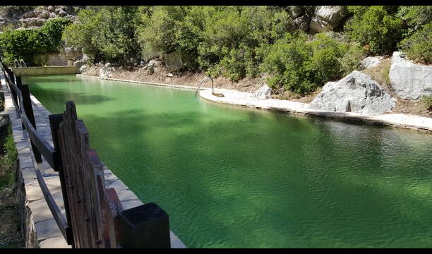 L'ambient exterior és difícil de descriure amb paraules, ja que la ubicació és molt especial. La cascada aporta frescor i les roques que l'envolten donen molts racons ombrívols i una sensació de ser un amb la natura. Els sistemes de canals utilitzats per dirigir l'aigua per crear l'energia per al molí d'aigua, s'han conduït de manera intel·ligent a piscina, on aquesta aigua neta, just de la fonta pocs quilòmetres de la casa, passa per la piscina de 45m de llargada, i després cap al riu de nou a l'altre extrem. També pots nedar sota la cascada i diferents llocs del riu.
