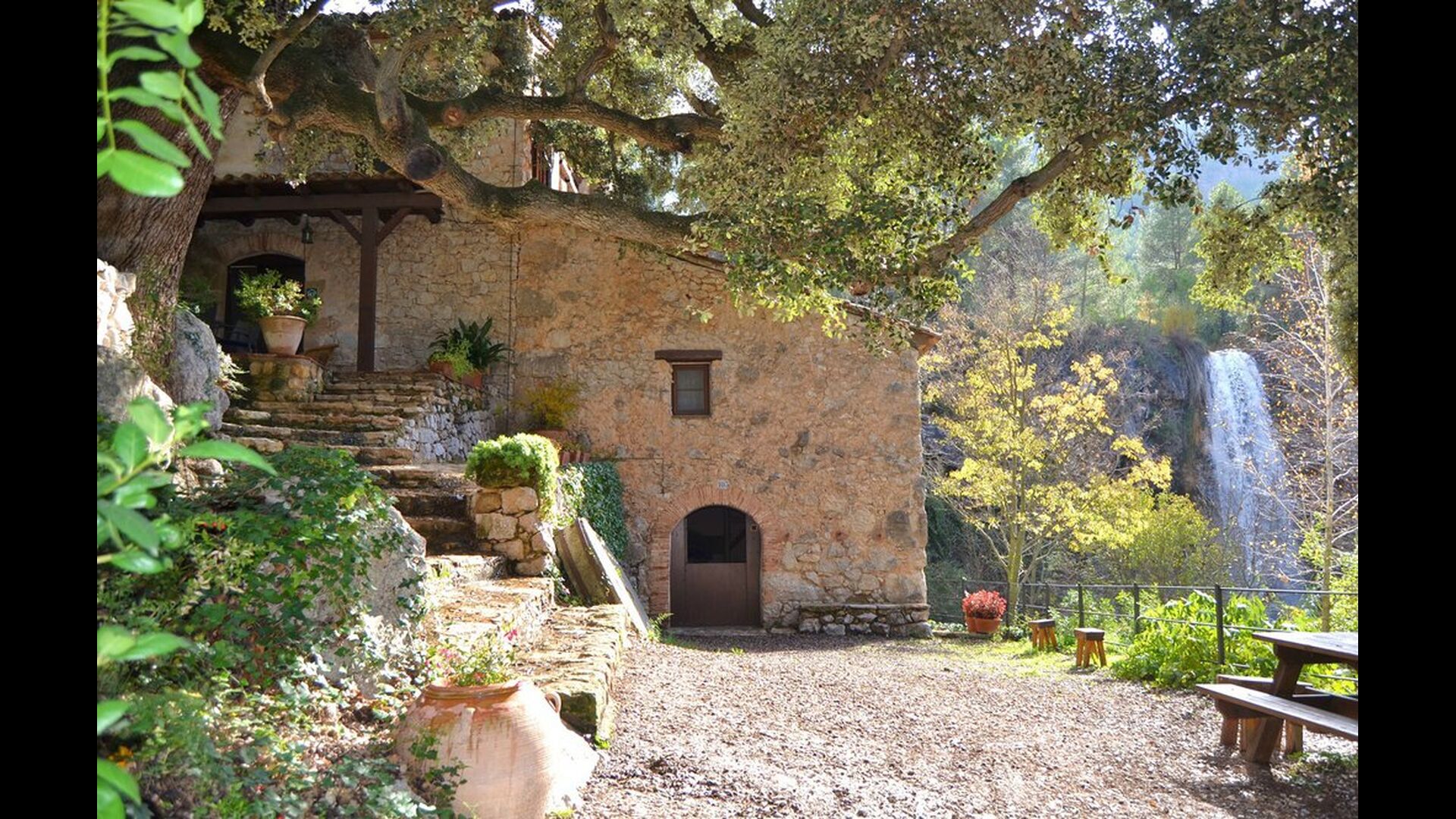 Ubicat remot, accessible a 4,5 km. pista forestal, trobareu aquesta ubicació impressionant, amb la cascada just al costat de la casa, perquè us podeu banyar just a sota, i gaudir de la seva bellesa des de les terrasses o els dormitoris de la casa.</p >