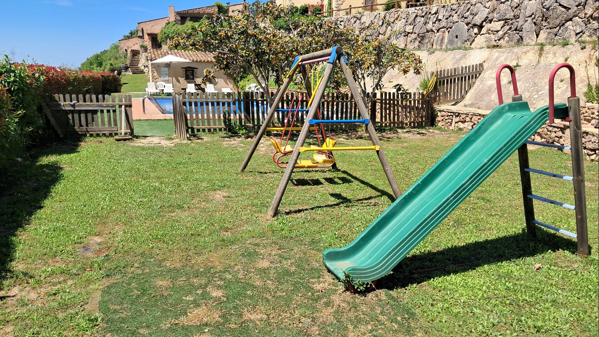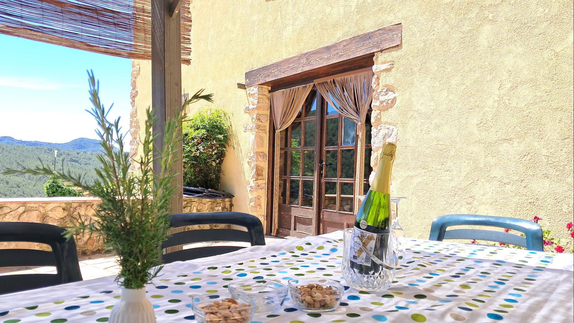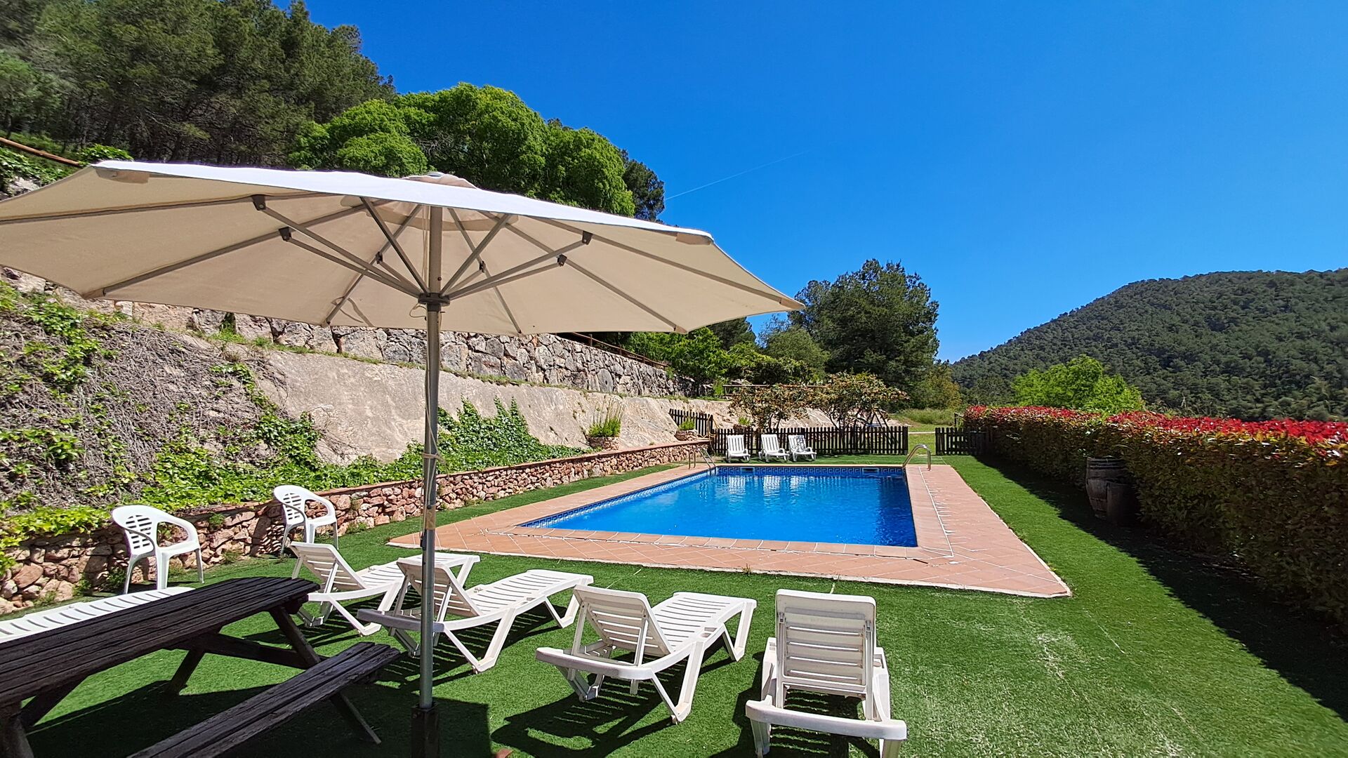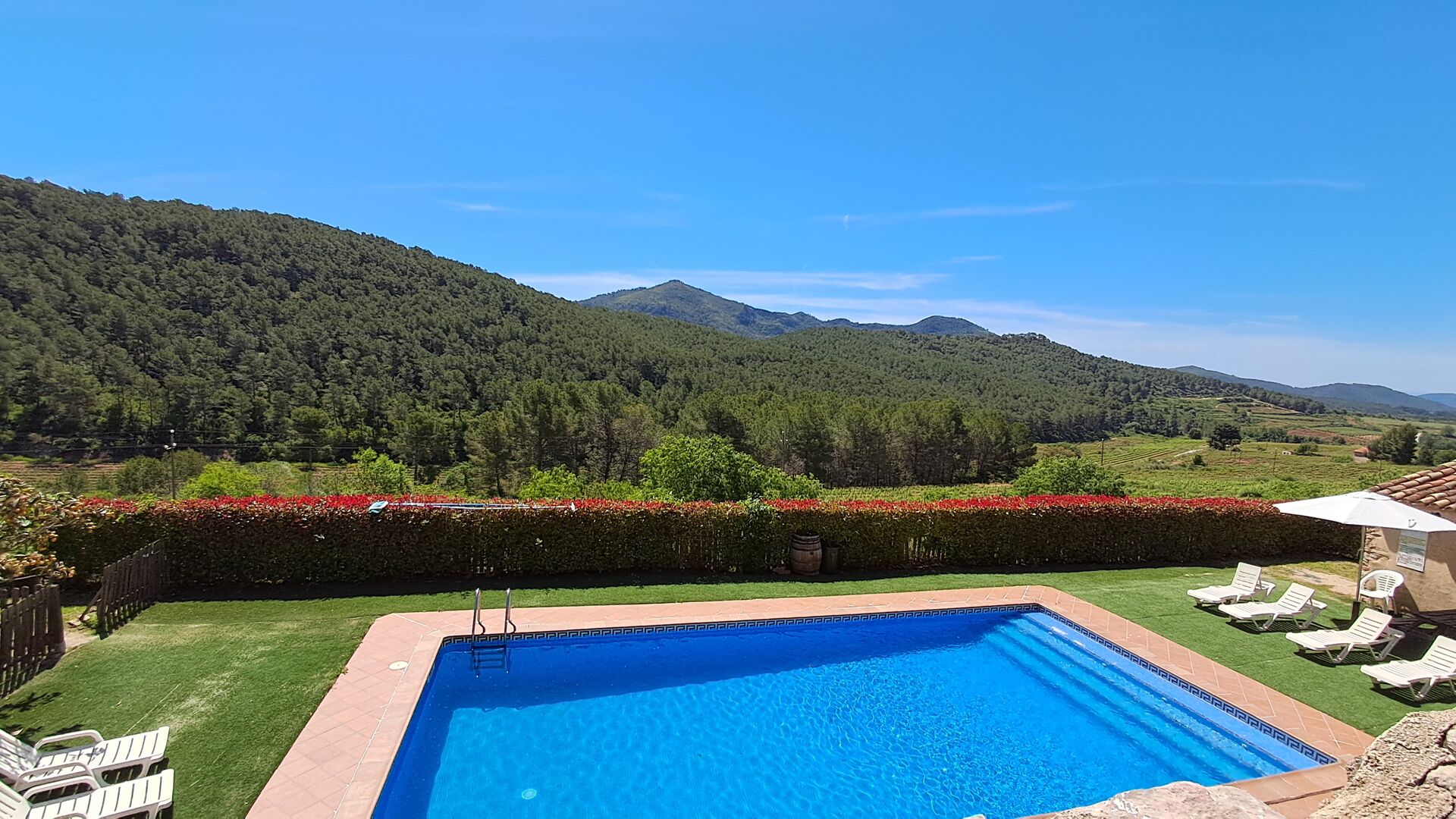The house has been completely renovated and modernized to the smallest detail, respecting the original structure of the typical Catalan farmhouse. It has now a capacity of up to 11+2 persons. The house is perfectly structured, with the lower floor being a very spacious common room with an excellent modern kitchen, a dining area with dining table and a sofa area with TV, DVD and fireplace. On this floor there is one bedroom with a single bed and a bunk bed and one bathroom. There is also direct access to the terrace with barbecue in the garden, which is very convenient, when you want to dine outside in the warm Catalan summers.