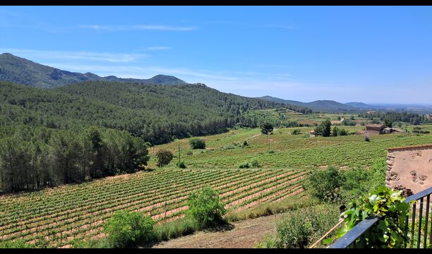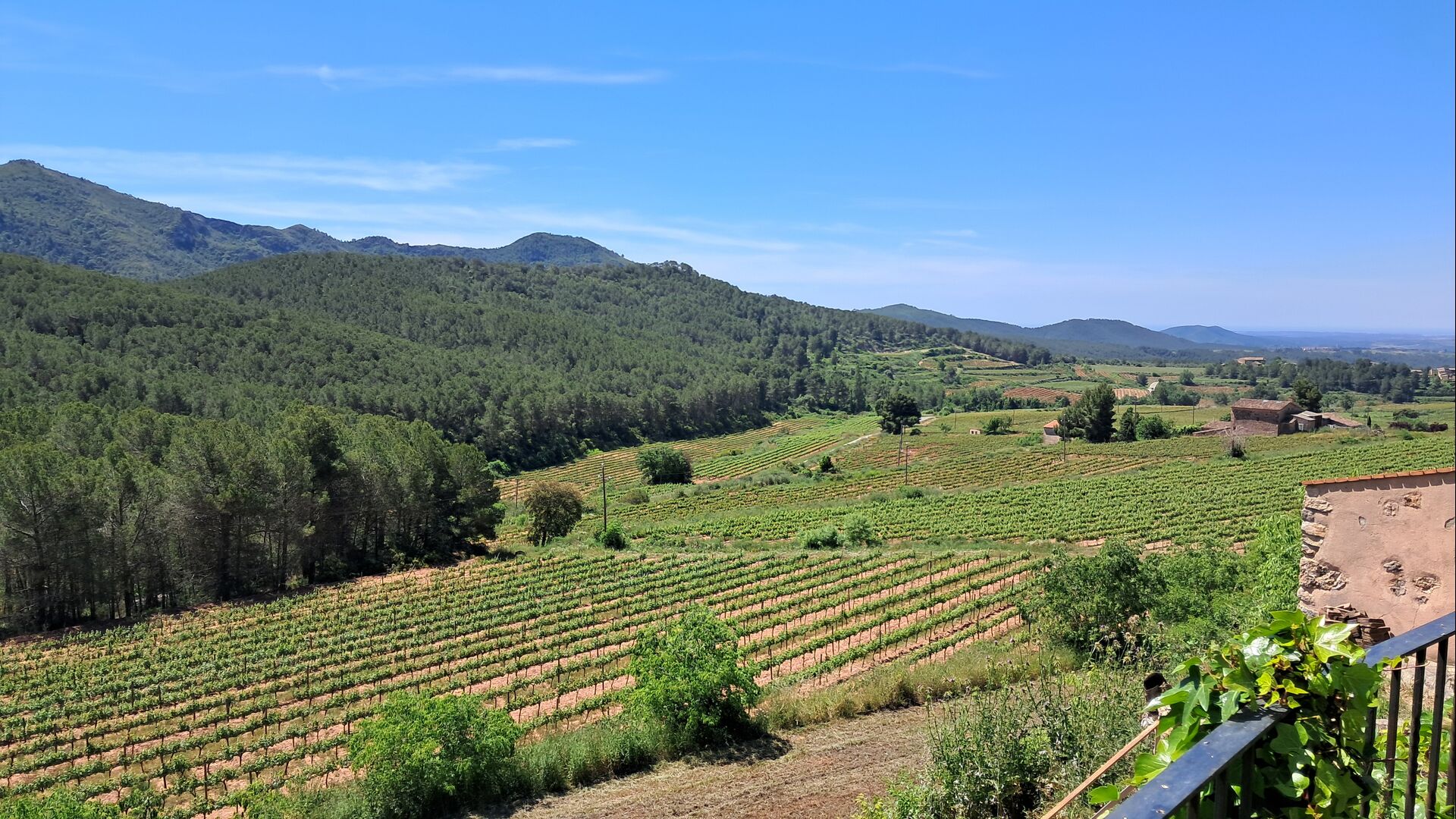 After some kilometres on the quiet road through the Tuscany-style landscape with vineyards as far as the eye can see, Can Puignol emerges on a small hill top down a side road.