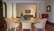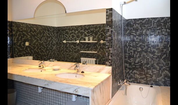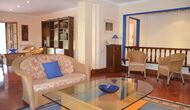 The first floor is in total about 300m2. In one end, there are two very large bedrooms, one of them with private terrace and a bathroom ensuite, and the other bedroom has a view to the garden and it also has bathroom ensuite. In the other end, you find two more bedrooms also with bathrooms ensuite. The setup is with four double beds, but 3 of the rooms can be changed into twin rooms if this is preferred. All rooms have fans. Two of the bathrooms have bath tubs and the other two showers.