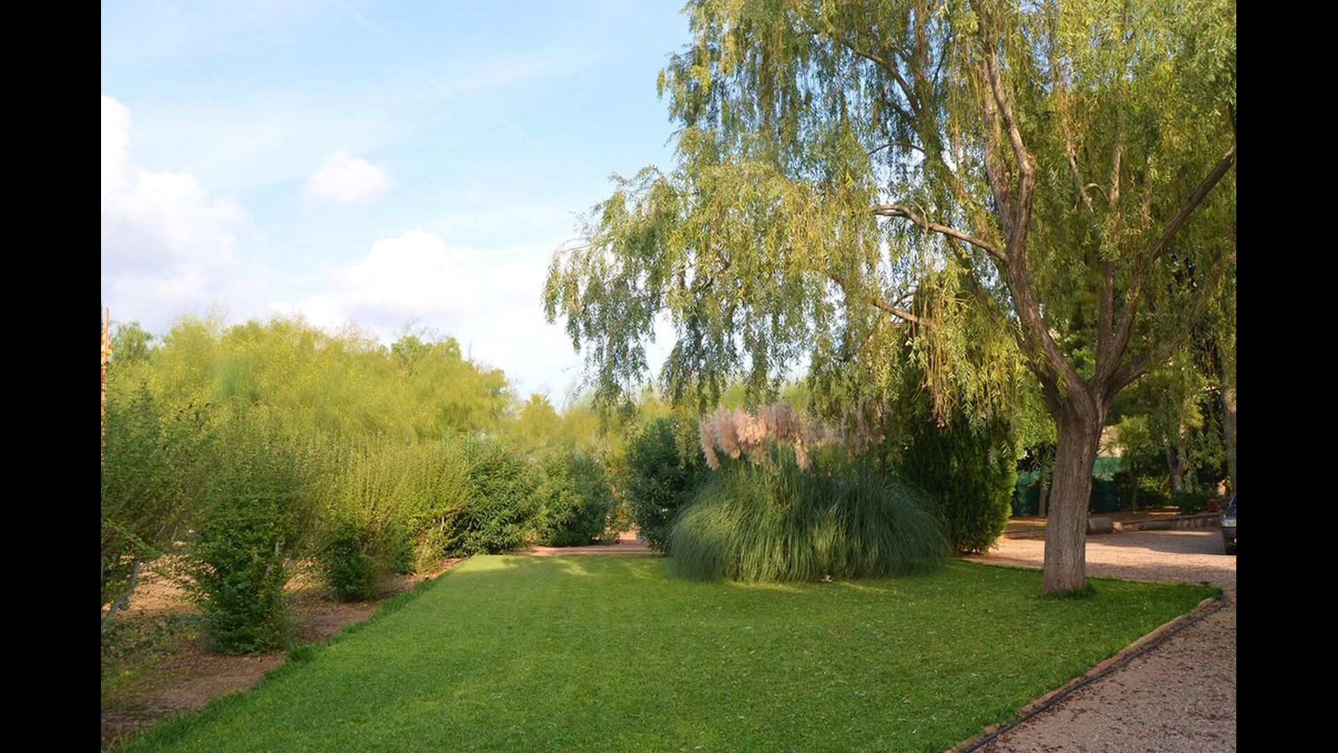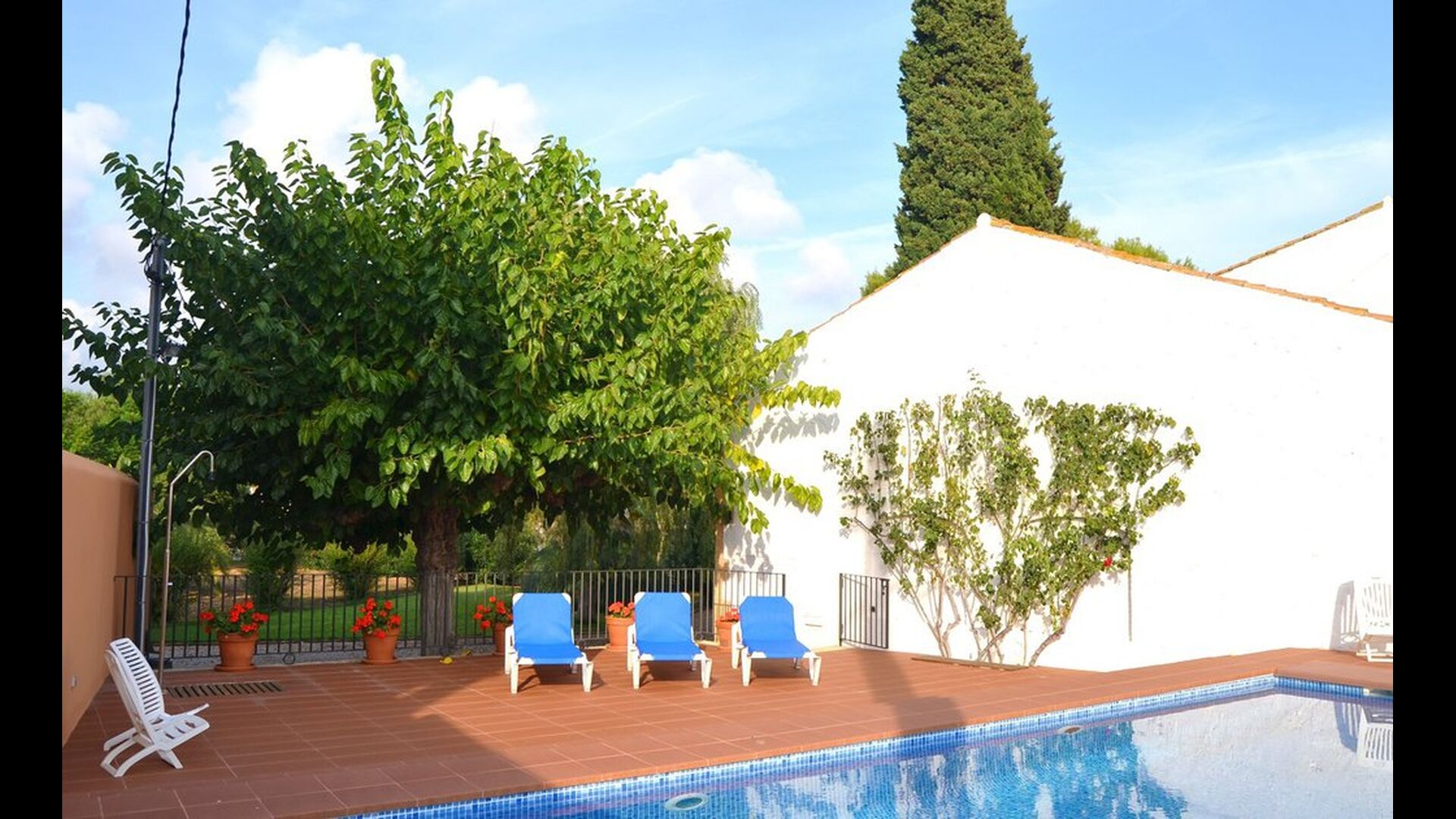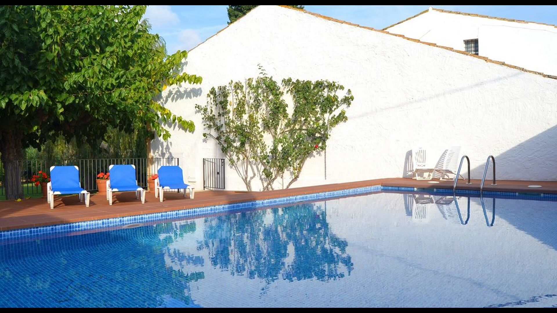 When arriving to Masia de Altafulla, you will know by seeing the house, that this is quite a special place. The old historical house is facing the street, with more modern houses surrounding it. When you pass through the gate, protected by a stone wall, a fantastic garden of about 5.000 m2 unfolds, like a small piece of country-side inside the village! In the huge garden you will find a lovely pool area with the 9 x 4 meter swimming pool and it is situated perfectly with a lot of privacy, and still with a lot of sun.