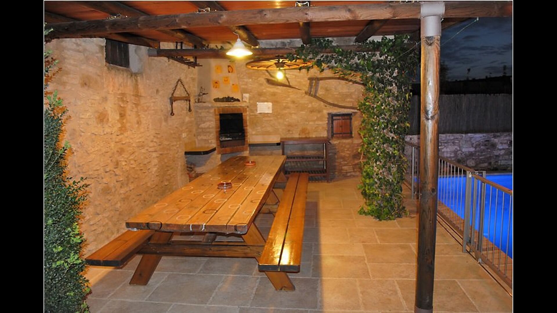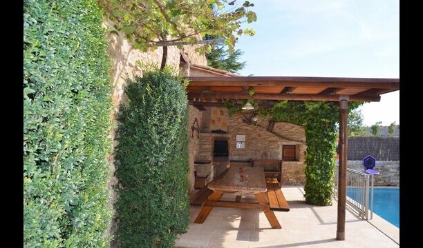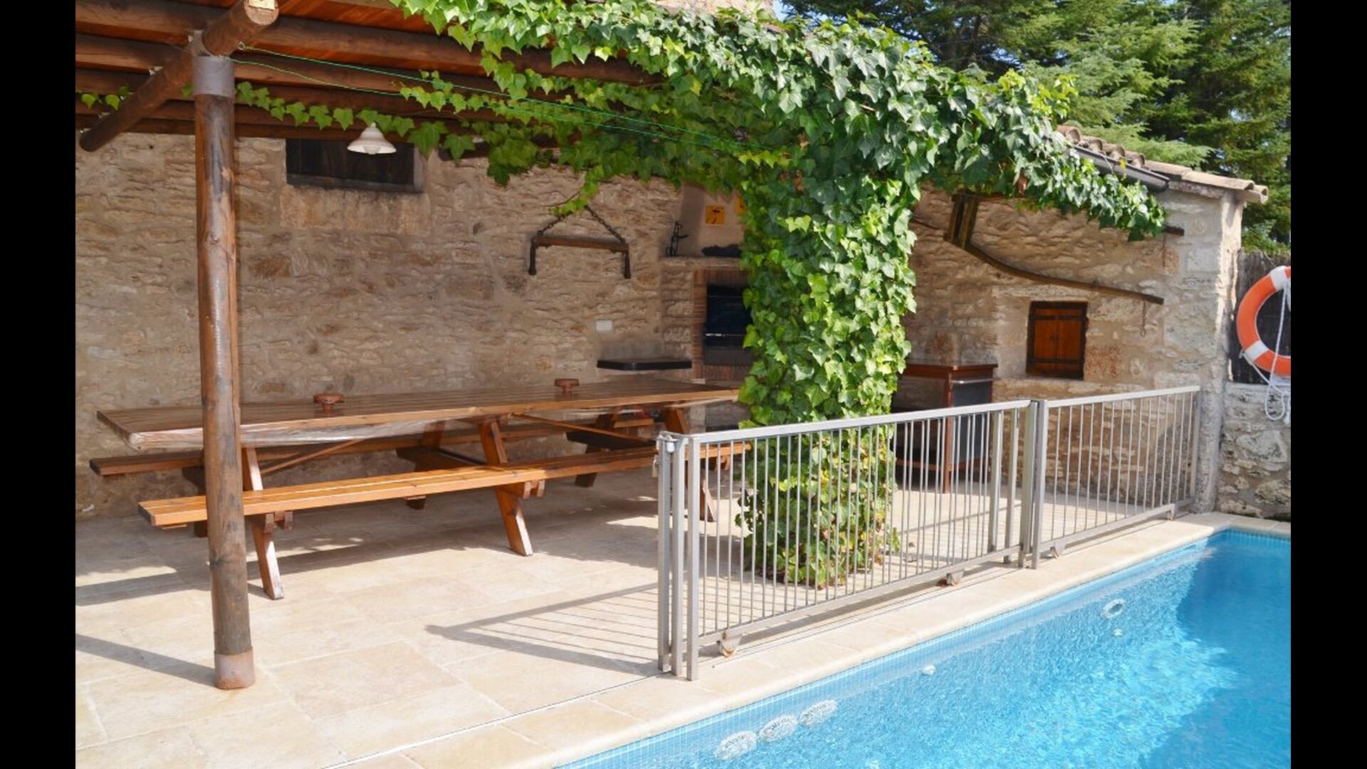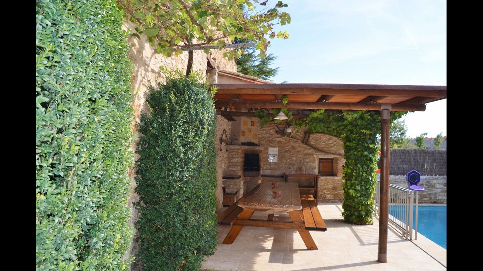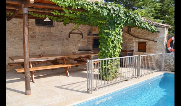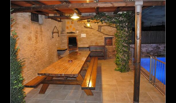 La piscina tiene un tamaño de 6 mx 3 m y, por lo tanto, es ideal para relajarse. Los pasos hacia la piscina permiten que incluso los más pequeños del grupo de vacaciones se diviertan en el agua. Justo al lado de la piscina, hay una terraza cubierta con una larga mesa de comedor, un excelente lugar para disfrutar de la cena si elige cocinar solo. En realidad, puede preparar la comida en la misma terraza junto a la parrilla de barbacoa y la cocina sencilla. También es un gran lugar para buscar sombra durante la mitad del día, cuando el sol está en su punto más alto.
