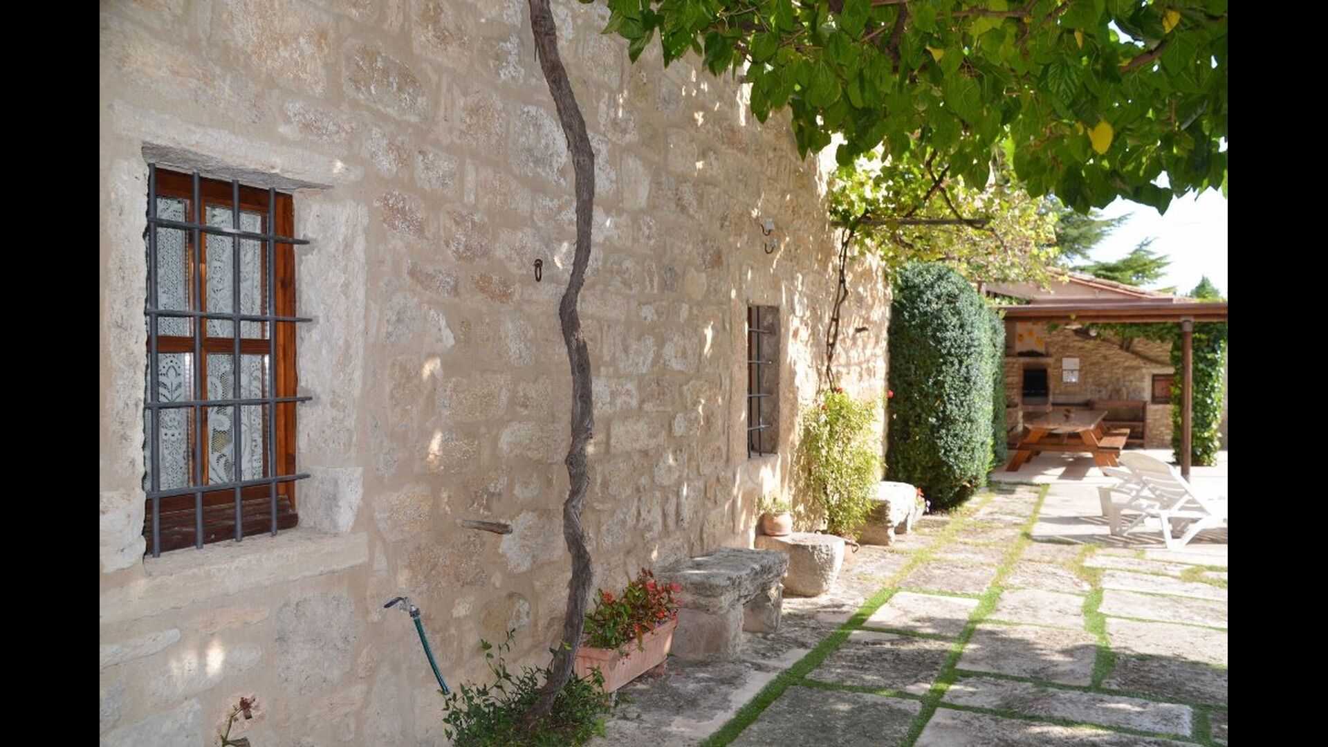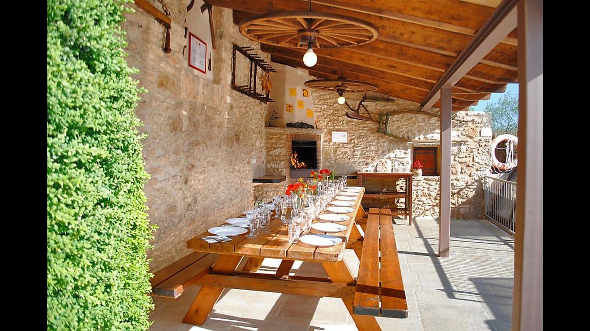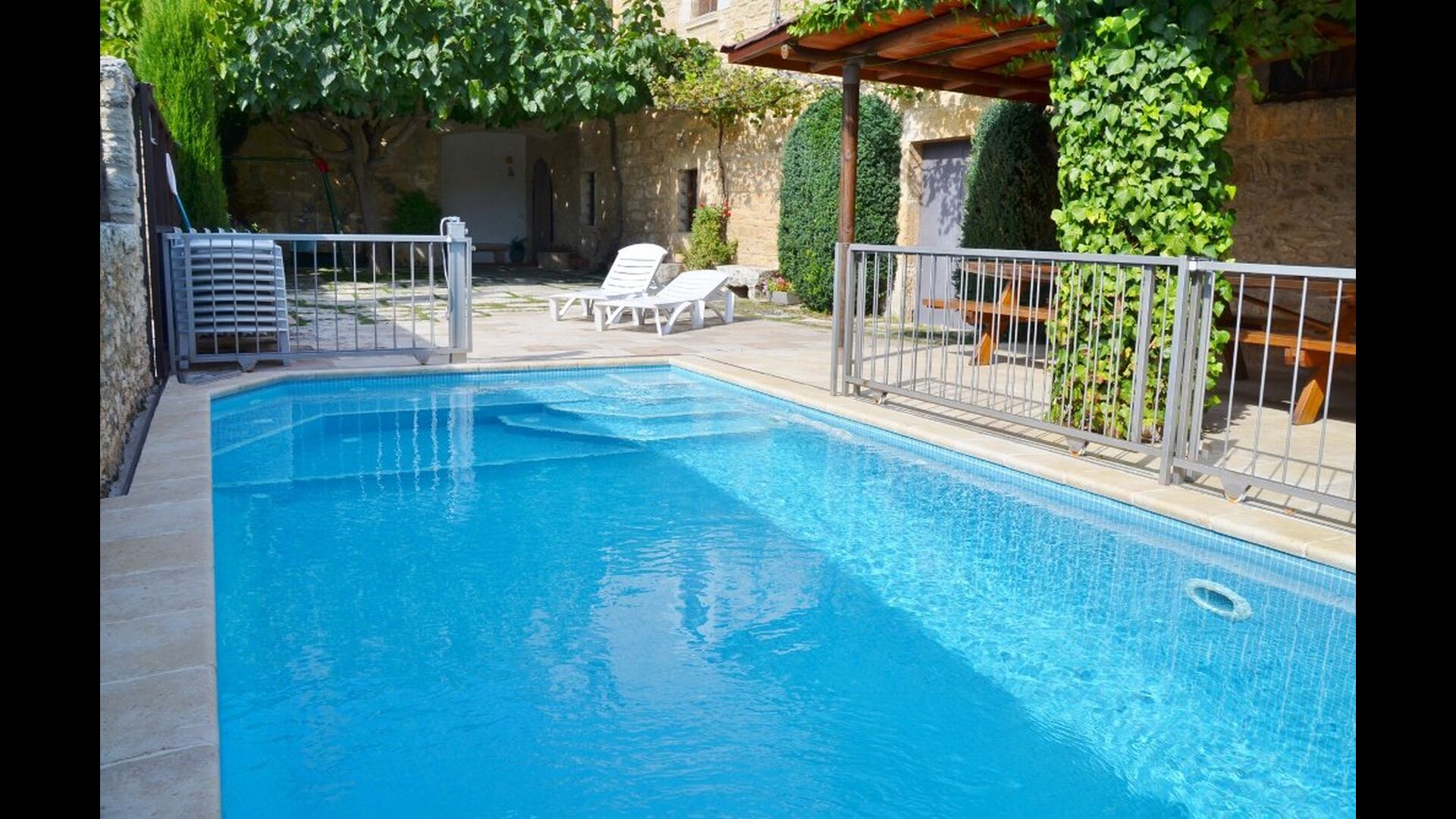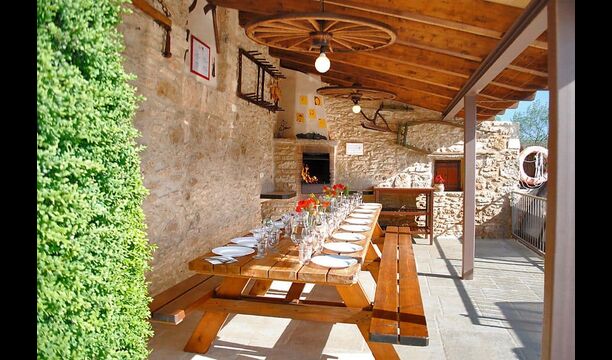 La piscina tiene un tamaño de 6 mx 3 m y, por lo tanto, es ideal para relajarse. Los pasos hacia la piscina permiten que incluso los más pequeños del grupo de vacaciones se diviertan en el agua. Justo al lado de la piscina, hay una terraza cubierta con una larga mesa de comedor, un excelente lugar para disfrutar de la cena si elige cocinar solo. En realidad, puede preparar la comida en la misma terraza junto a la parrilla de barbacoa y la cocina sencilla. También es un gran lugar para buscar sombra durante la mitad del día, cuando el sol está en su punto más alto.