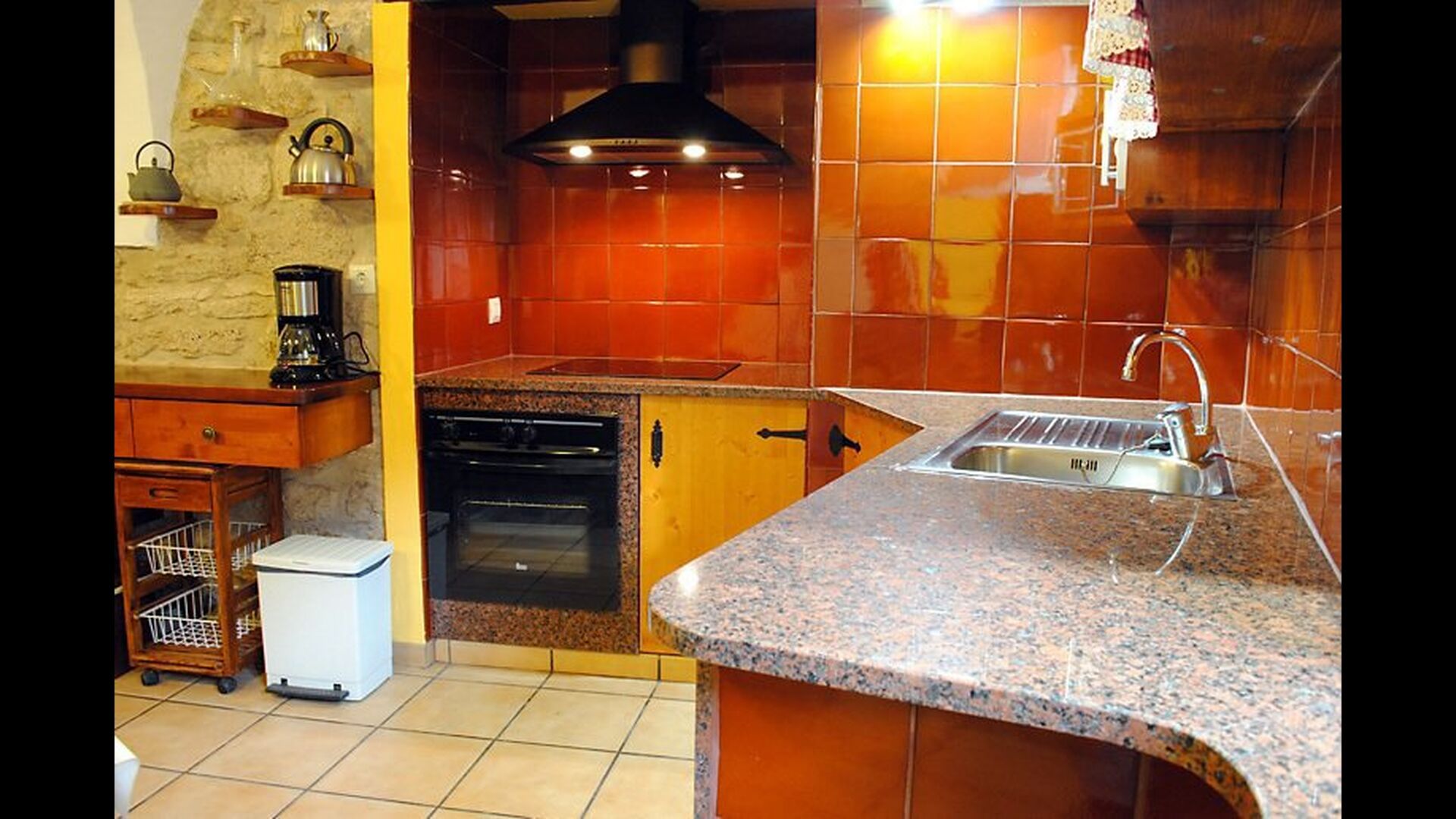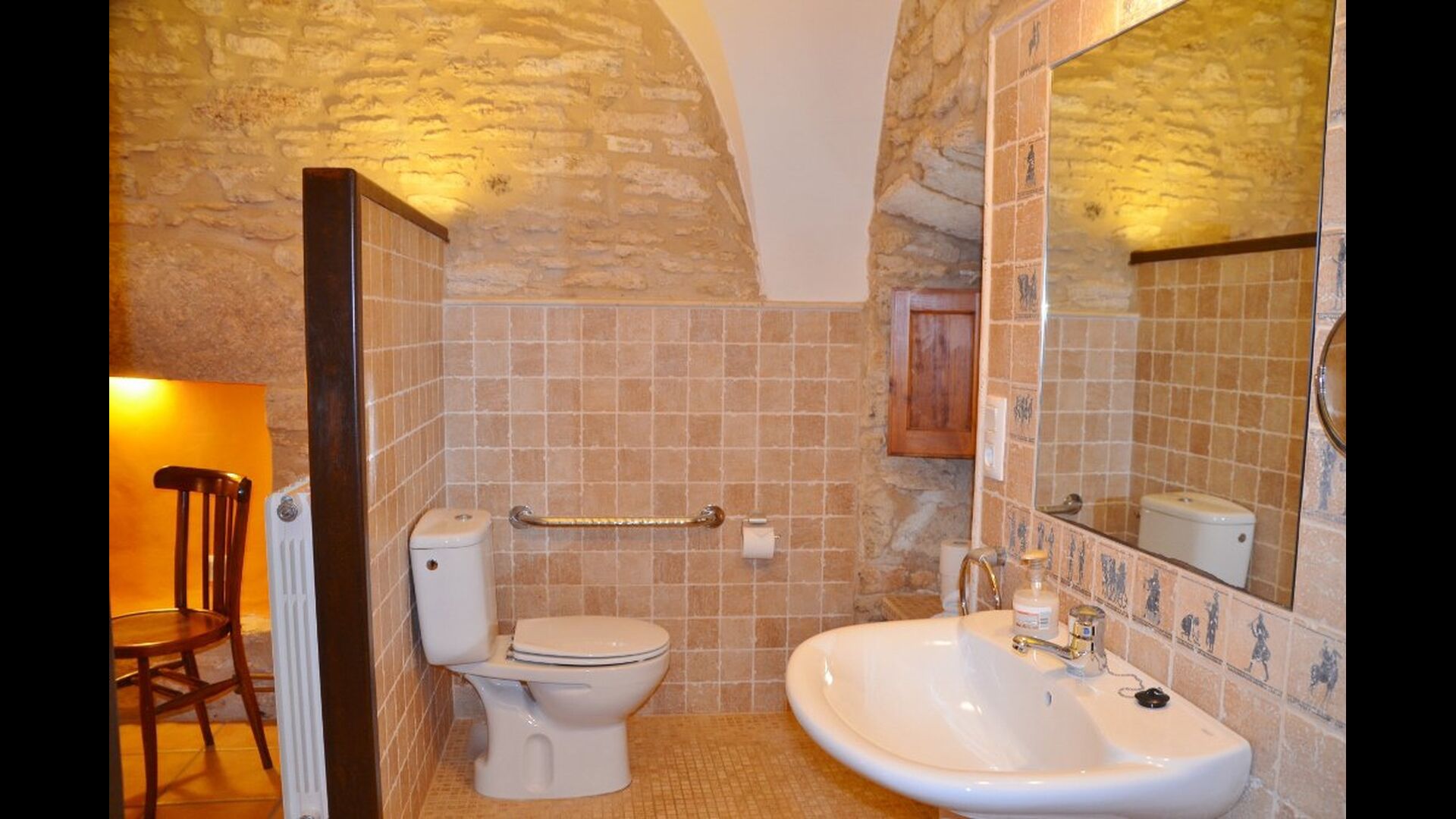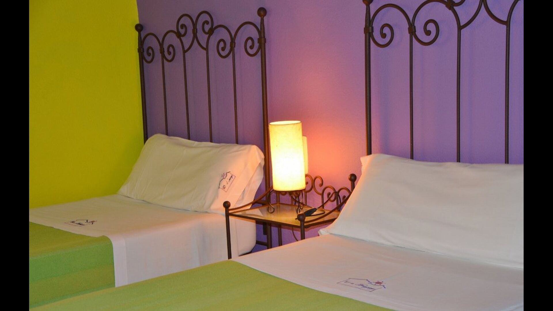 Hay una habitación grande y espaciosa en la entrada en el piso inferior, una habitación de nivel ajustado con baño en suite (accesible para sillas de ruedas). En el segundo piso, encontrará las otras siete habitaciones dobles. Las habitaciones están decoradas con colores vivos y varias de ellas tienen vigas en el techo. Hay 6 baños.