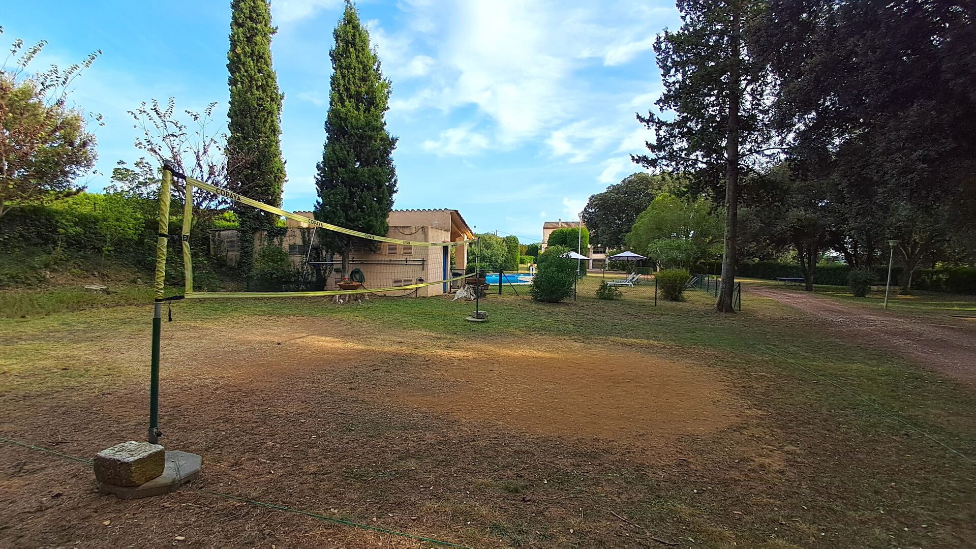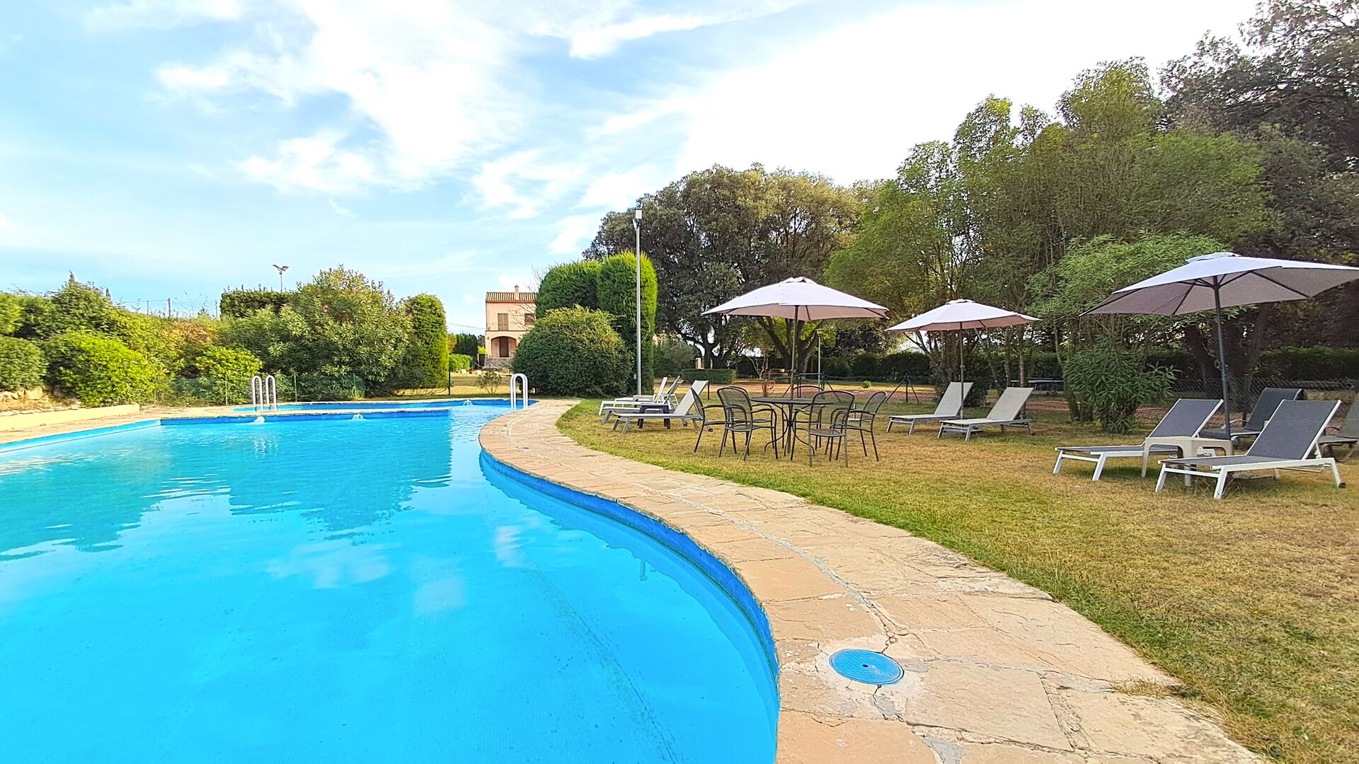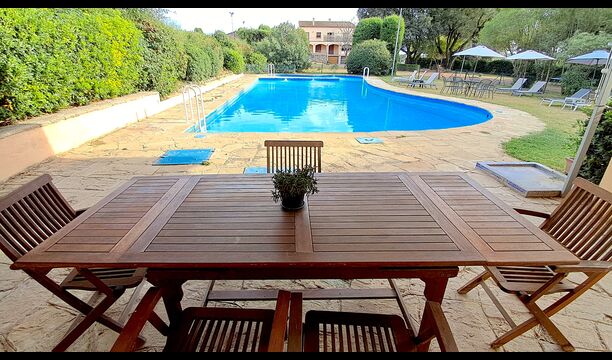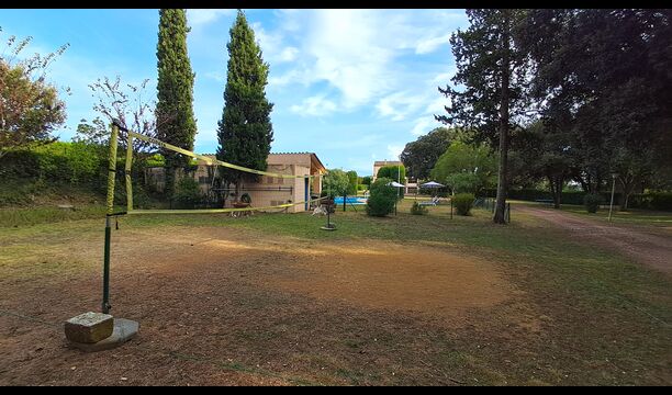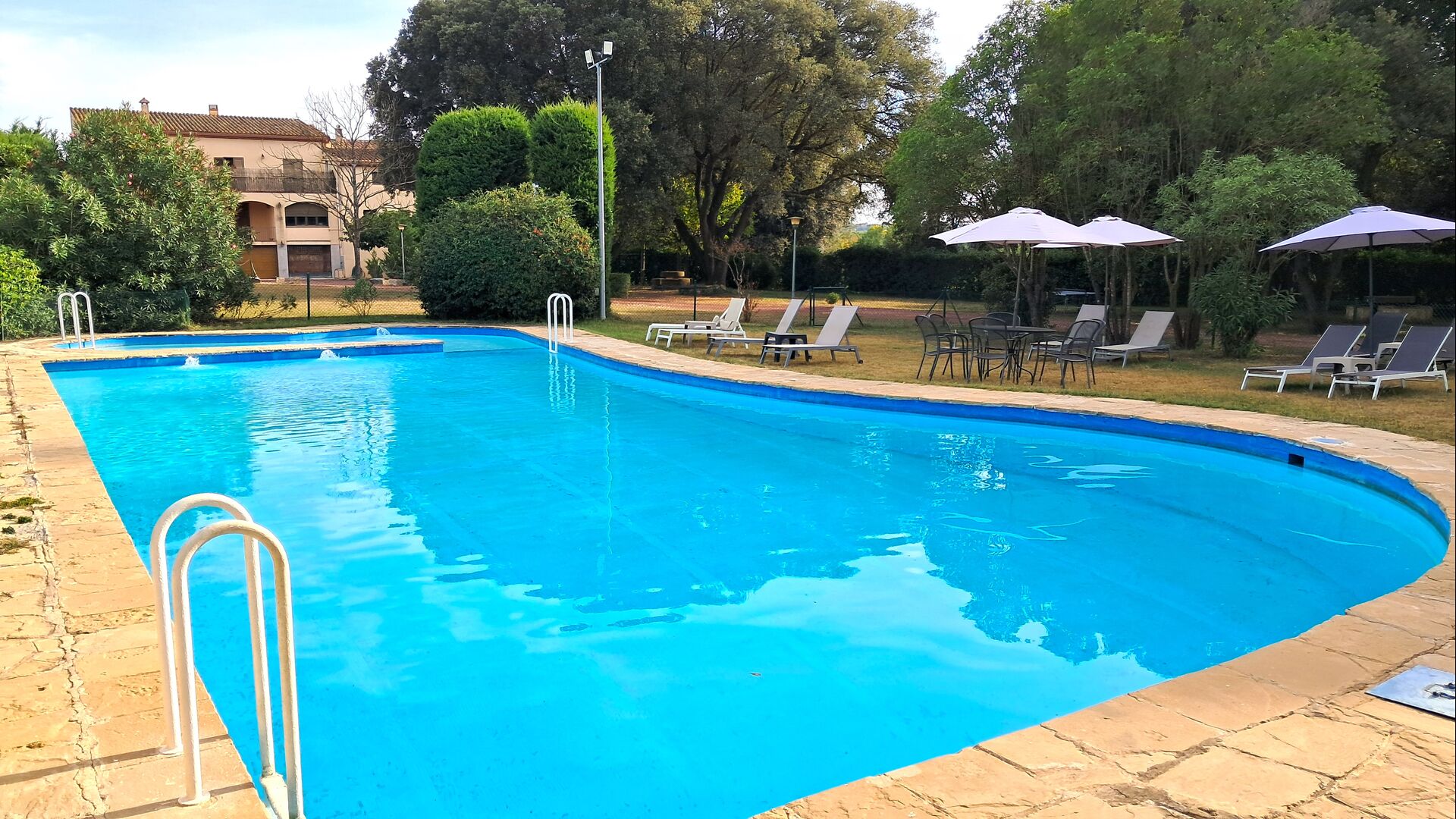 L'jardí enorme ocupa una superfície de 8000 m2 i té moltes instal·lacions exteriors diferents. Una d'aquestes instal·lacions és la gran piscina on refrescar-se durant els molts dies de calor. Hi ha diverses gandules i taules i cadires on es pot passar temps relaxant-se i prenent alguns raigs de sol, alhora que es pot vigilar fàcilment els nens que juguen a la piscina. La zona de la piscina també té dos banys i una nevera situada a la casa de la piscina. Així podreu prendre una beguda fresca fàcilment, sense haver de caminar lluny. També hi ha moltes altres activitats que es poden gaudir durant tot el dia a les instal·lacions de l'ampli jardí com ara la pista de tennis privada, la zona de jocs per als nens amb gronxadors a l'ombra, ping-pong, petanca i fins i tot un petit futbolí privat. corta que té dos objectius. El jardí també té moltes zones d'ombra amb seients i, per descomptat, una granzona de barbacoa, tot un imprescindible per allotjar-se a la bonica i càlida Catalunya.