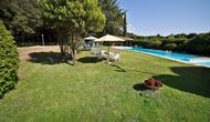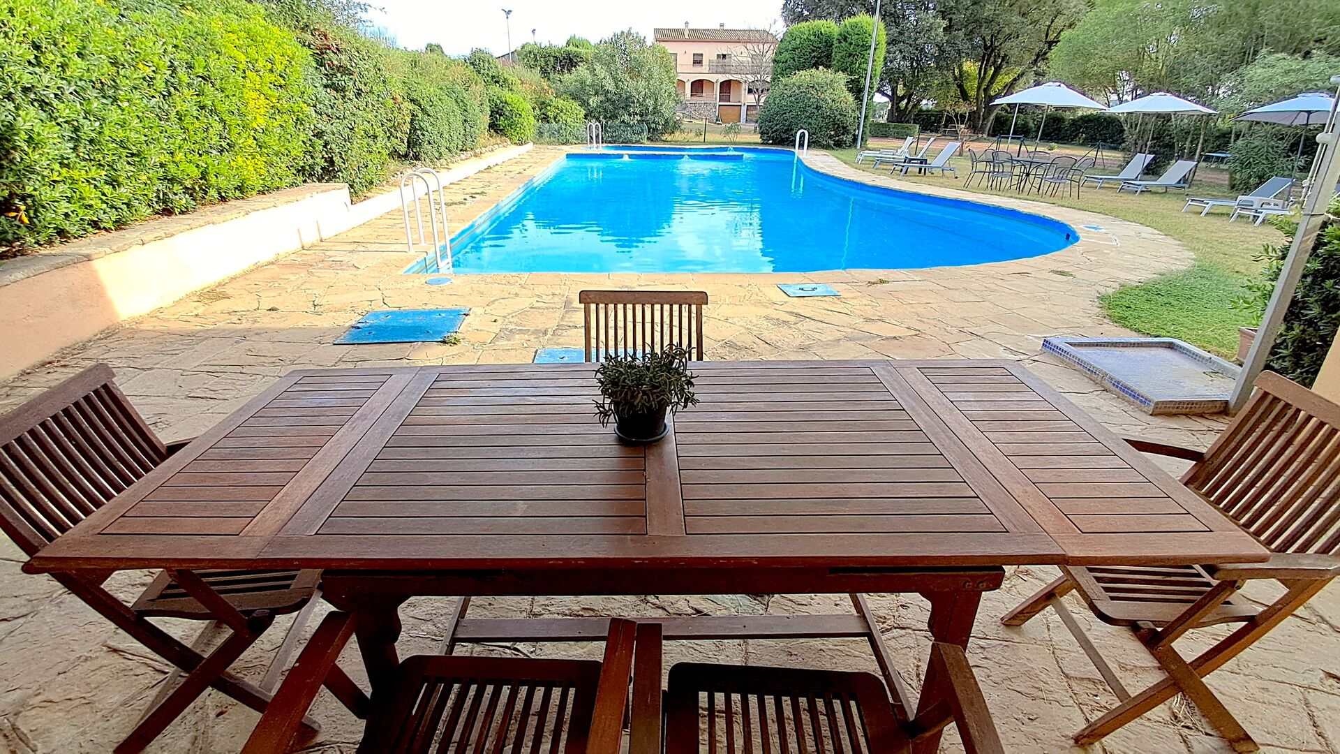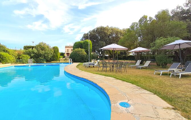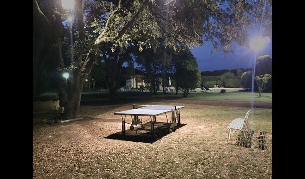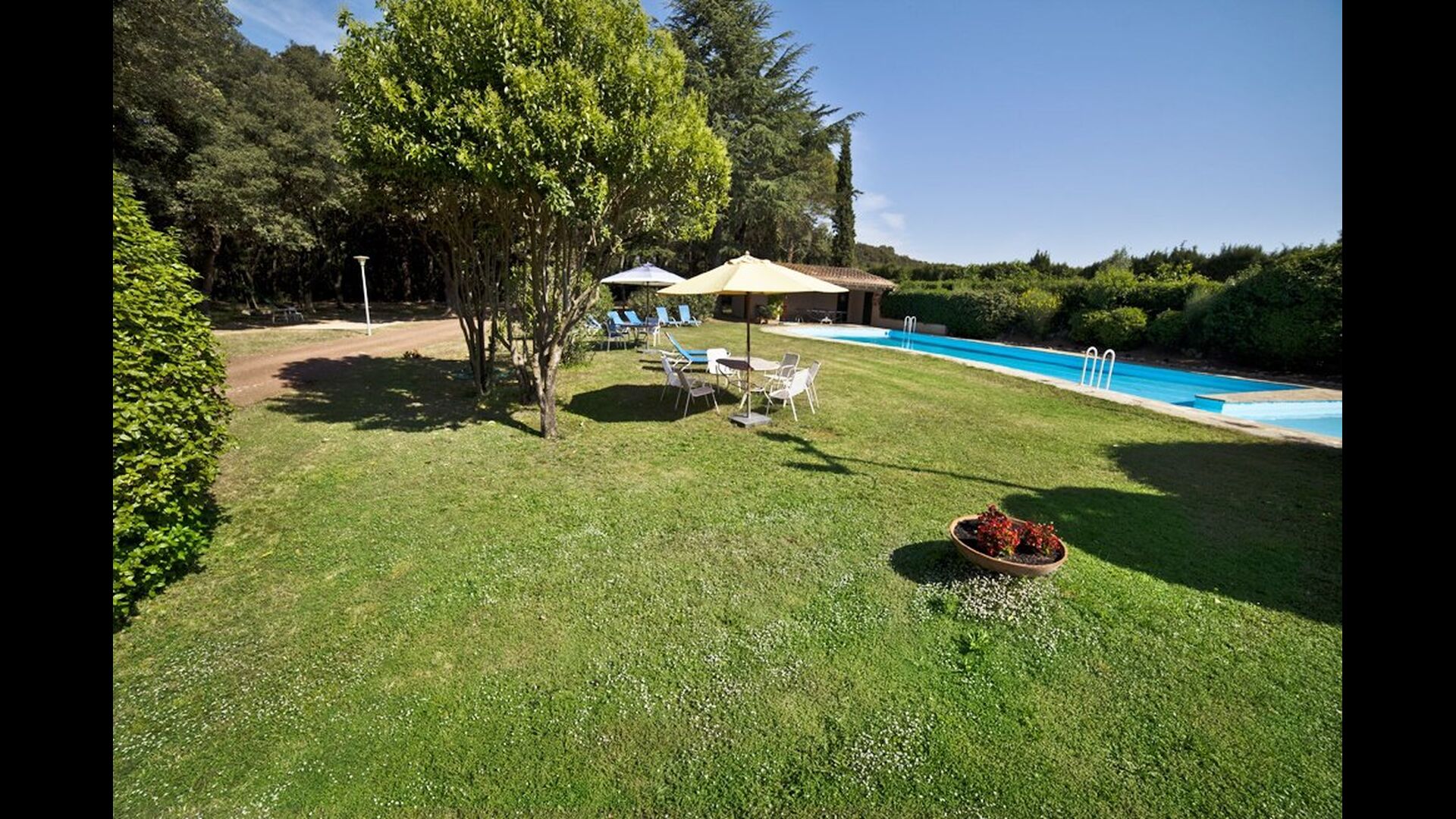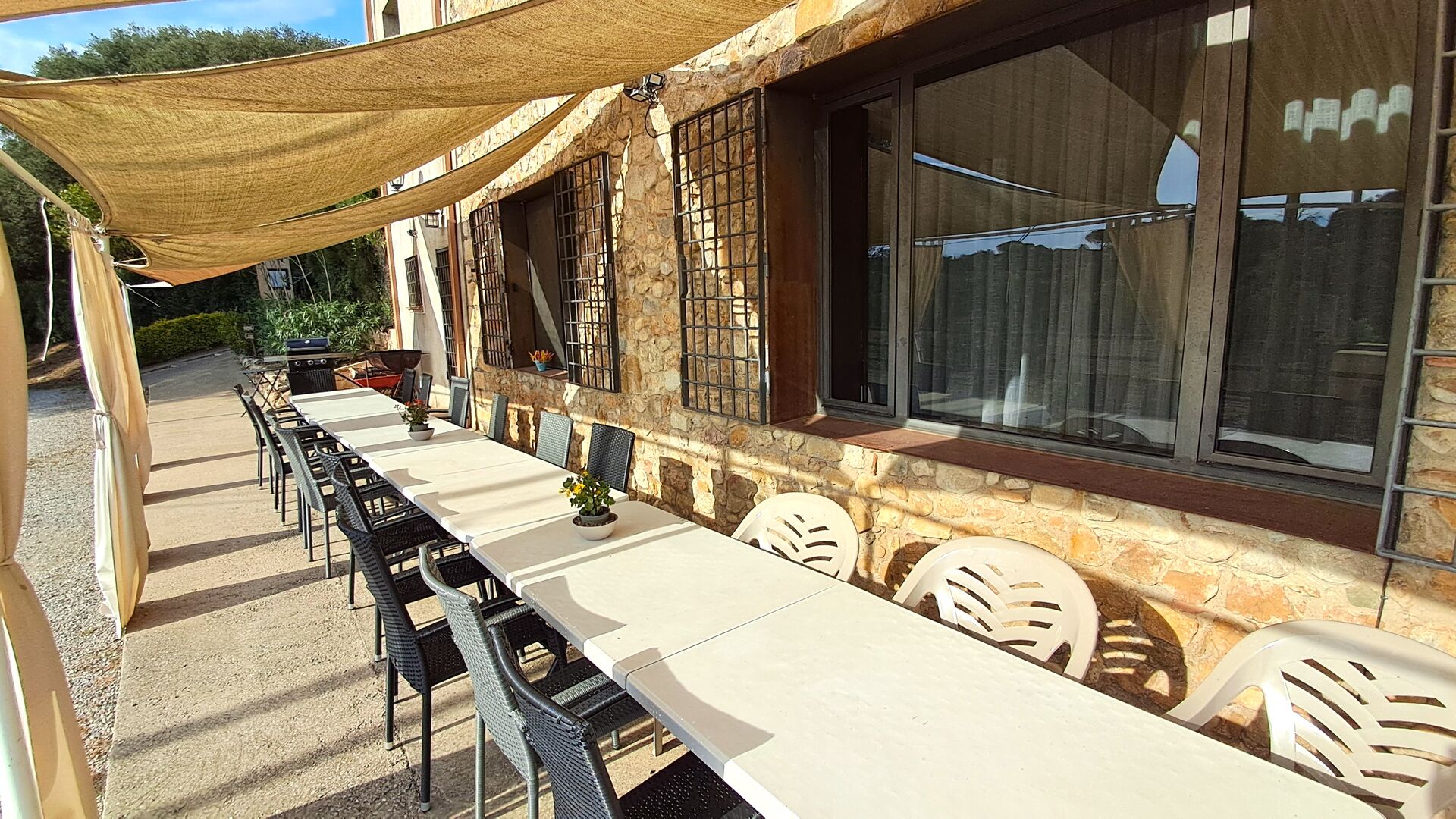 L'jardí enorme ocupa una superfície de 8000 m2 i té moltes instal·lacions exteriors diferents. Una d'aquestes instal·lacions és la gran piscina on refrescar-se durant els molts dies de calor. Hi ha diverses gandules i taules i cadires on es pot passar temps relaxant-se i prenent alguns raigs de sol, alhora que es pot vigilar fàcilment els nens que juguen a la piscina. La zona de la piscina també té dos banys i una nevera situada a la casa de la piscina. Així podreu prendre una beguda fresca fàcilment, sense haver de caminar lluny. També hi ha moltes altres activitats que es poden gaudir durant tot el dia a les instal·lacions de l'ampli jardí com ara la pista de tennis privada, la zona de jocs per als nens amb gronxadors a l'ombra, ping-pong, petanca i fins i tot un petit futbolí privat. corta que té dos objectius. El jardí també té moltes zones d'ombra amb seients i, per descomptat, una granzona de barbacoa, tot un imprescindible per allotjar-se a la bonica i càlida Catalunya.